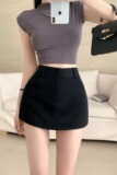 Черная летняя универсальная юбка, защитное белье, мини-юбка, высокая талия, по фигуре, с акцентом на бедрах, в обтяжку, А-силуэт