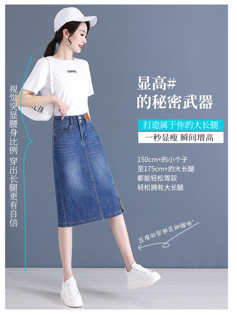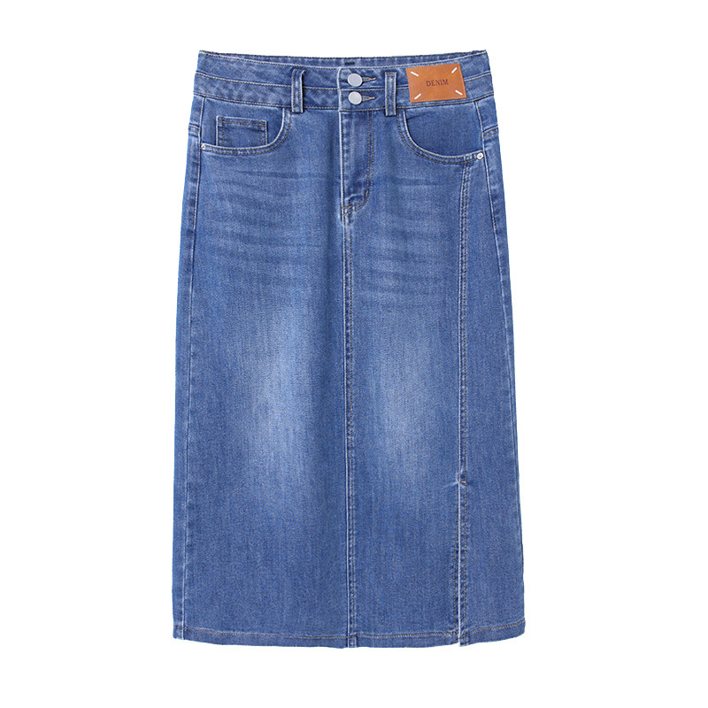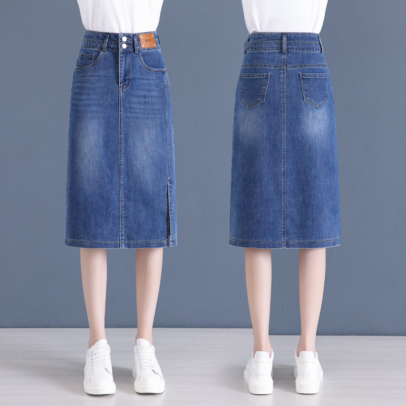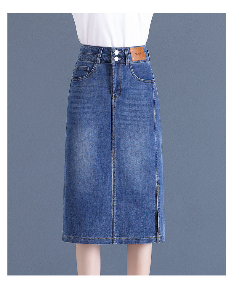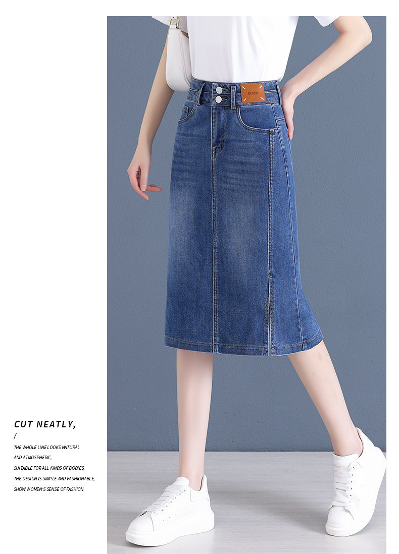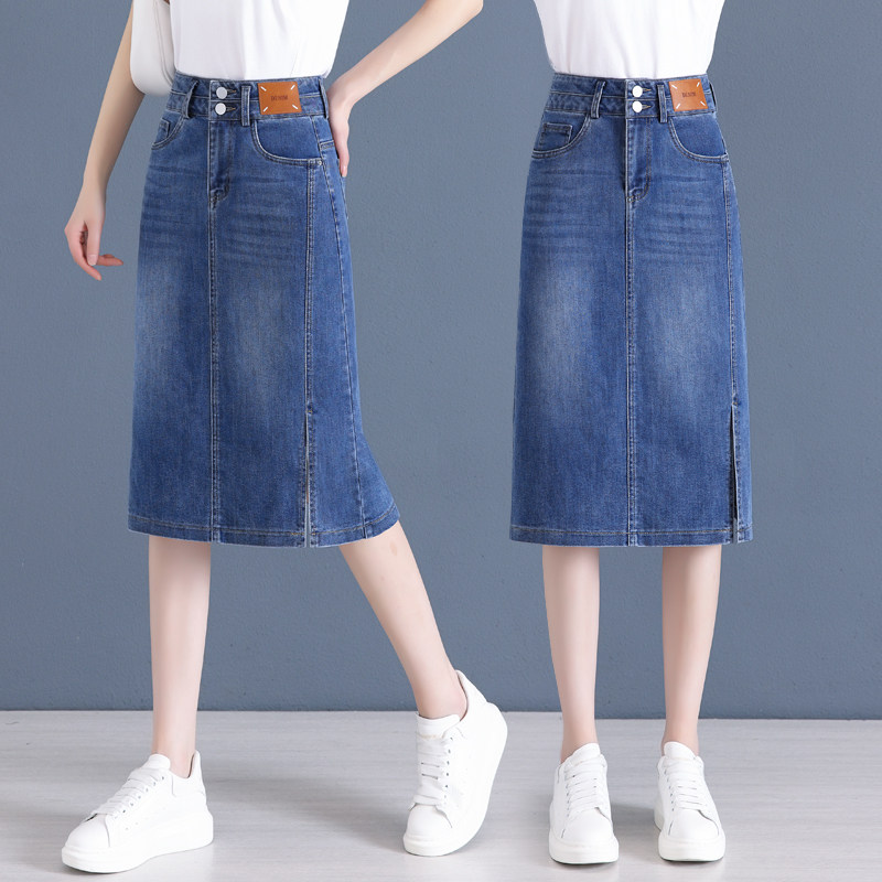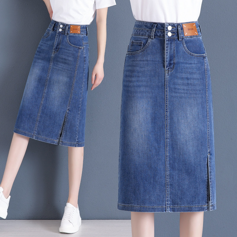 Летняя приталенная длинная тонкая джинсовая юбка, высокая талия, средней длины, с акцентом на бедрах