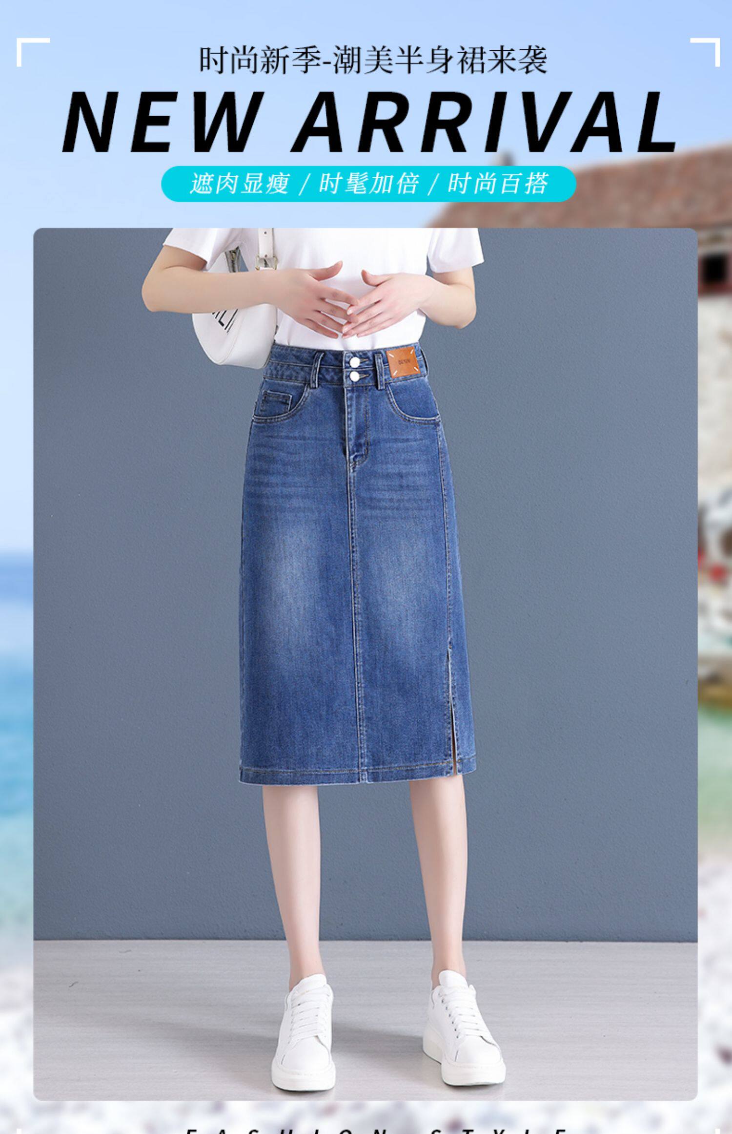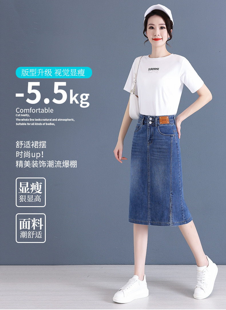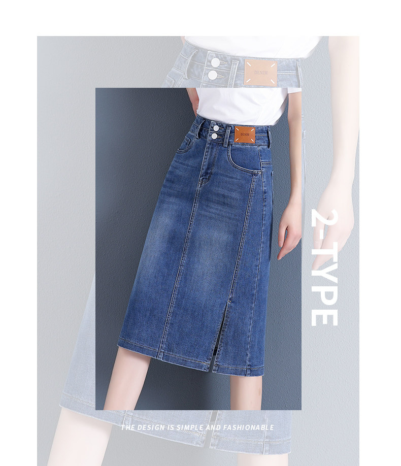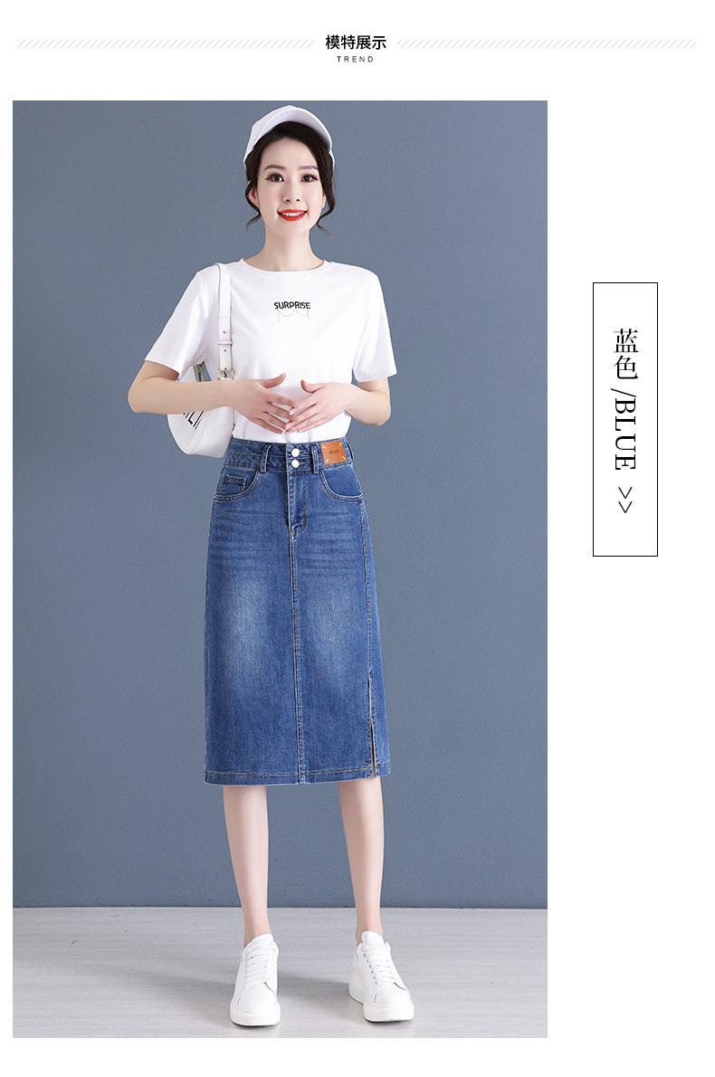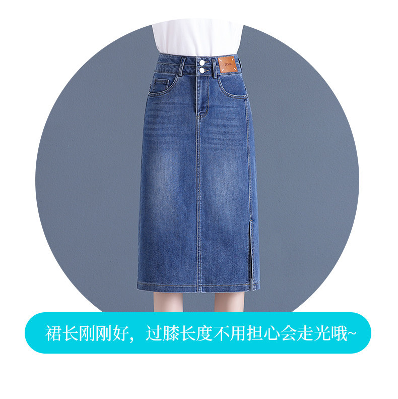 Летняя приталенная длинная тонкая джинсовая юбка, высокая талия, средней длины, с акцентом на бедрах