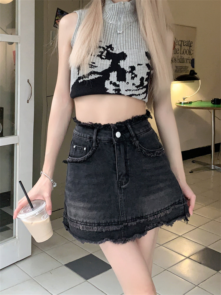 Tide, летняя приталенная небольшая дизайнерская джинсовая юбка, А-силуэт, большой размер, с акцентом на бедрах, тренд сезона