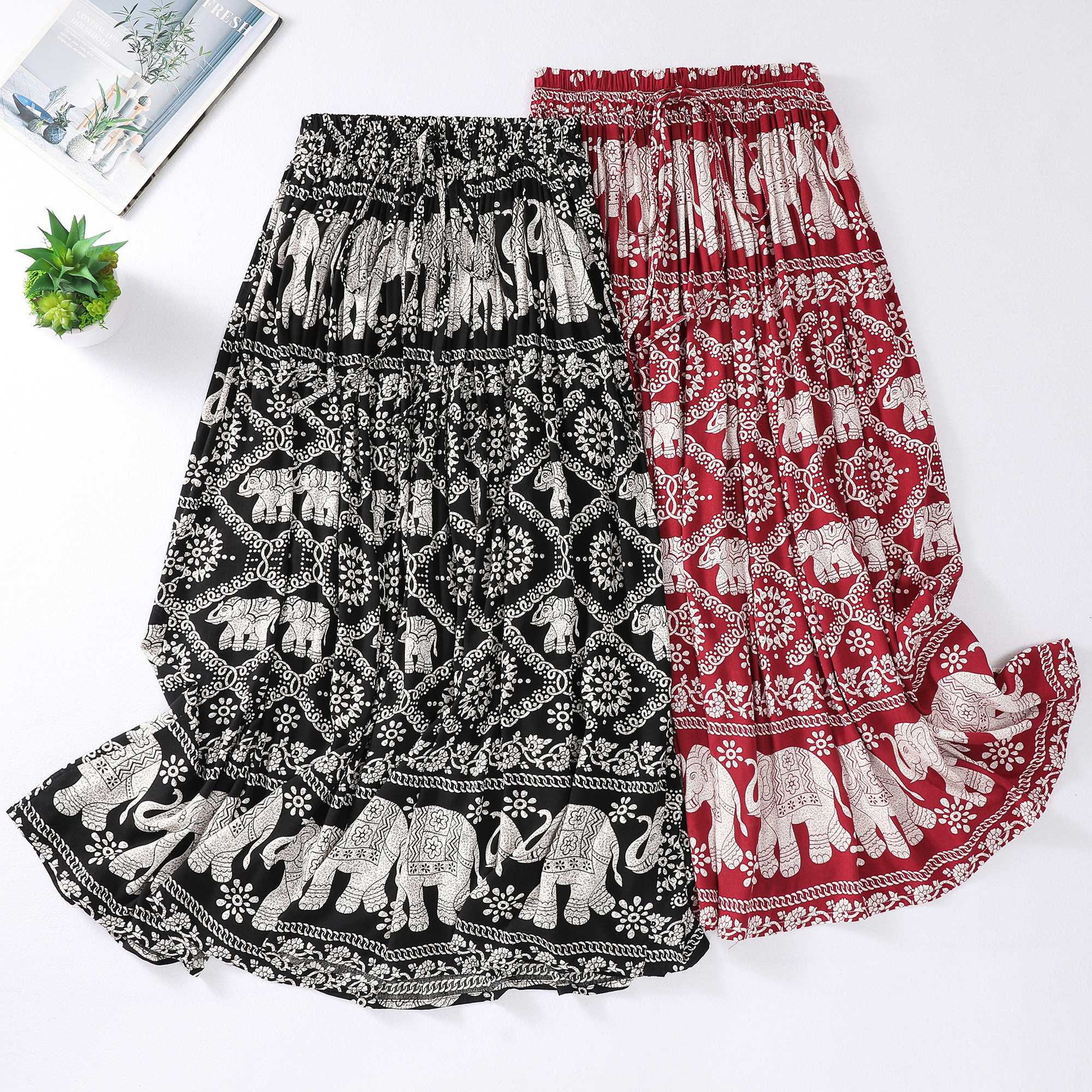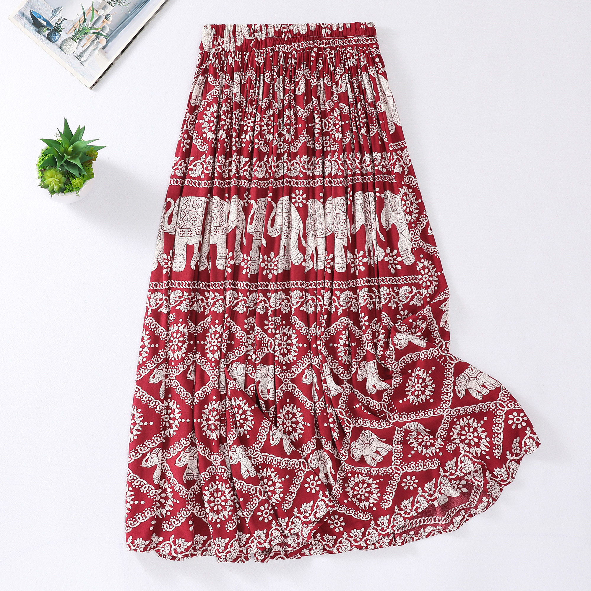 Этническая легкая и тонкая юбка, большой размер, этнический стиль, эластичная талия, А-силуэт