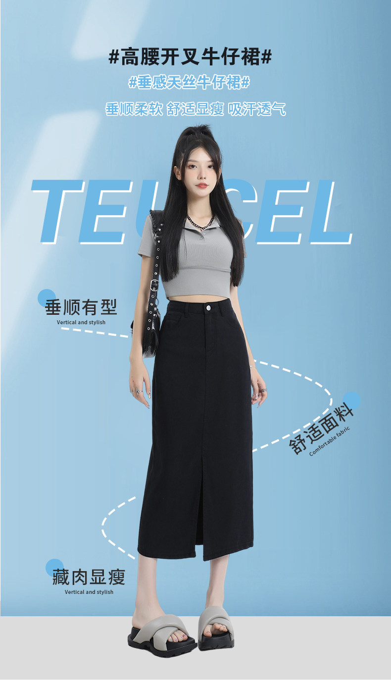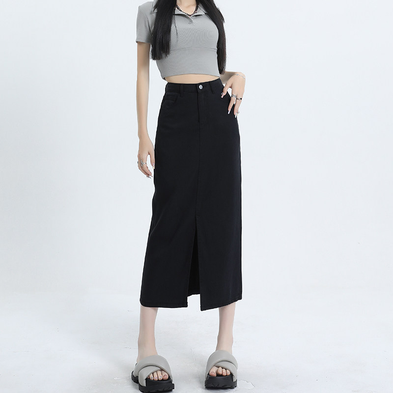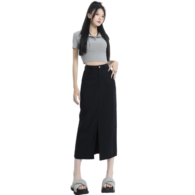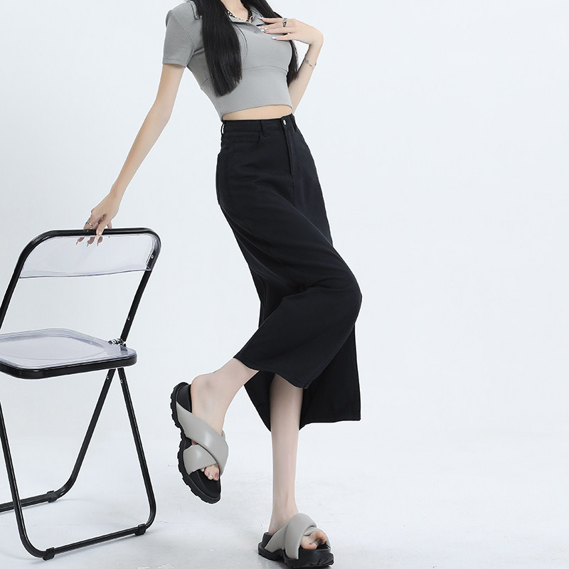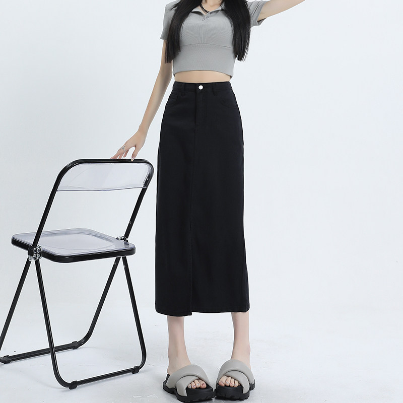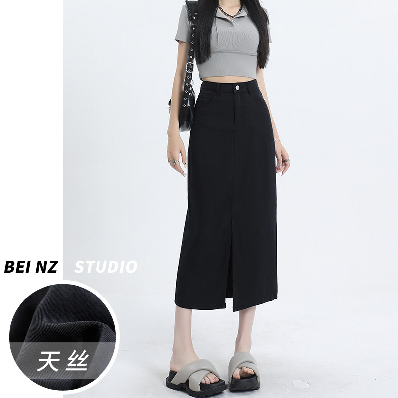 Черная летняя тонкая джинсовая юбка, длинная длинная юбка, 2026 года, средней длины, свободный прямой крой