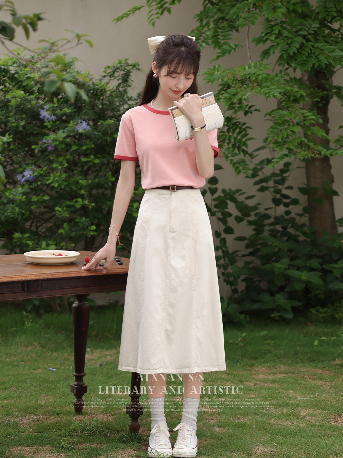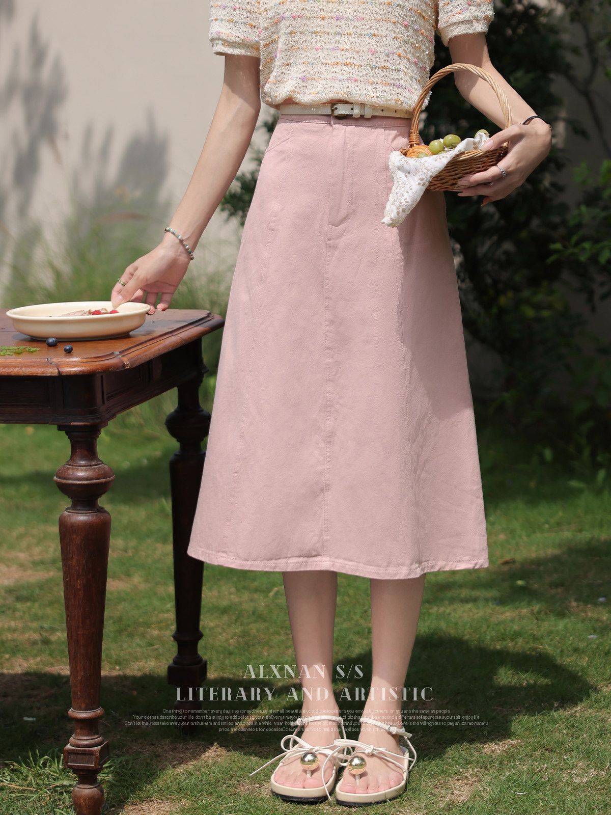 Кремовая летняя юбка, средней длины, французский стиль