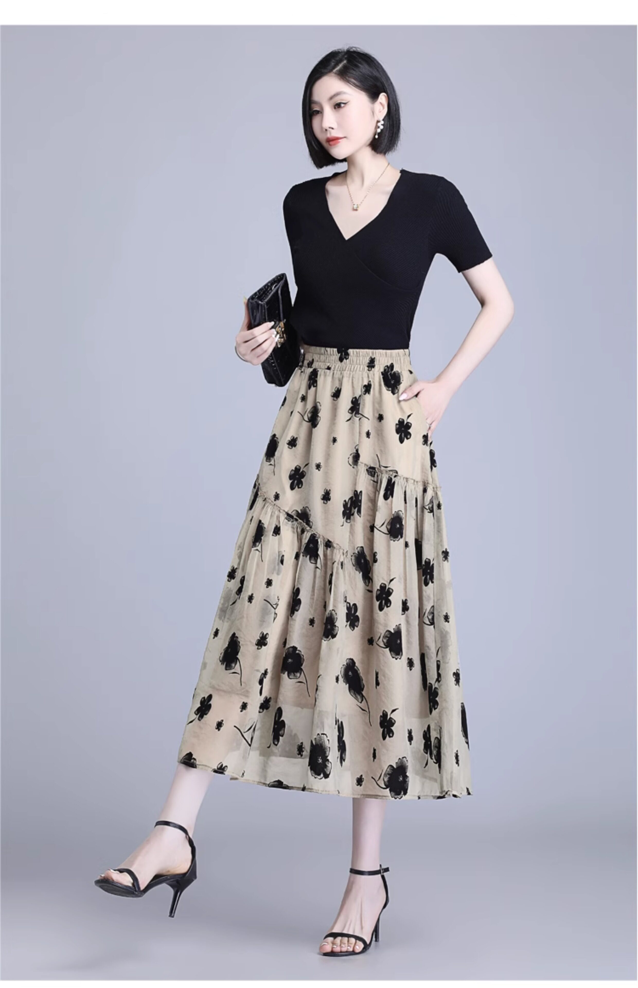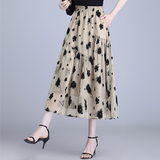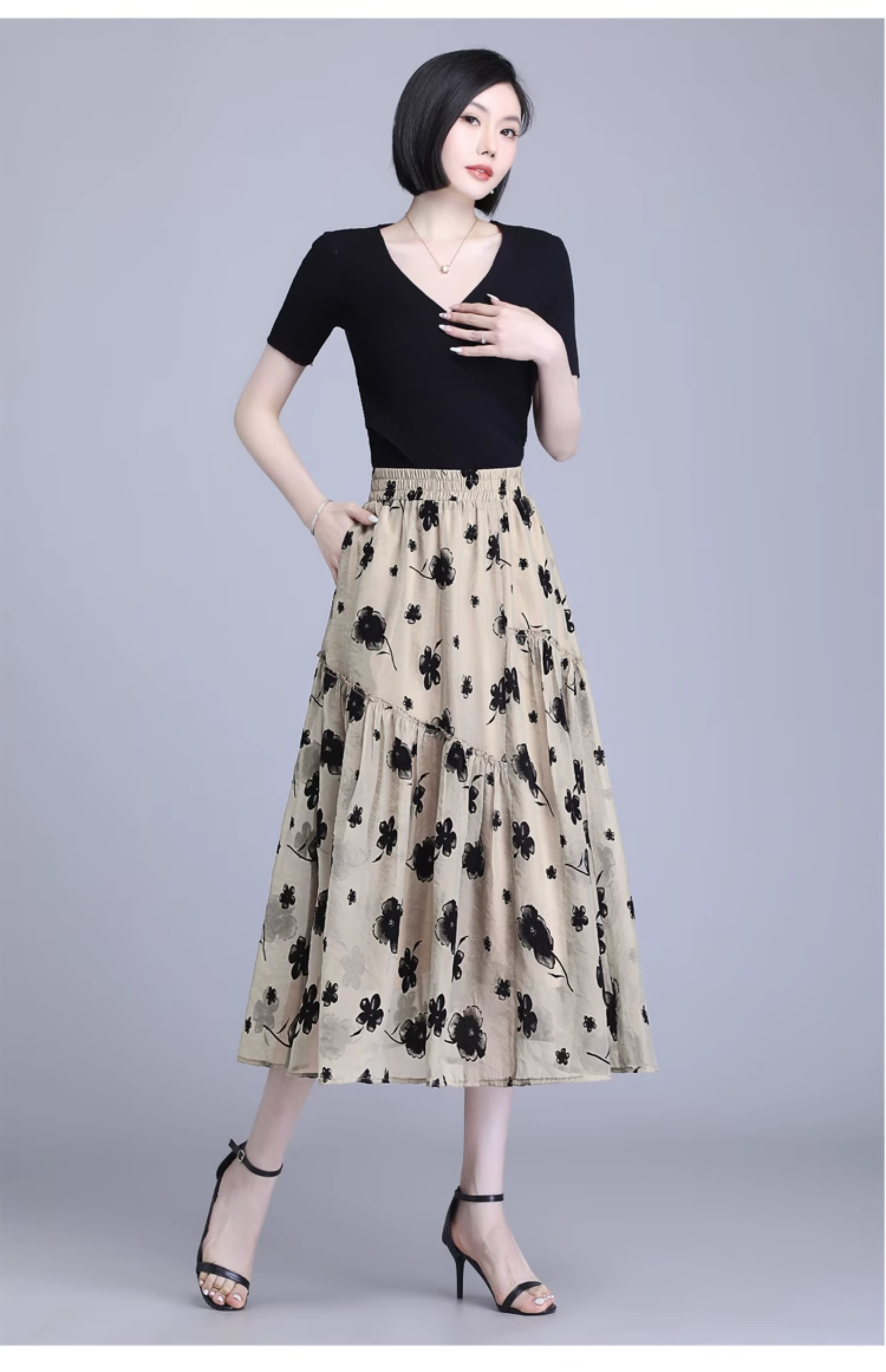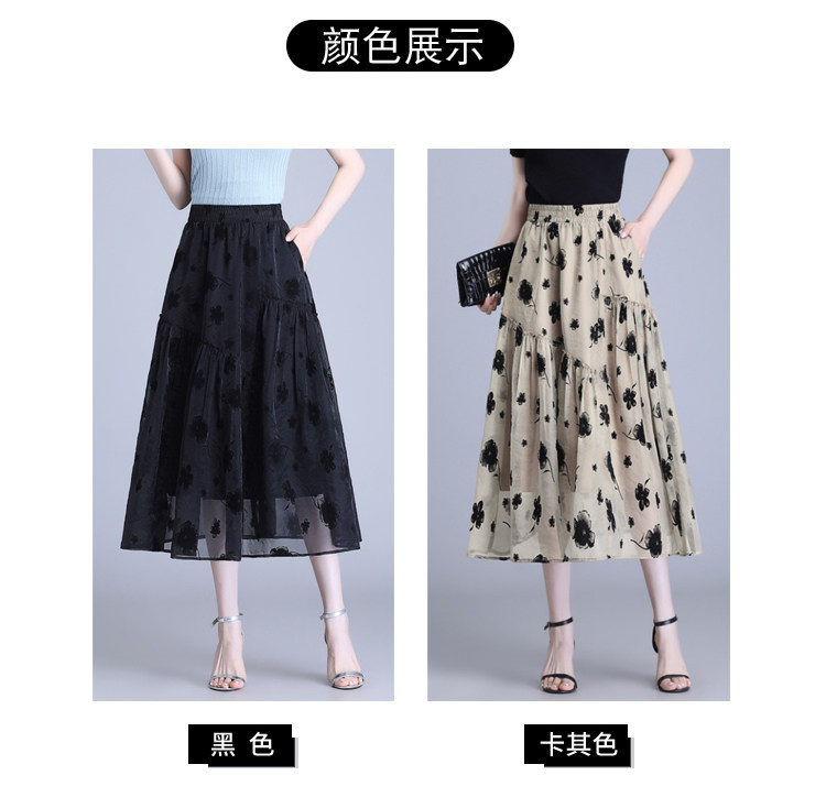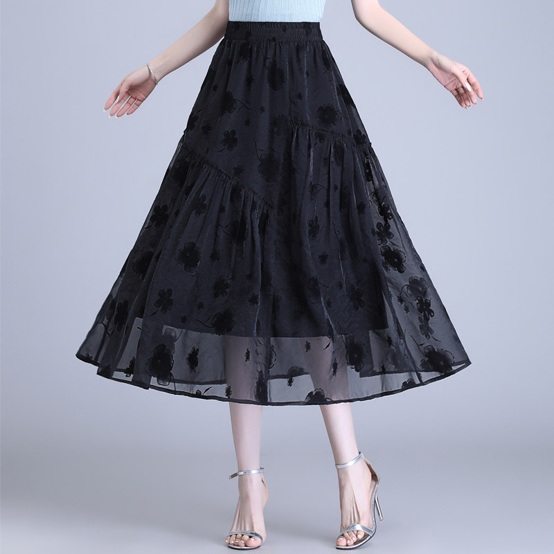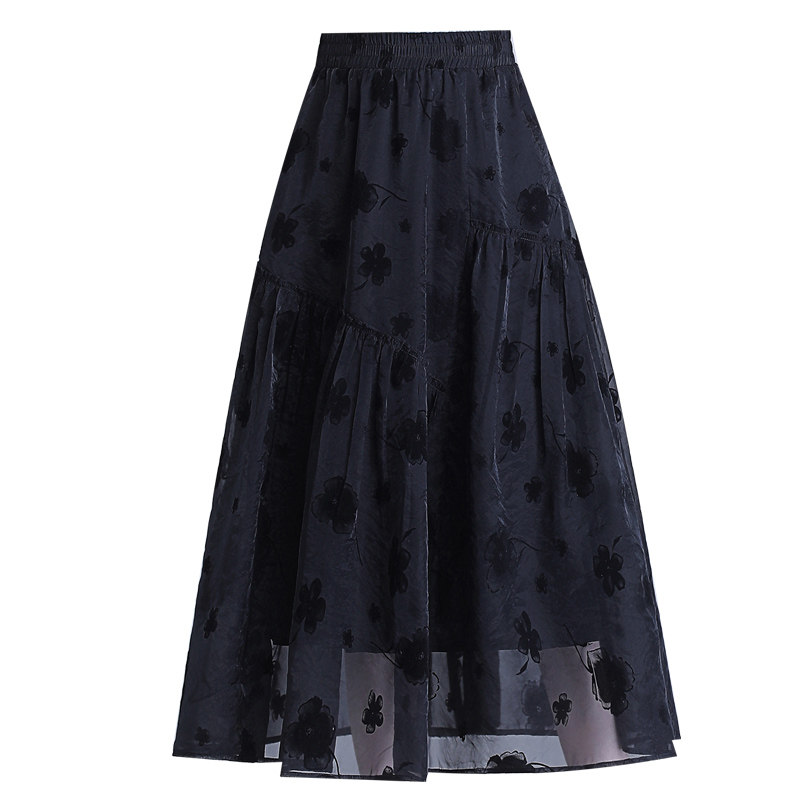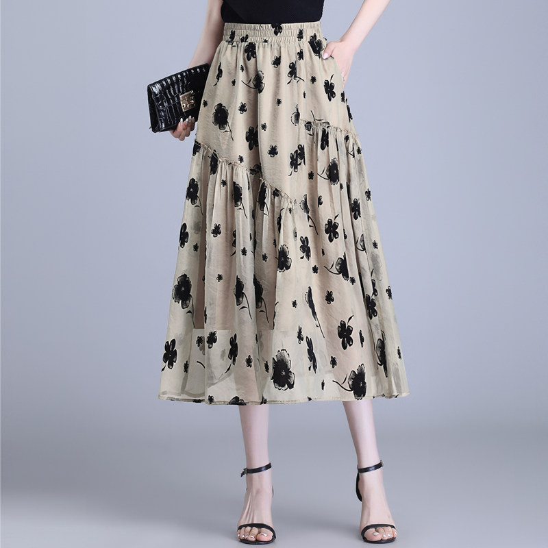 Бархатная кожаная летняя юбка, подходит для подростков, в цветочек, длина миди, А-силуэт