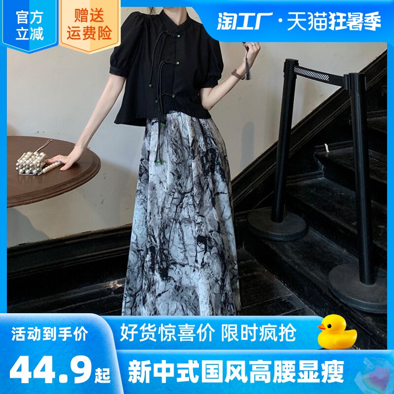 Дизайнерская приталенная юбка, китайский стиль, тренд сезона, коллекция 2023, высокая талия