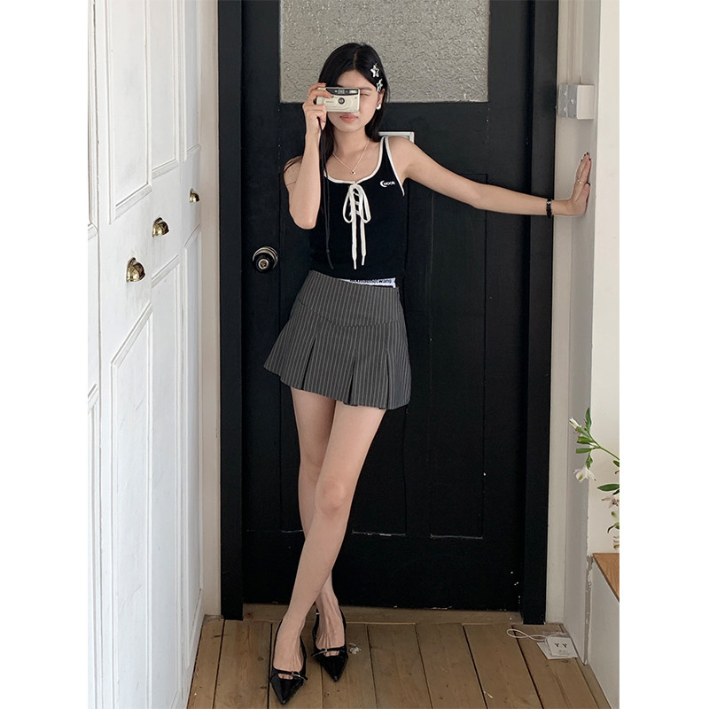 Комплект, мини-юбка, летняя дизайнерская юбка, в корейском стиле, А-силуэт, тренд сезона, с акцентом на бедрах