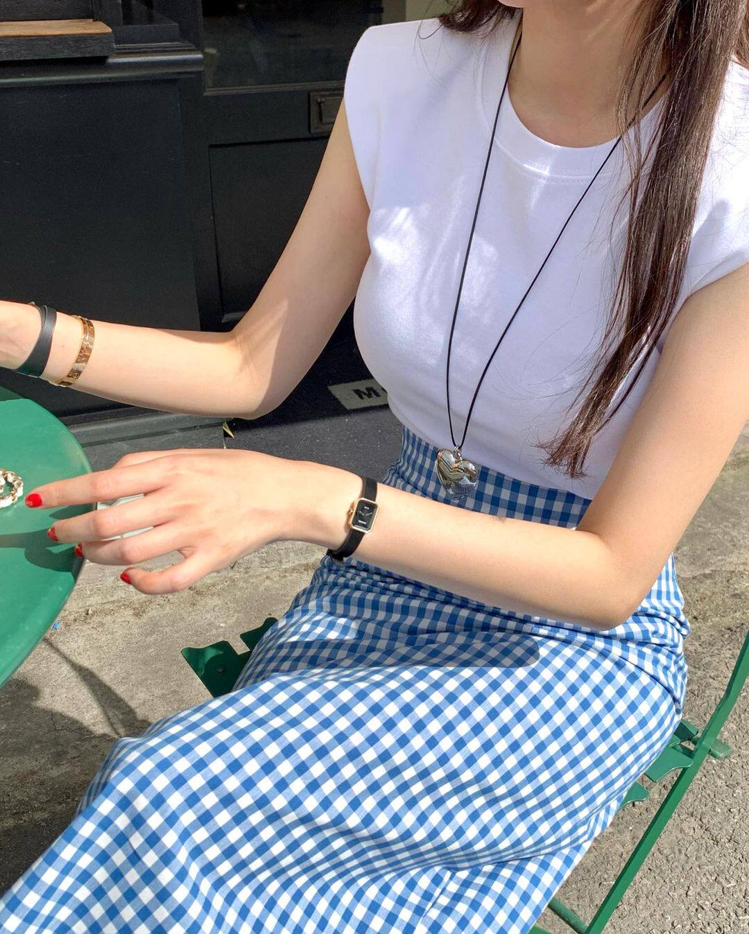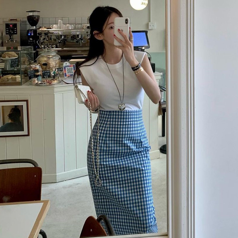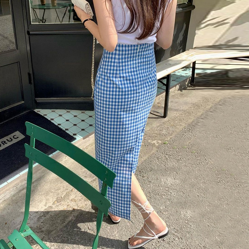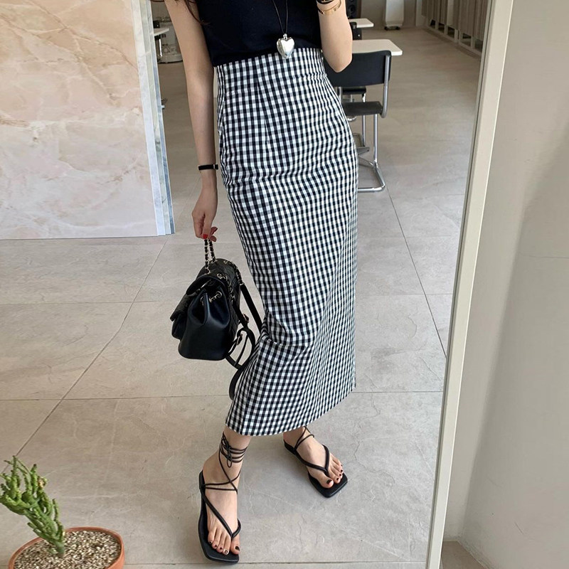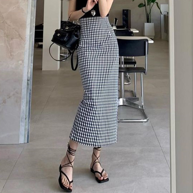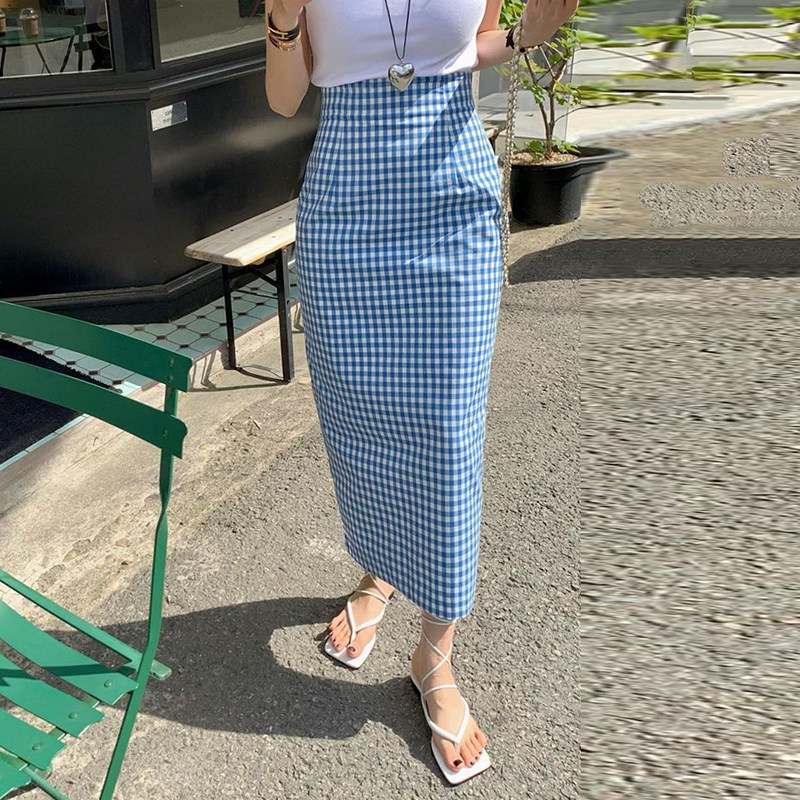 Ретро цветная клетчатая летняя приталенная юбка, французский ретро стиль, с акцентом на бедрах
