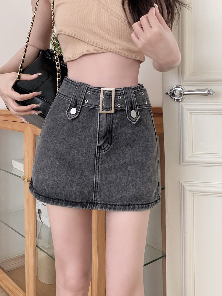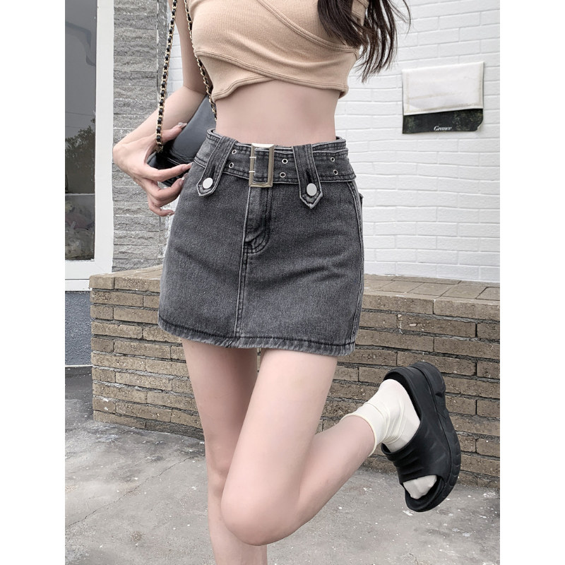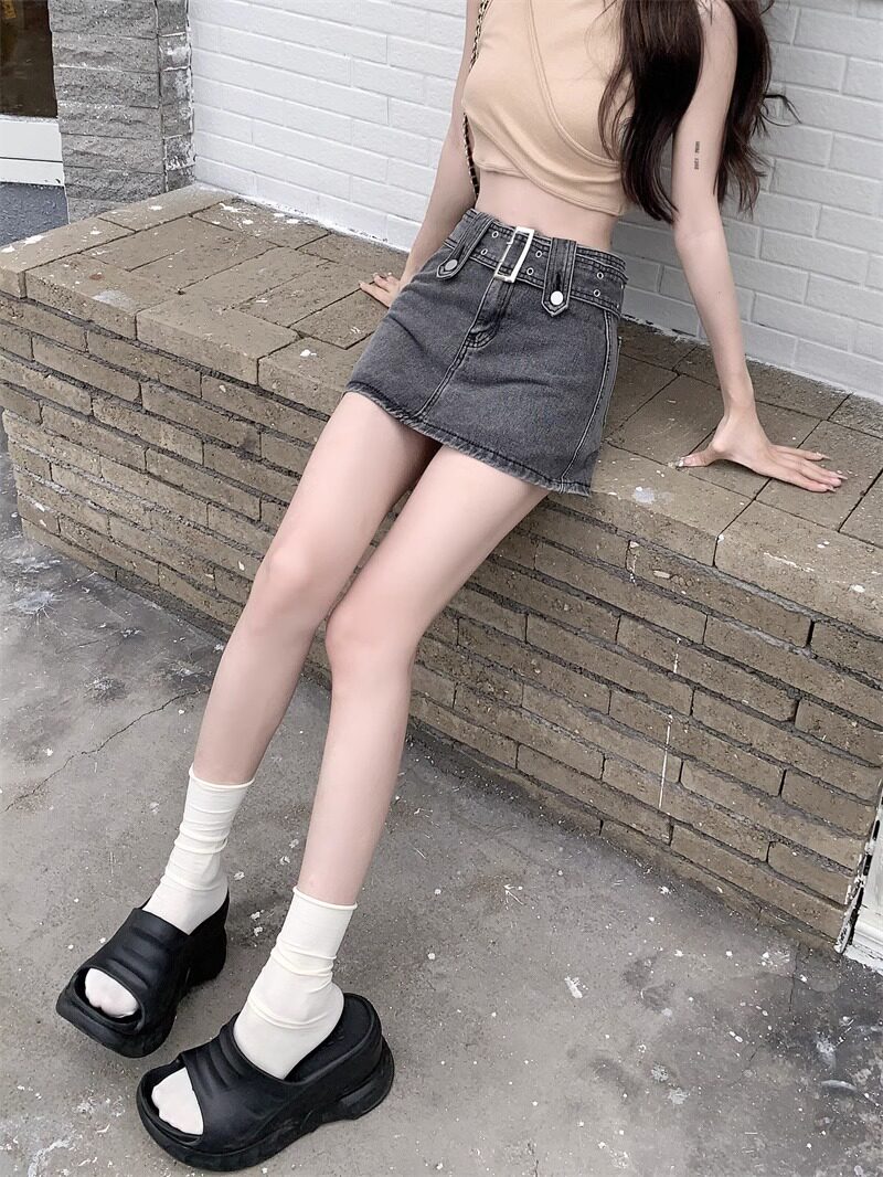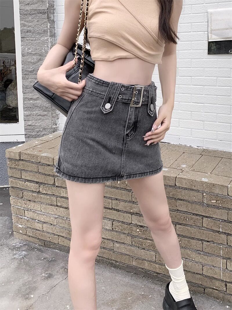 Джинсовая юбка, летняя мини-юбка, высокая талия, большой размер, с акцентом на бедрах
