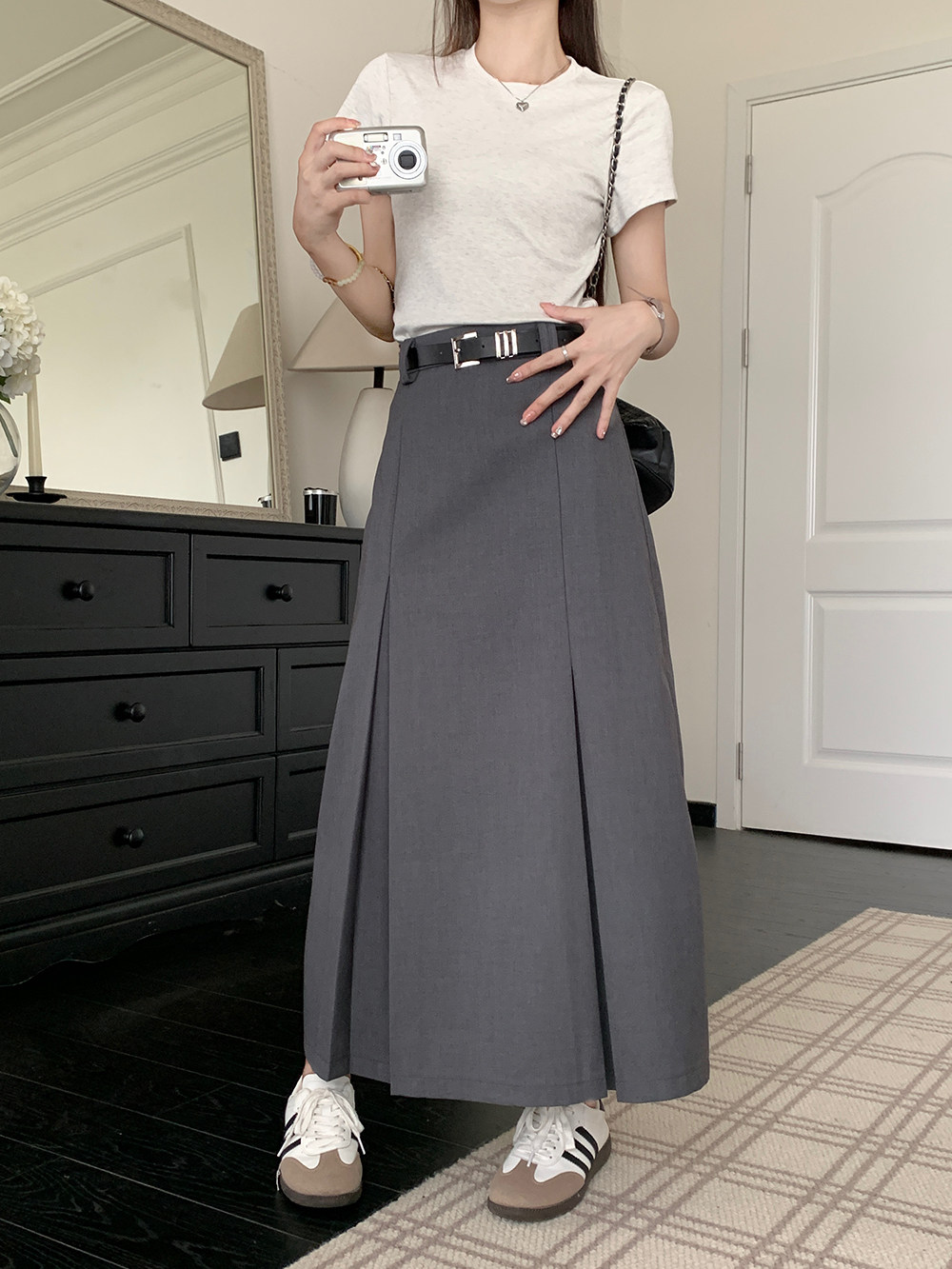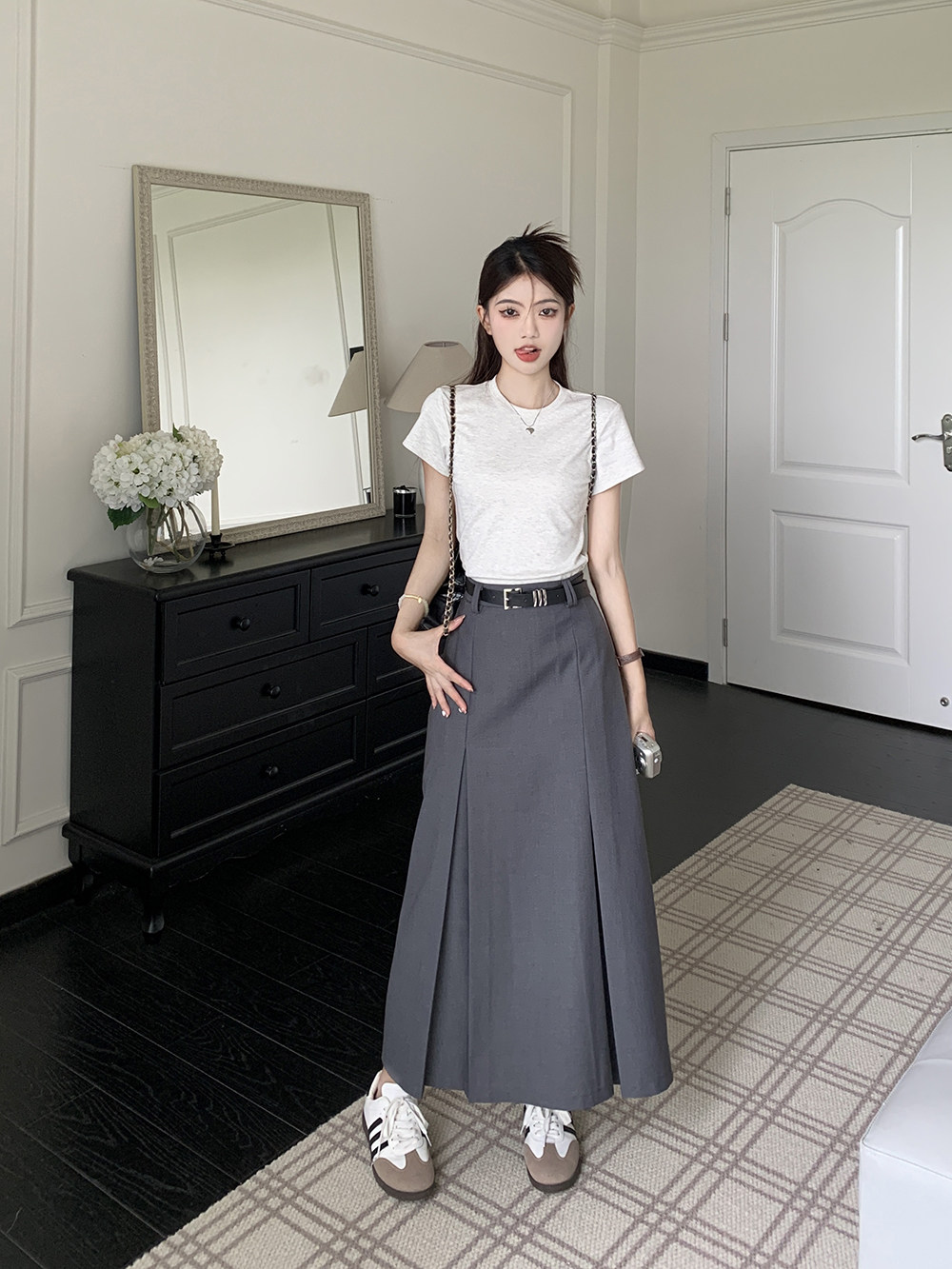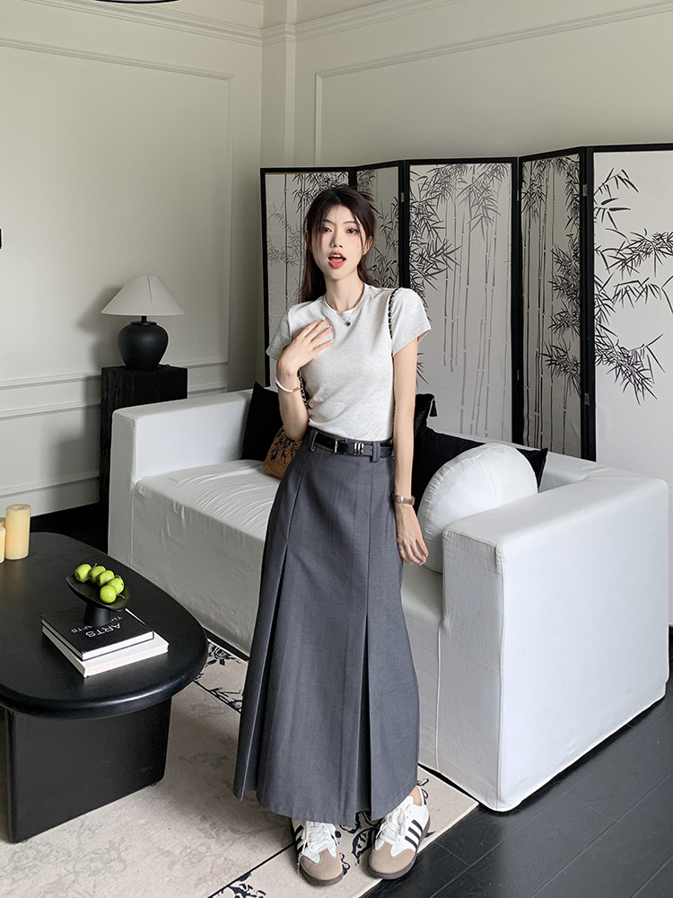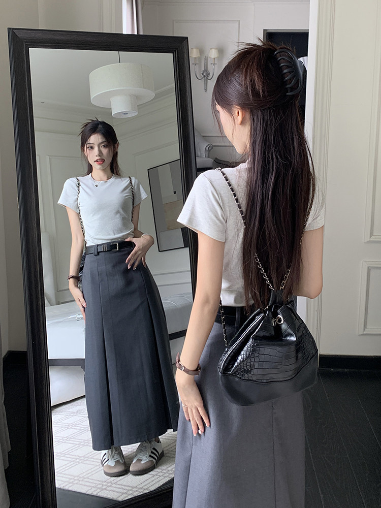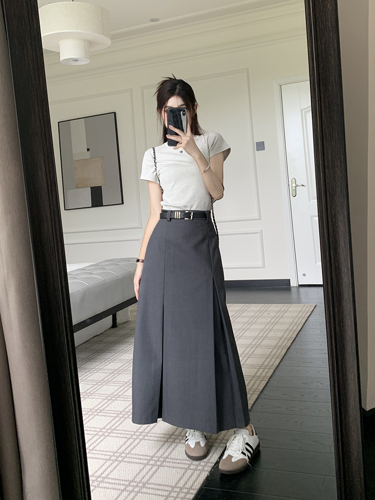 Летний костюм, приталенная длинная юбка, в корейском стиле, плиссированная юбка, А-силуэт