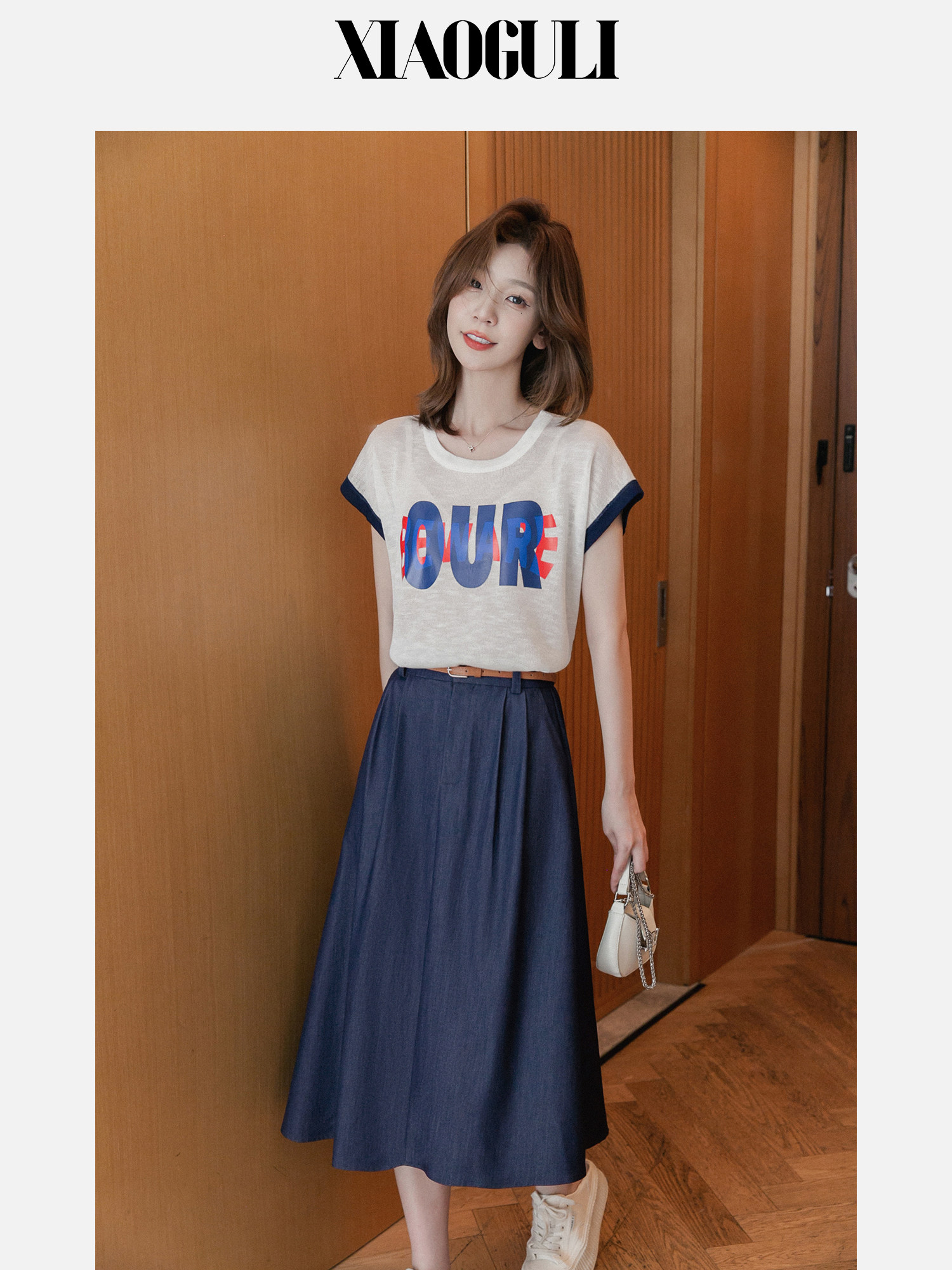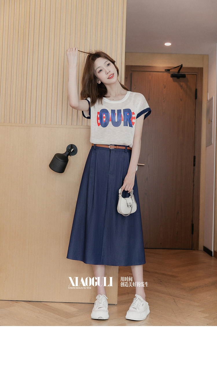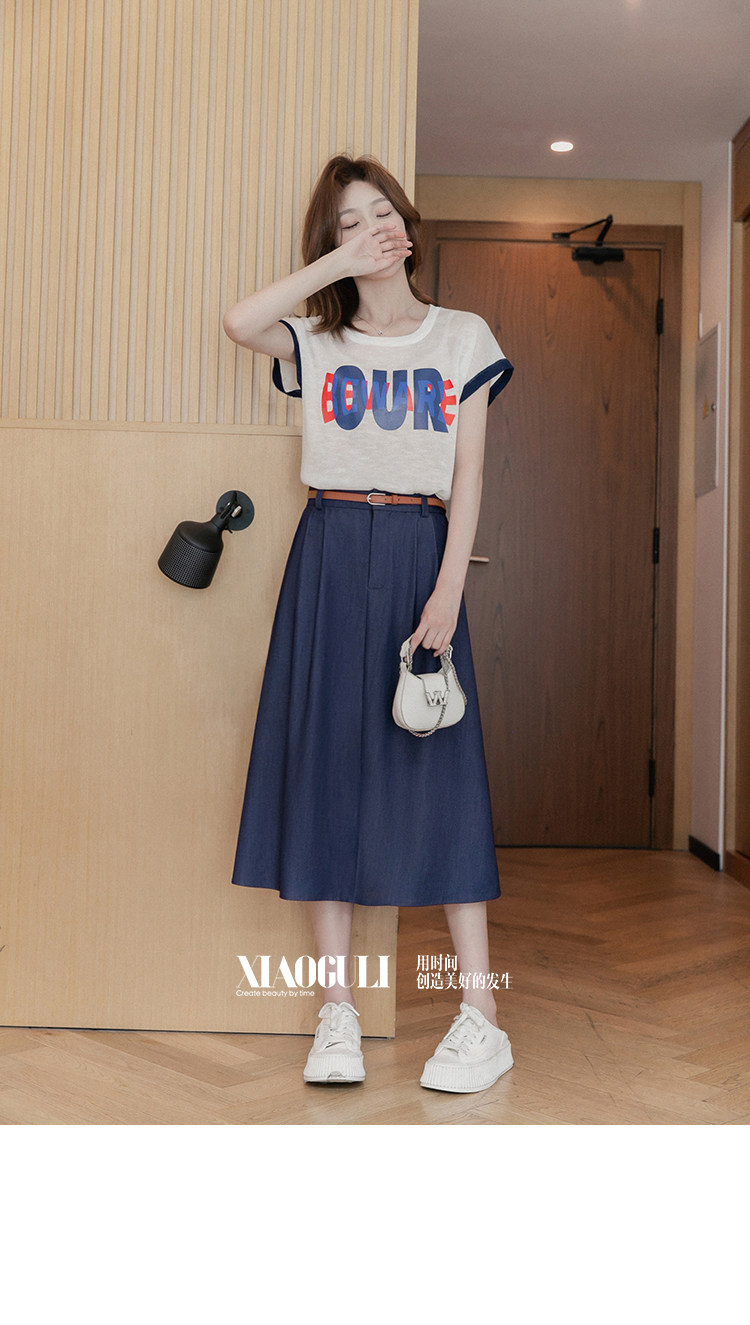 小谷粒 Летняя джинсовая юбка, высокая талия, А-силуэт, подходит для подростков