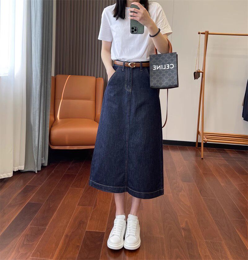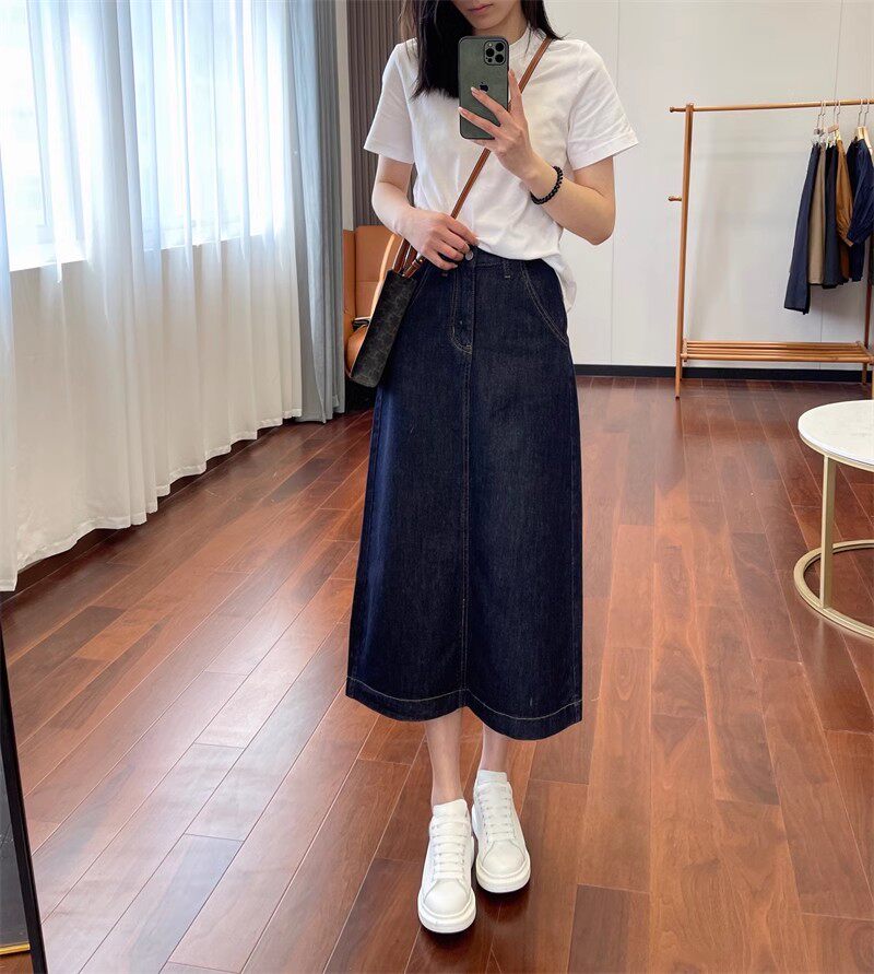 Дизайнерская длинная джинсовая юбка, тренд сезона, А-силуэт