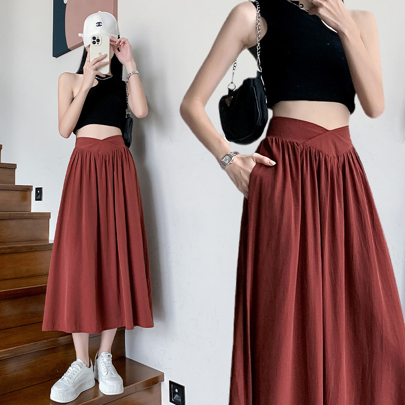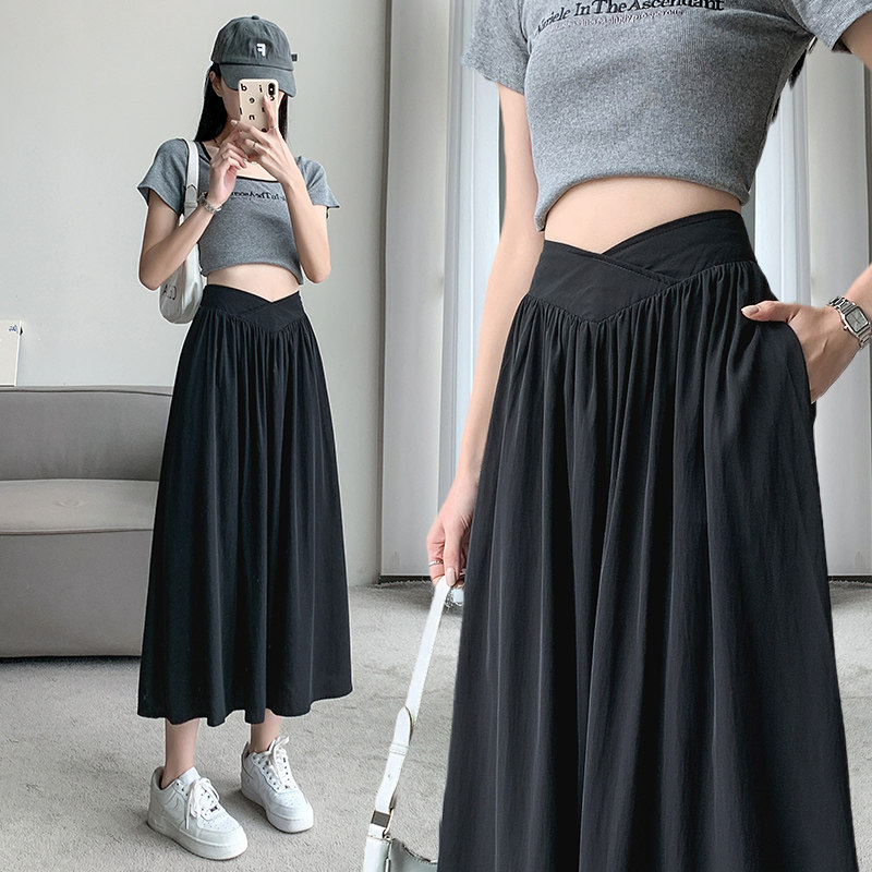 Длинная дизайнерская черная летняя юбка в складку, средней длины, тренд сезона, высокая талия, А-силуэт