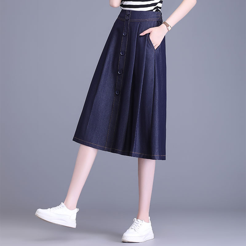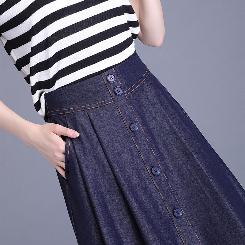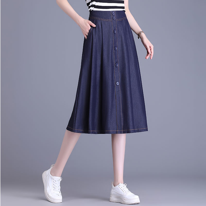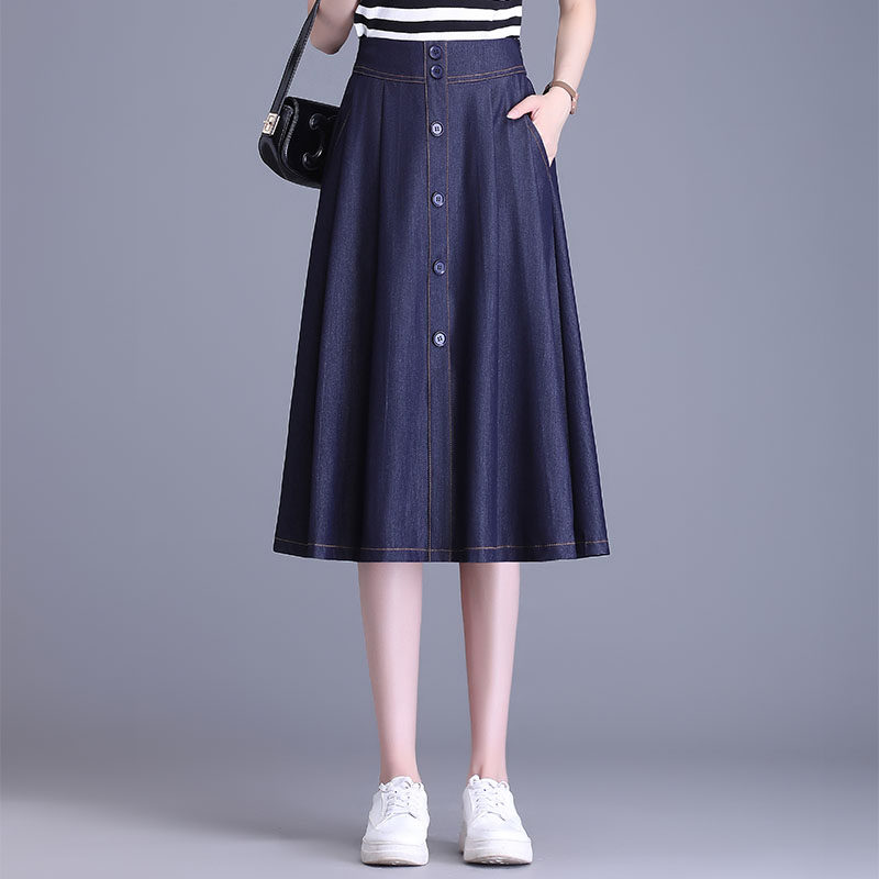 Тонкая джинсовая юбка, летняя длинная юбка, подходит для подростков, А-силуэт, средней длины