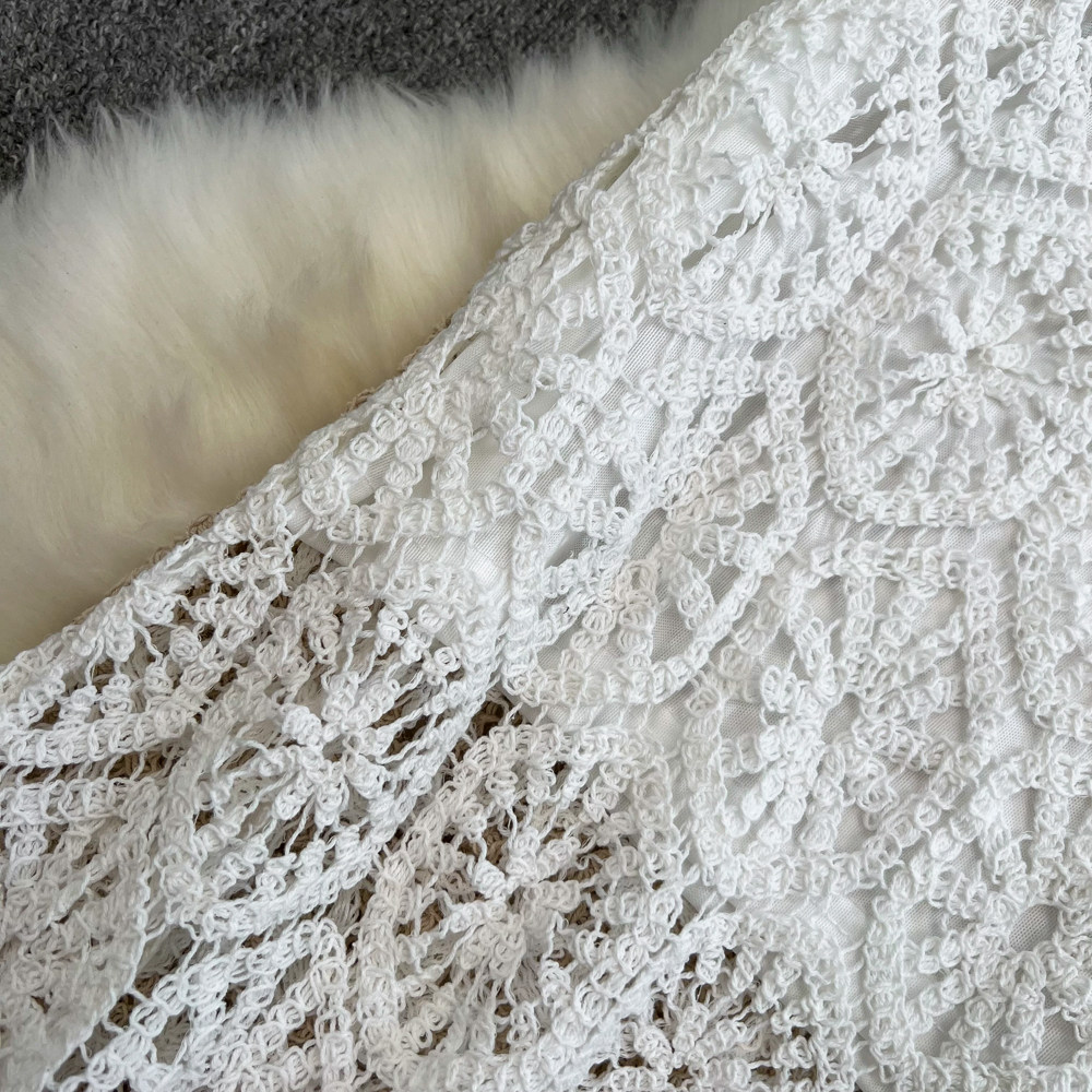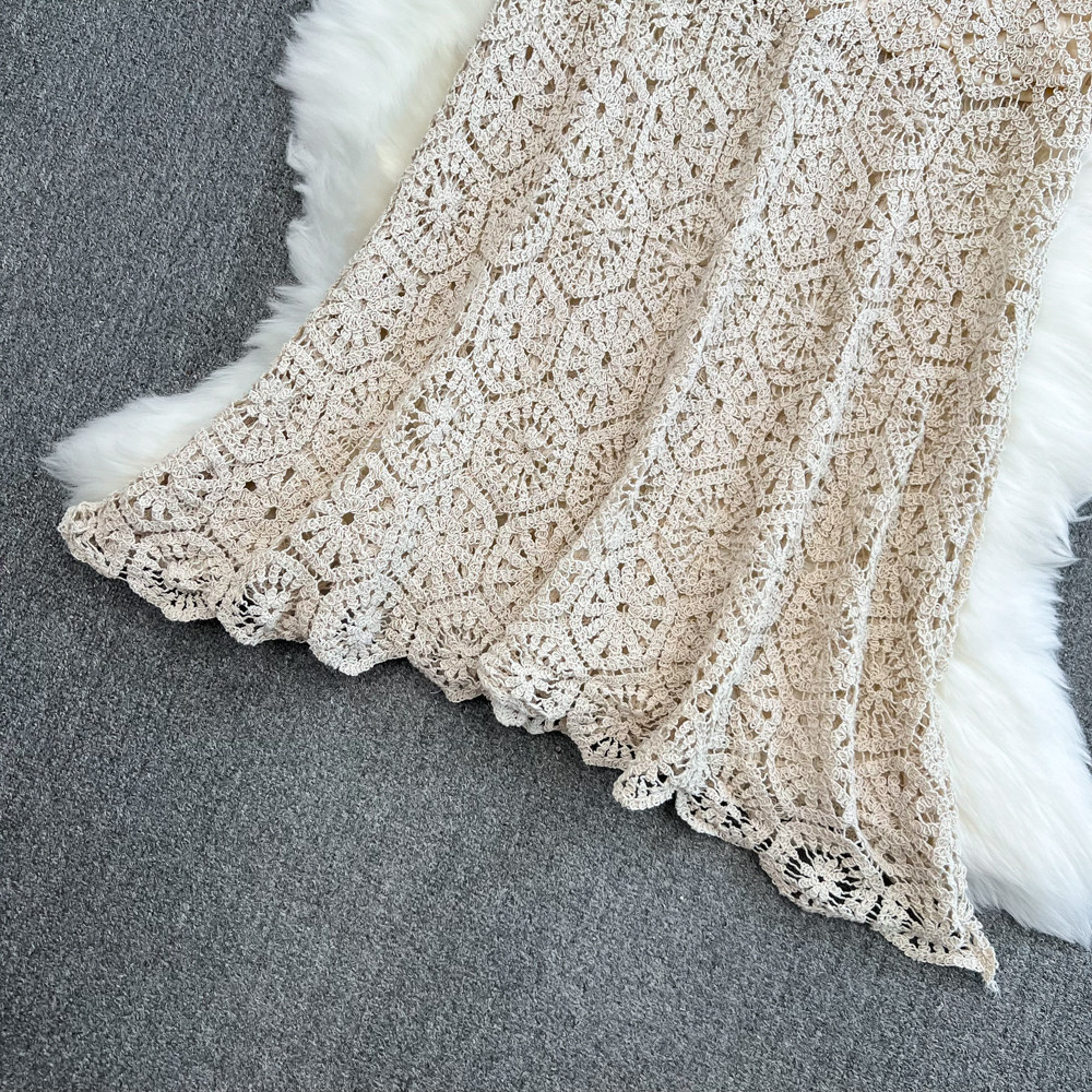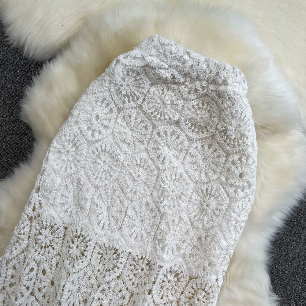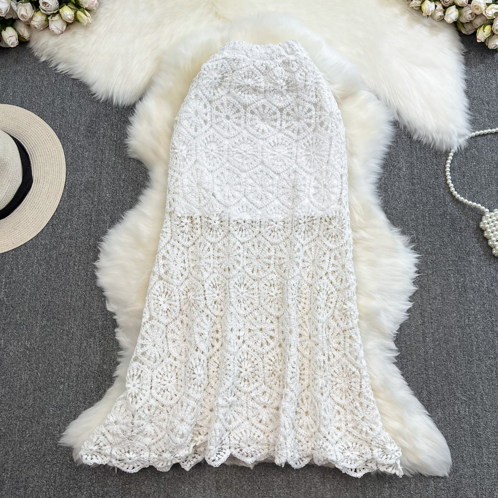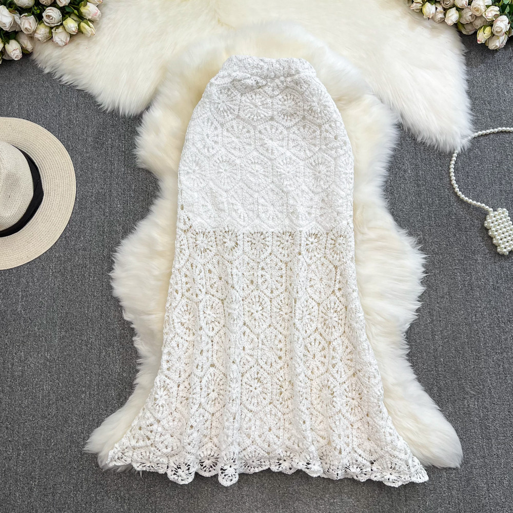 Южнокорейский ретро приталенный длинный товар, кружевная юбка, средней длины, с акцентом на бедрах, крой «рыбий хвост»