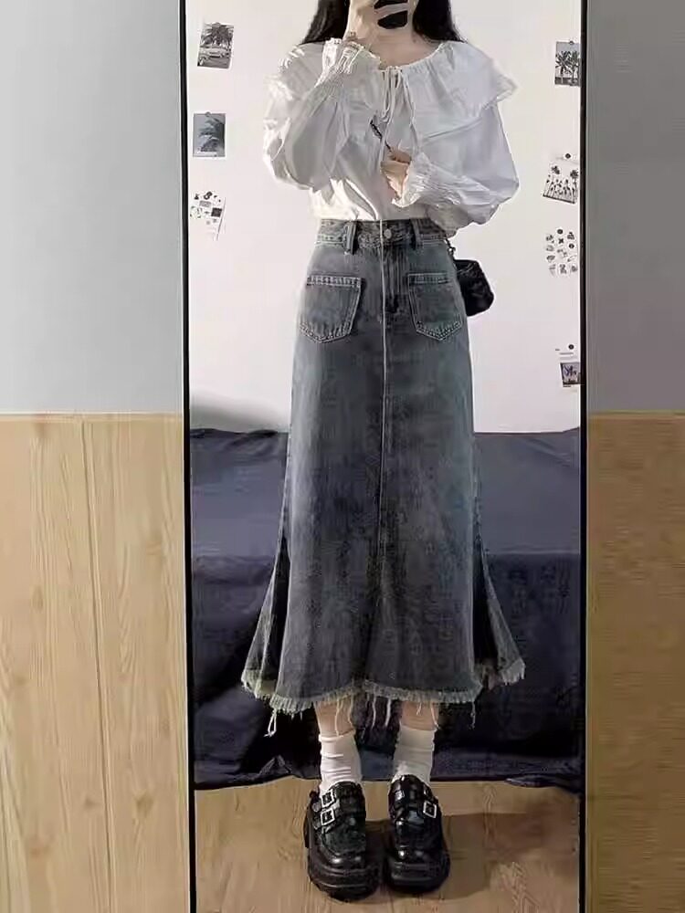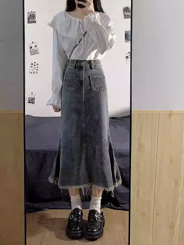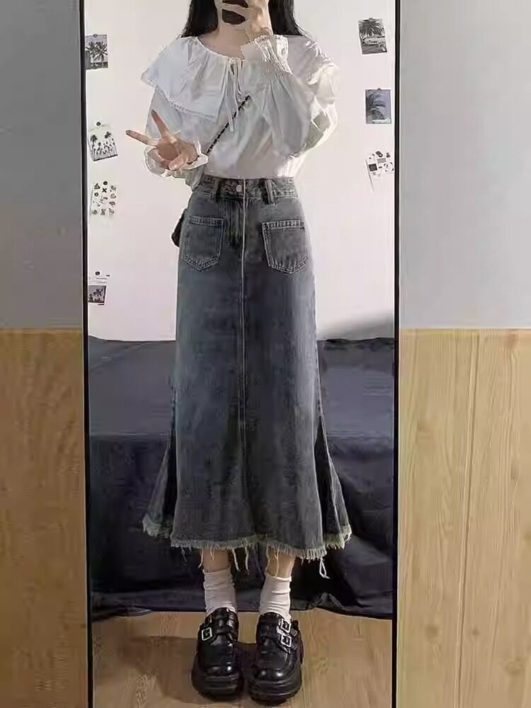 Женщина с джинсовой юбкой с высокой талией с антикварным дизайном летние плюс размер жирной девочки Слимная длина