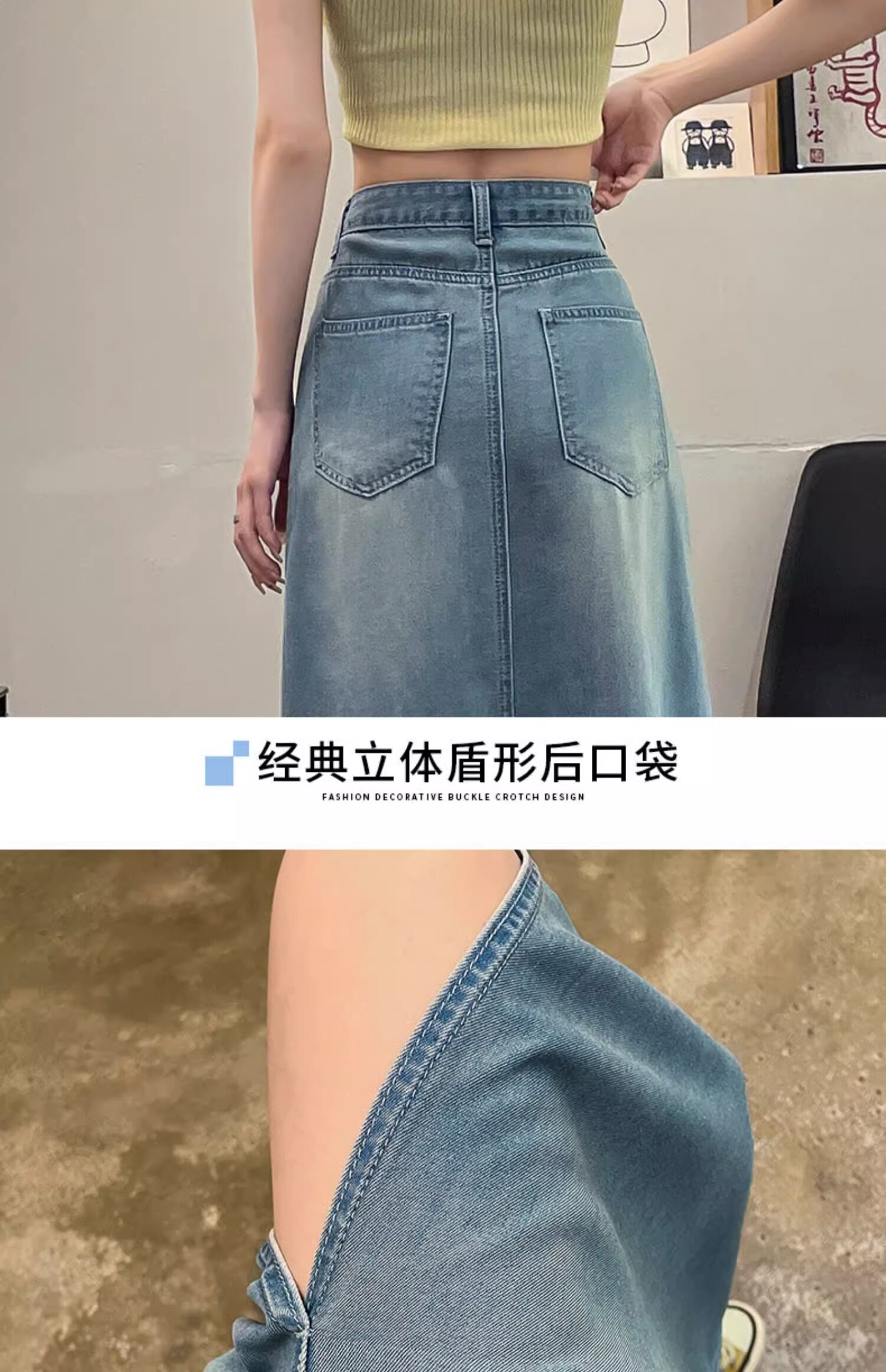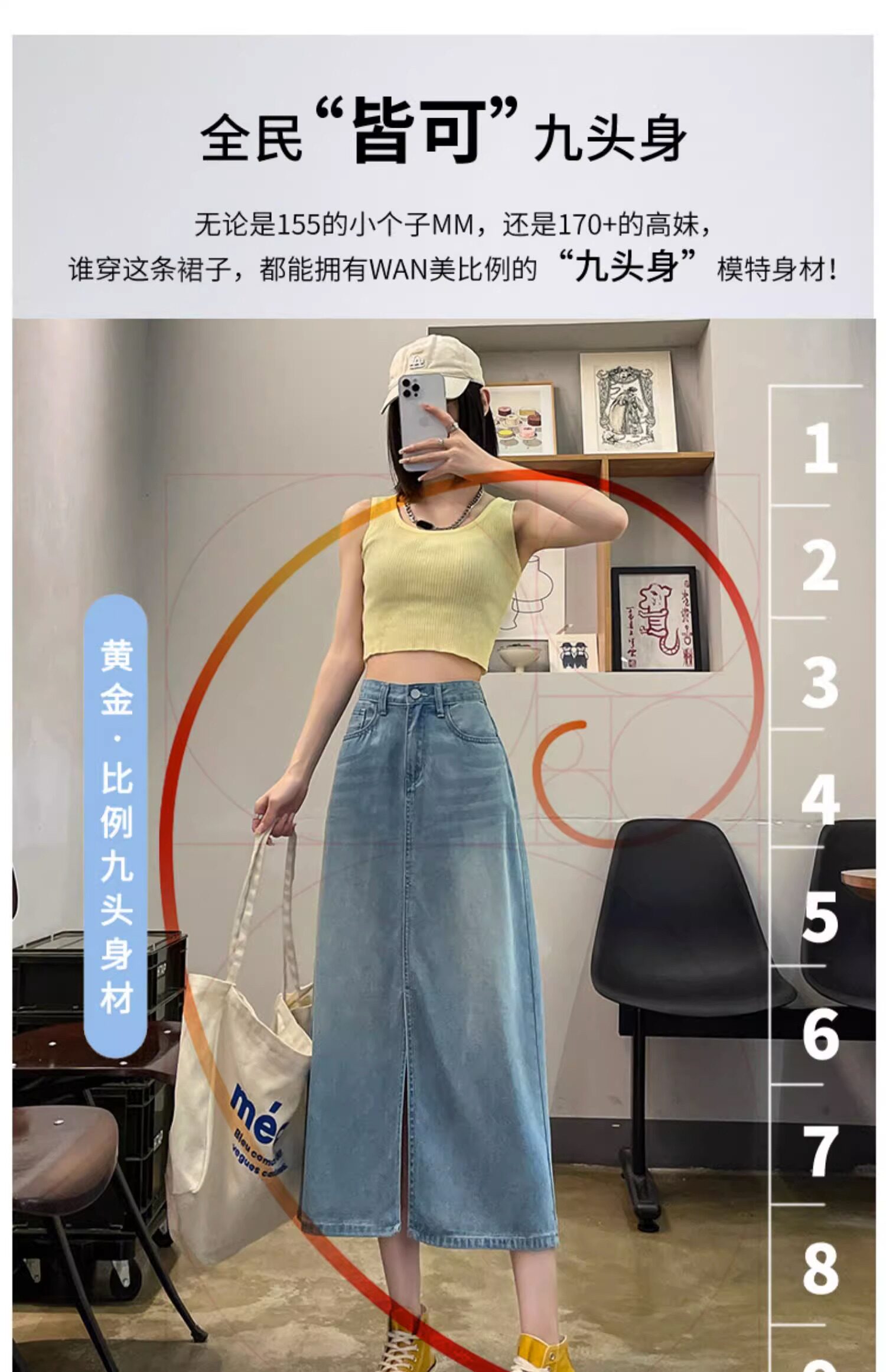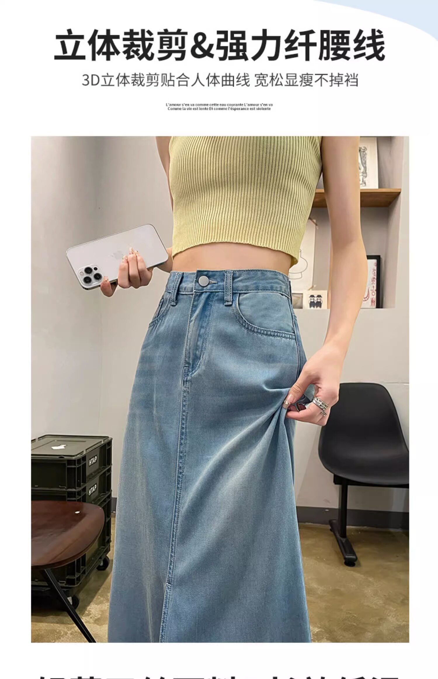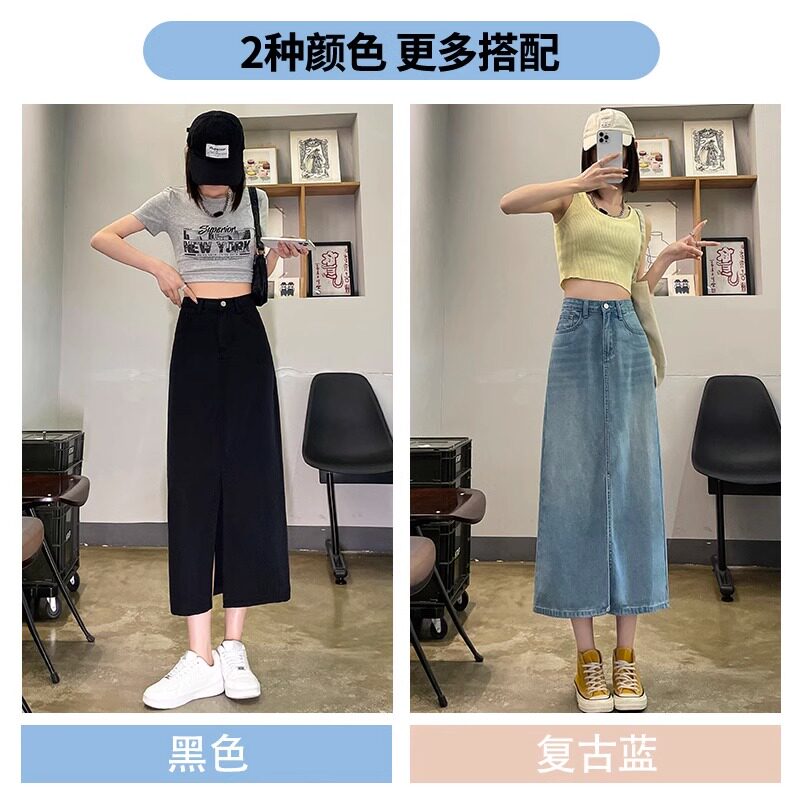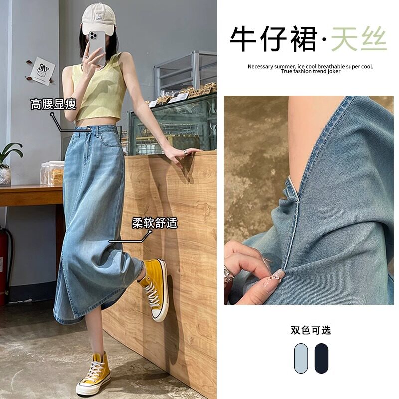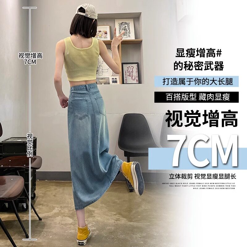 Летняя тонкая джинсовая юбка, 2025 года, А-силуэт, высокая талия, длина миди, с акцентом на бедрах
