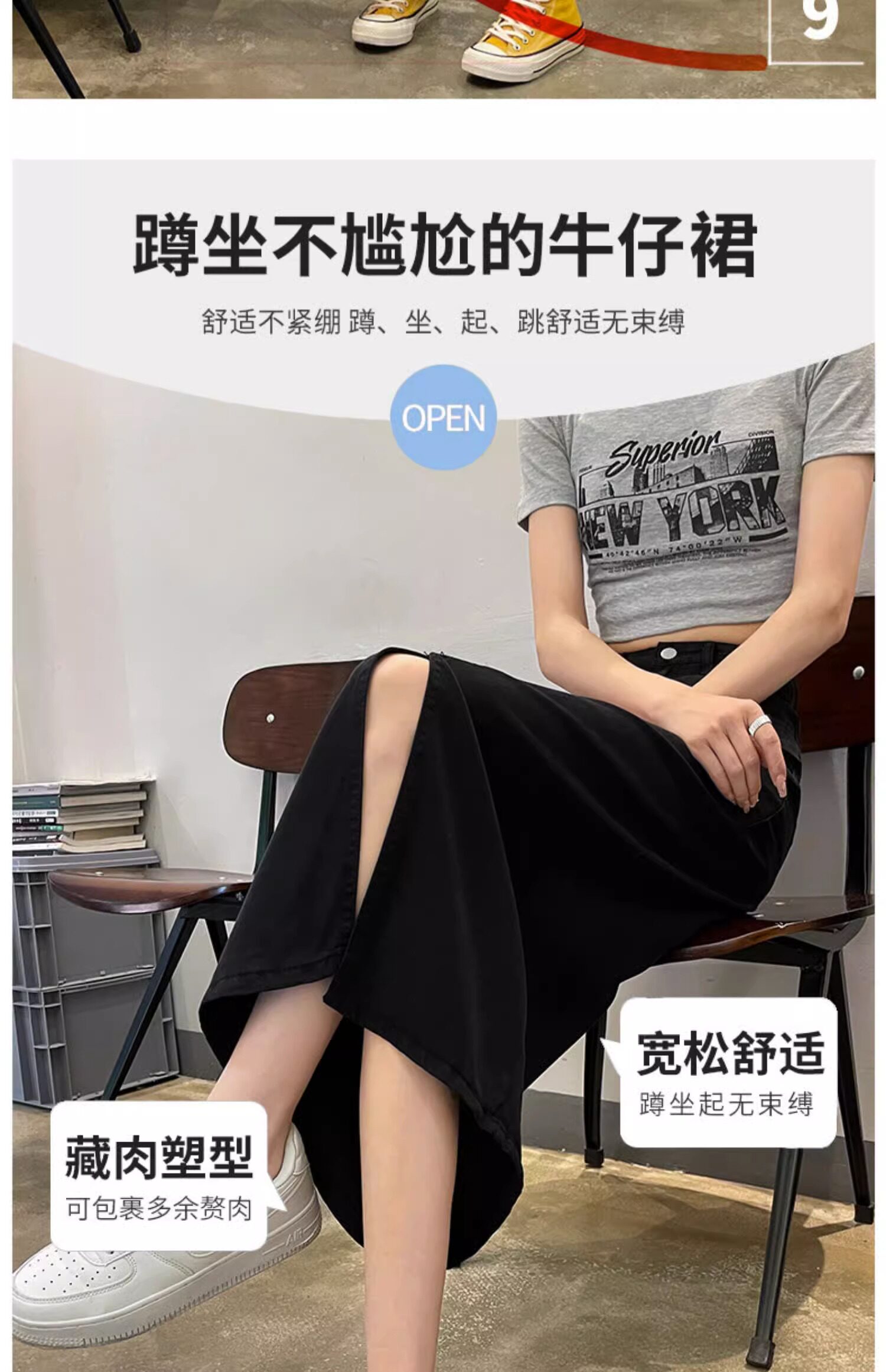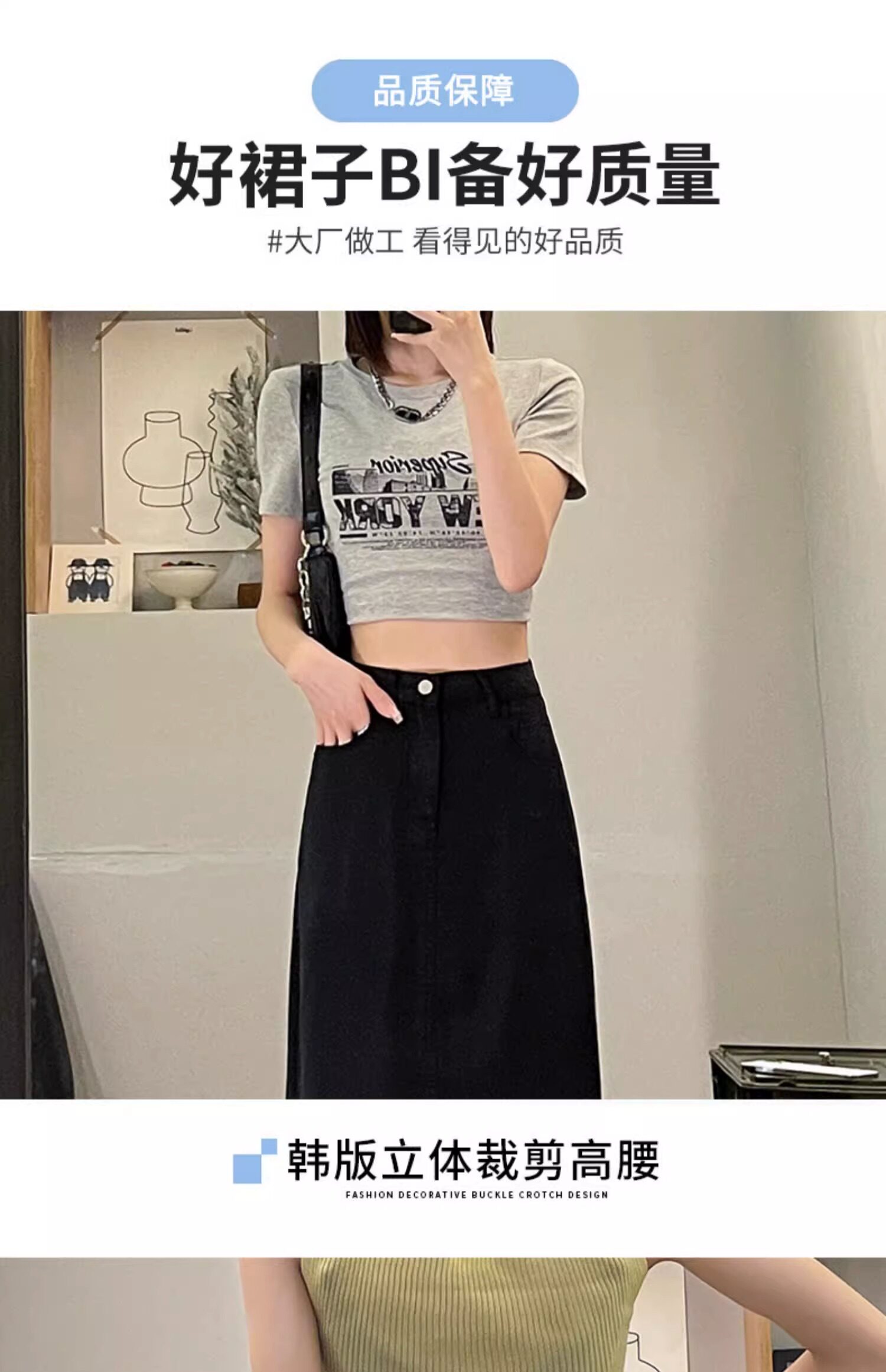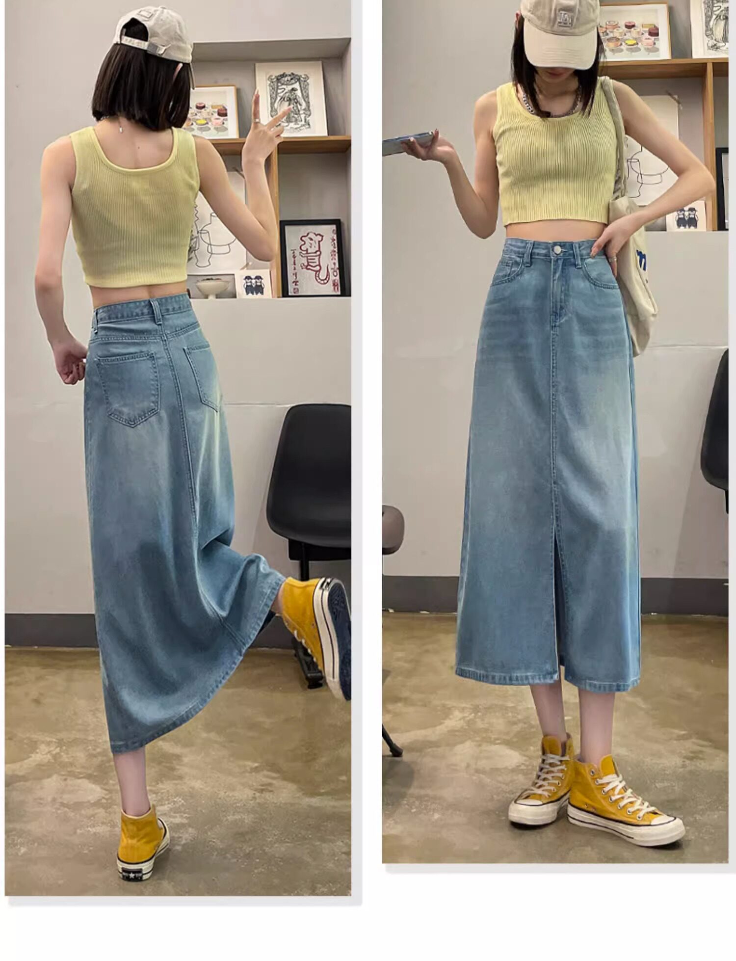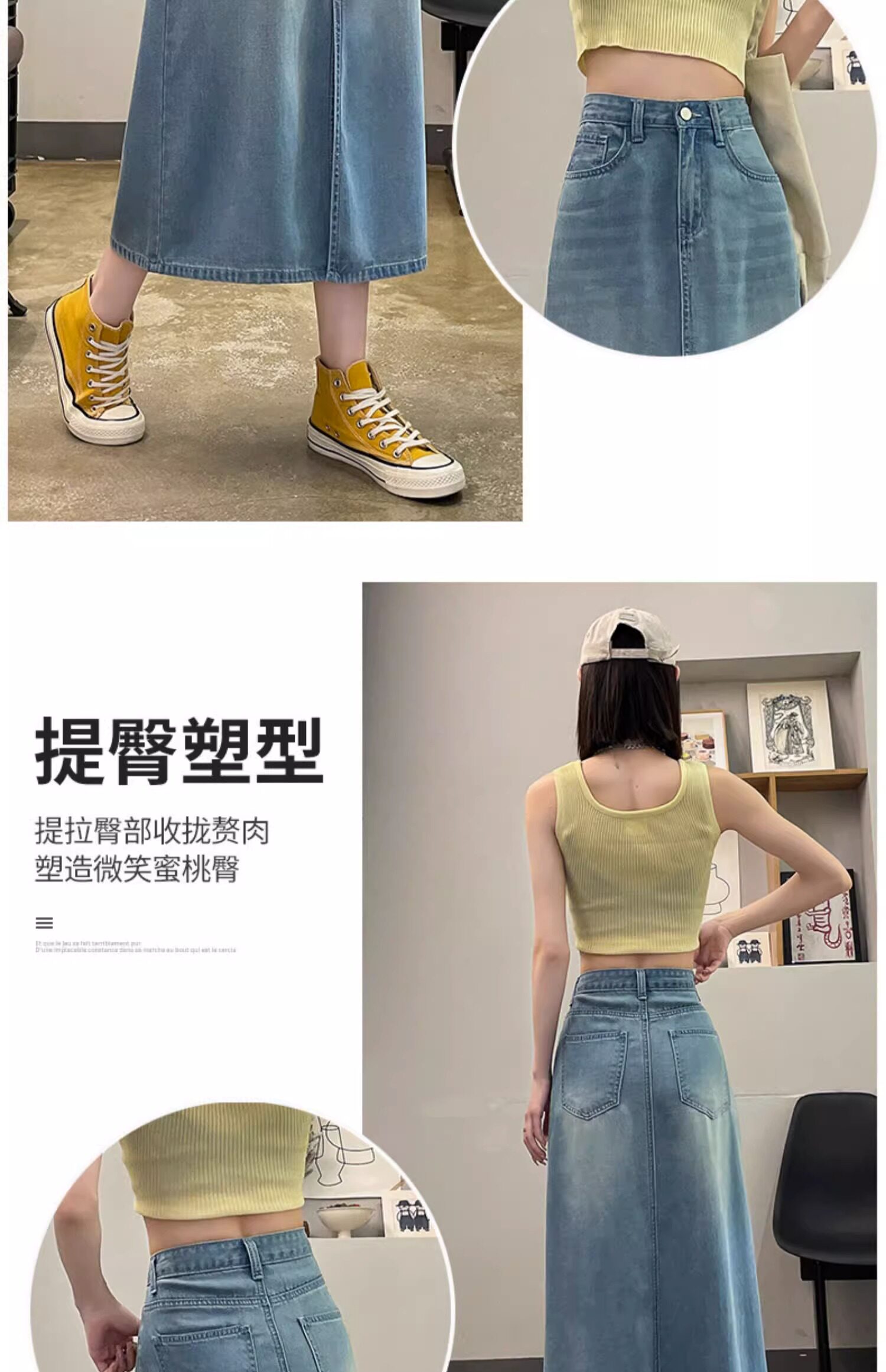 Летняя тонкая джинсовая юбка, 2025 года, А-силуэт, высокая талия, длина миди, с акцентом на бедрах