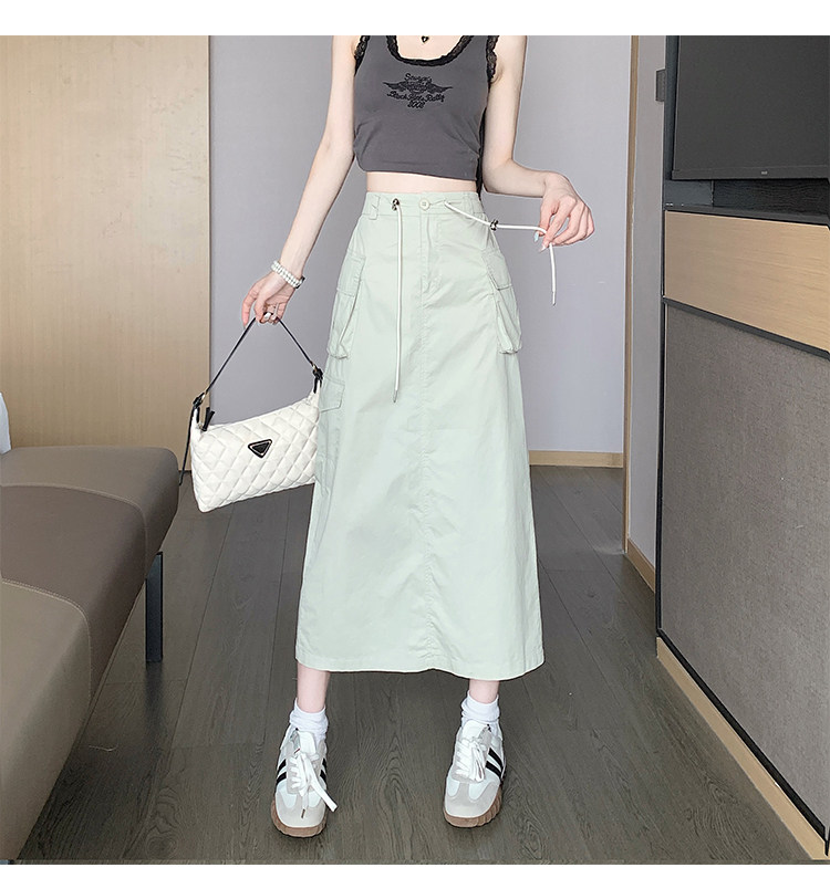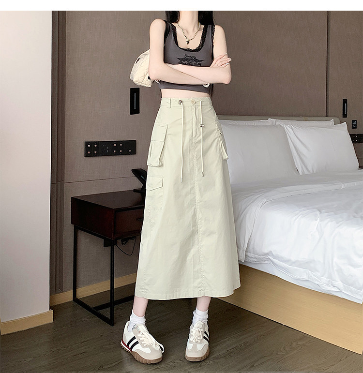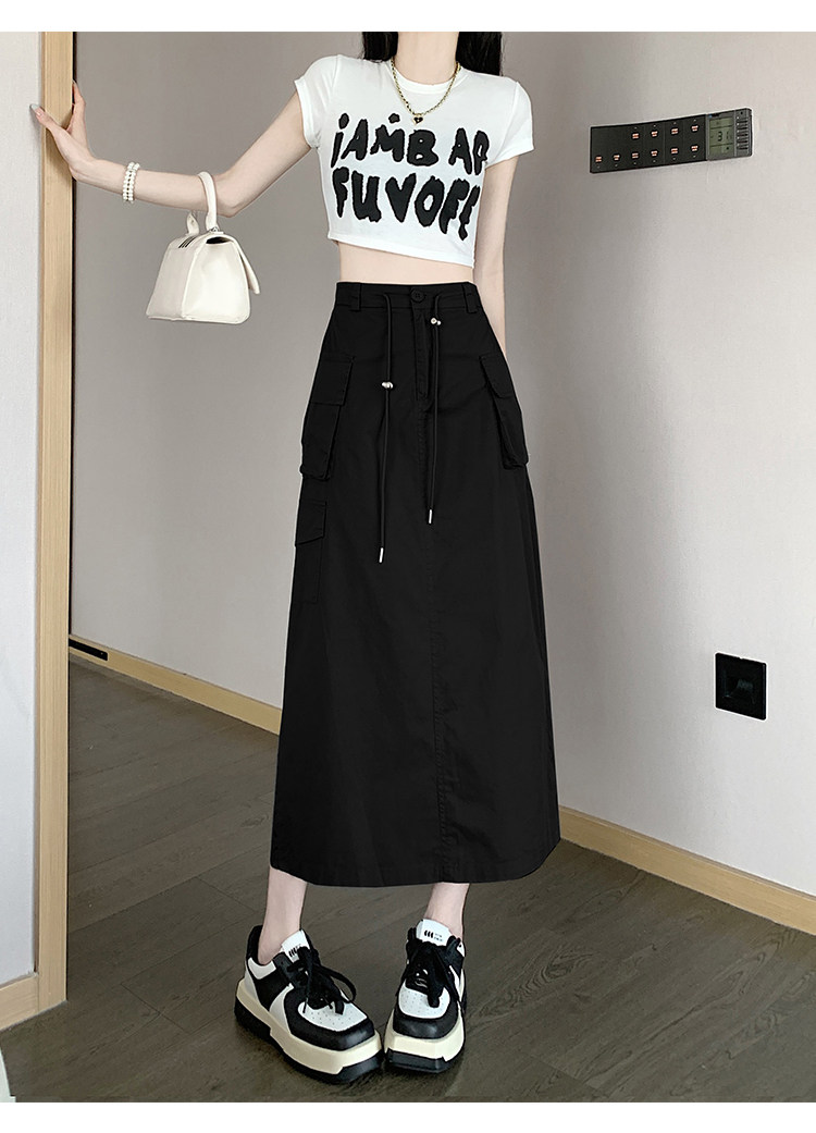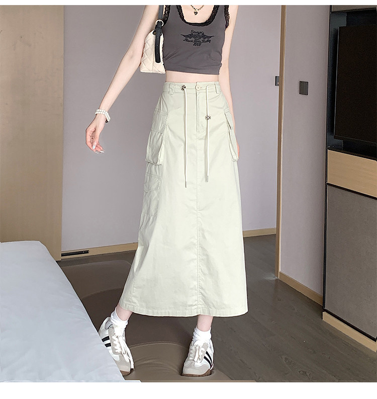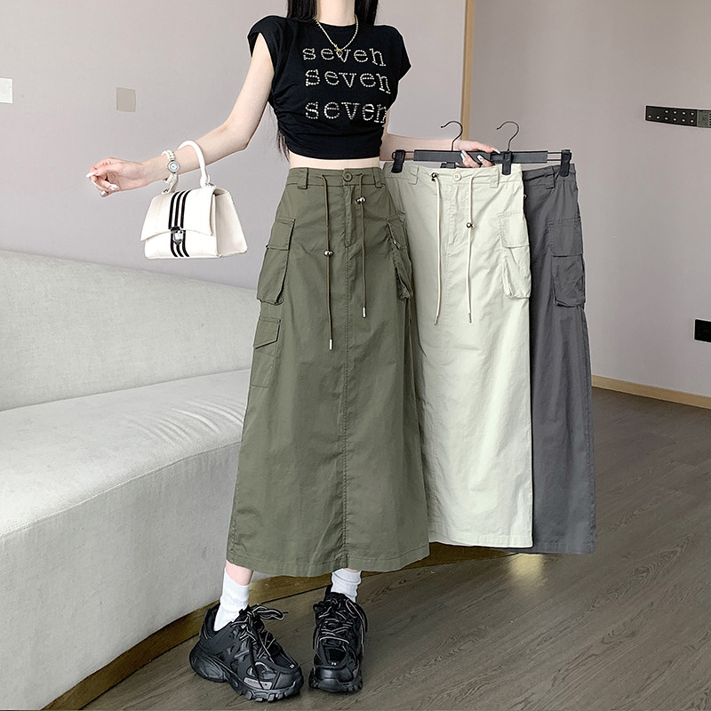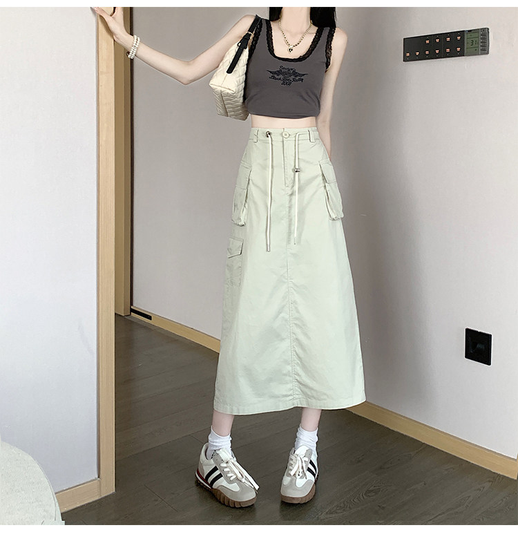 Ретро летняя длинная юбка, в американском стиле, высокая талия, на шнурках, А-силуэт, средней длины