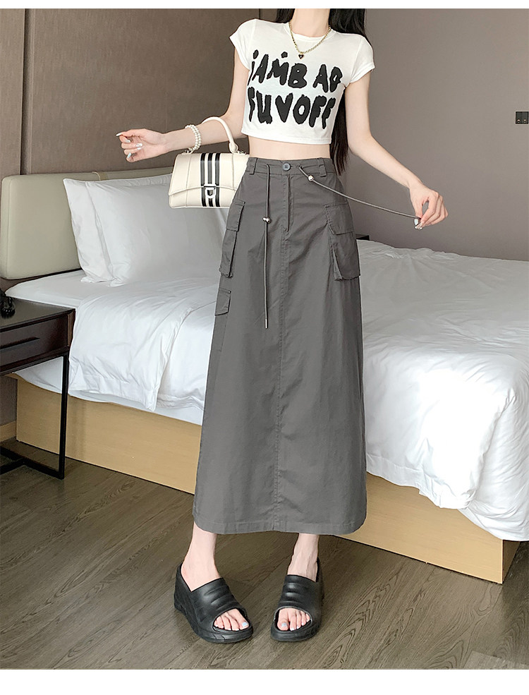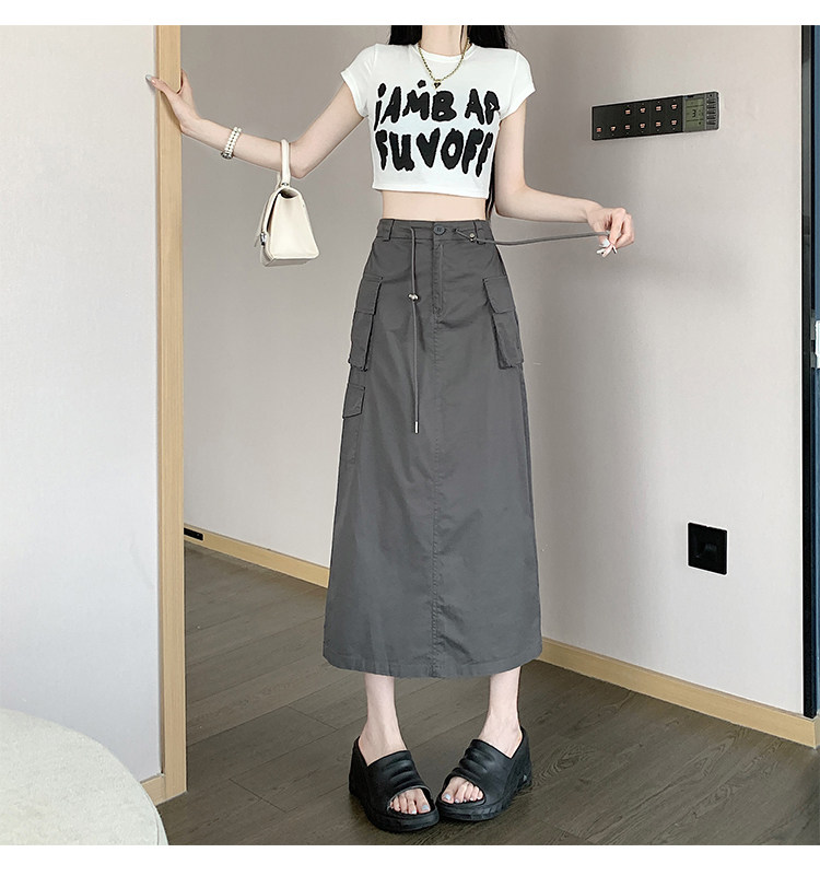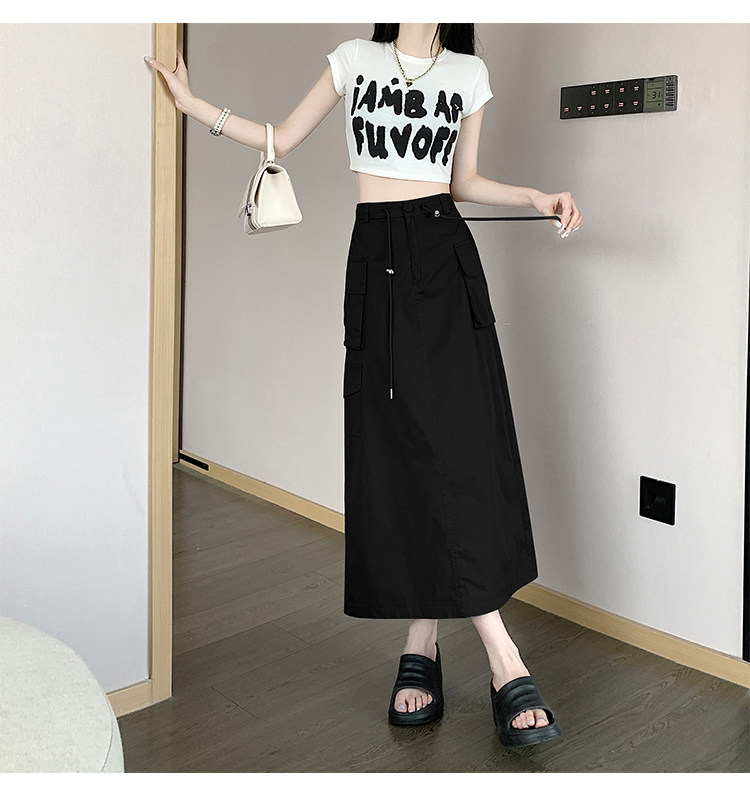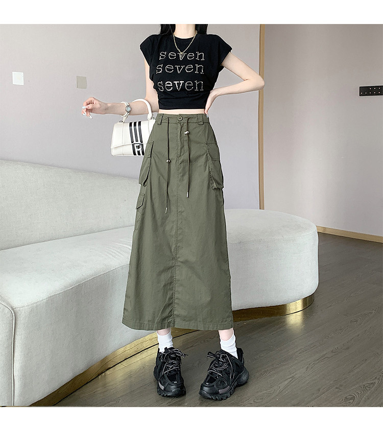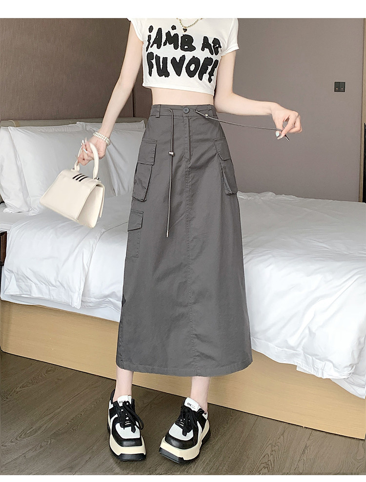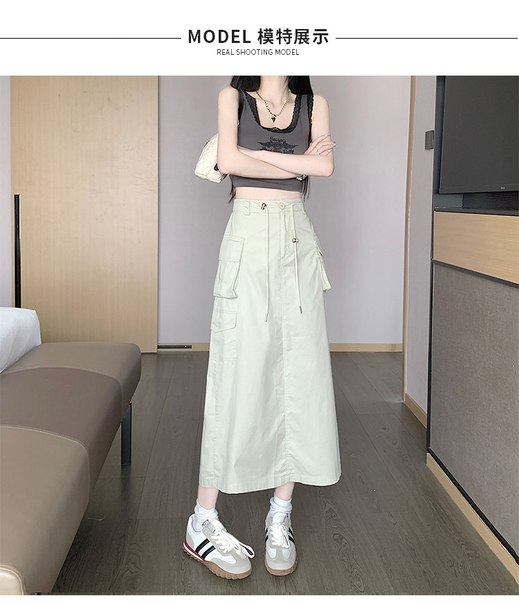 Ретро летняя длинная юбка, в американском стиле, высокая талия, на шнурках, А-силуэт, средней длины