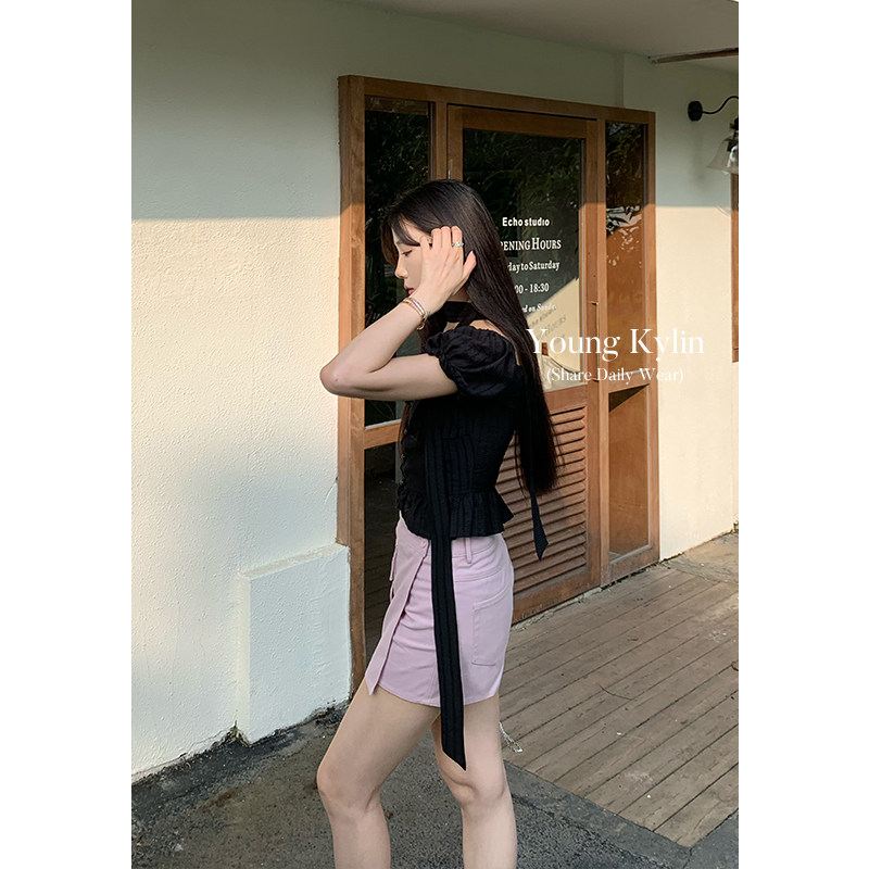 Весенняя летняя ретро дизайнерская юбка, высокая талия, с акцентом на бедрах