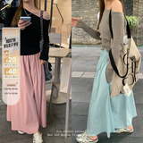 Синяя длинная осенняя юбка, средней длины, эластичная талия