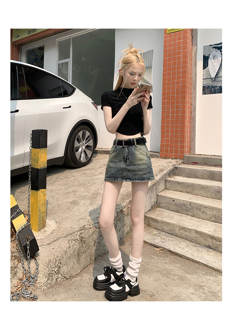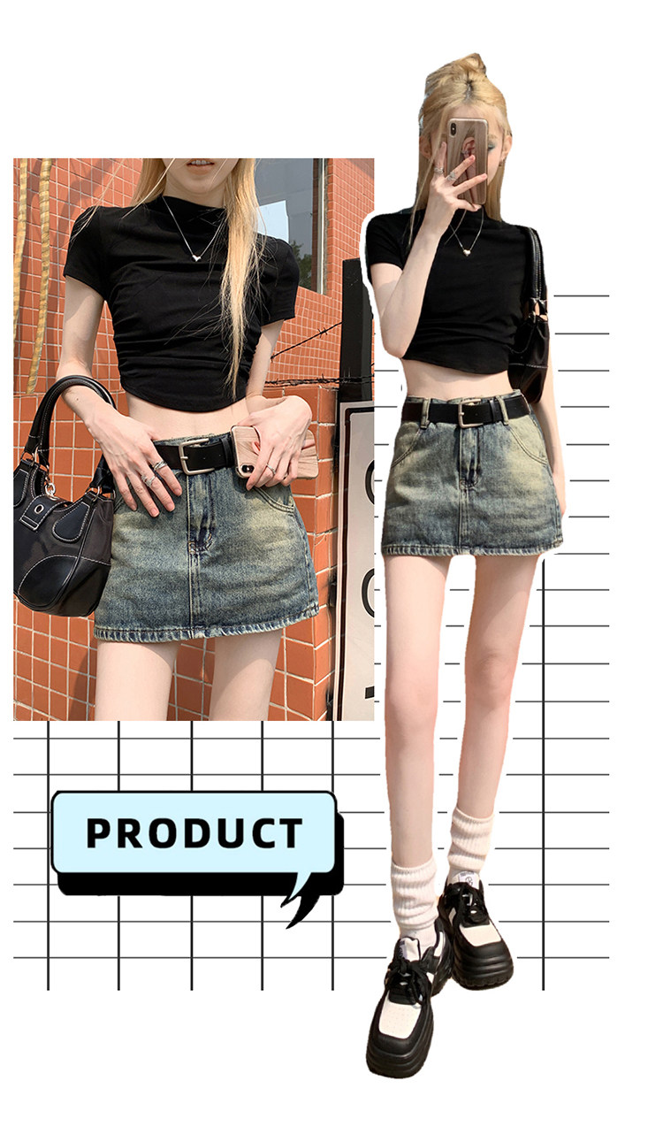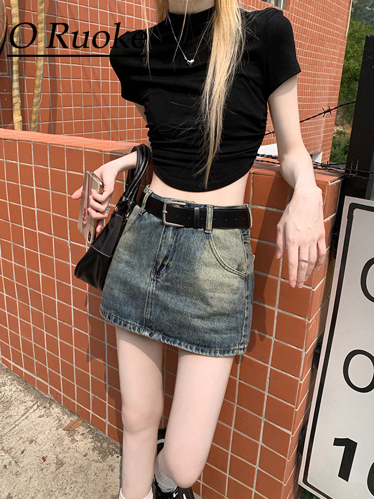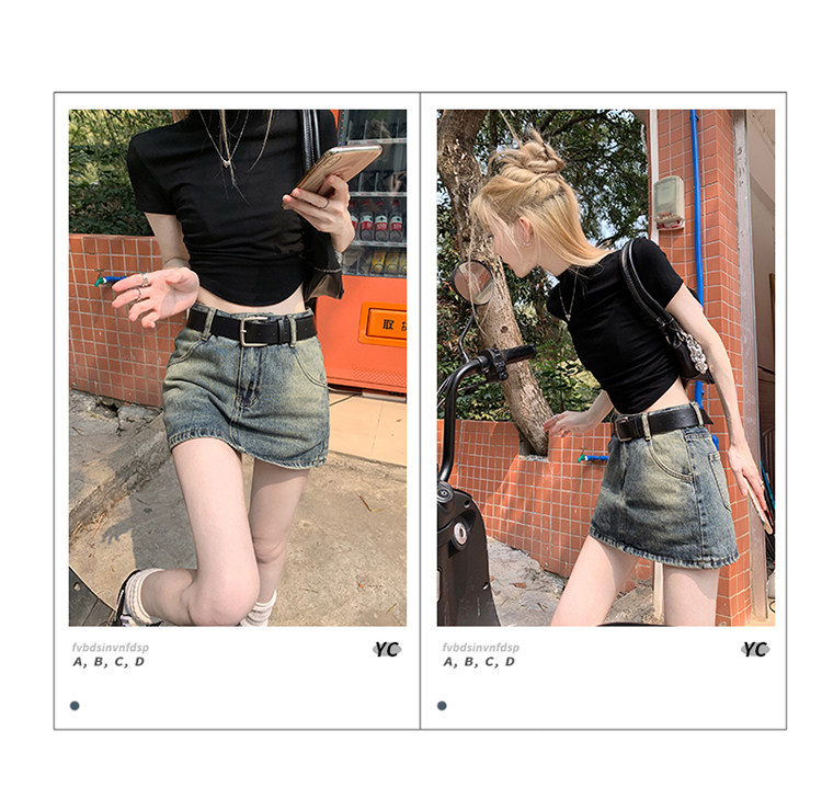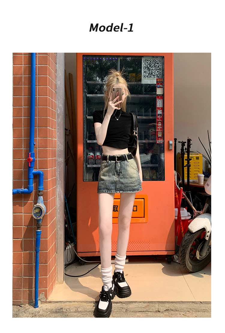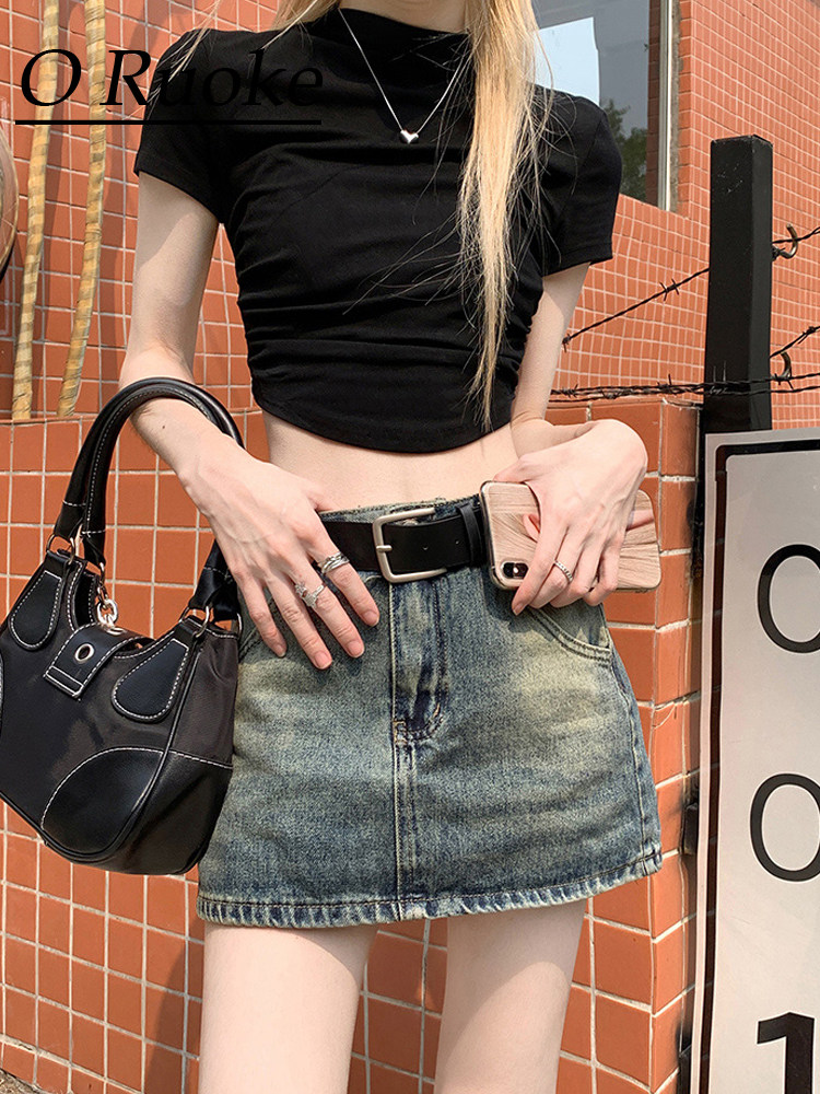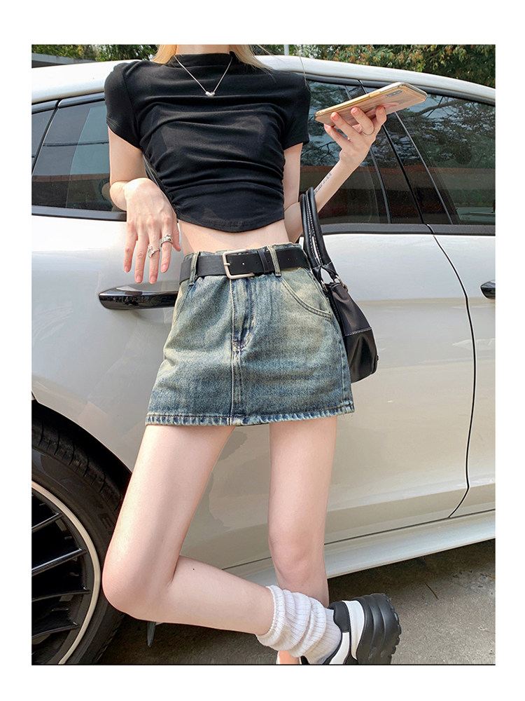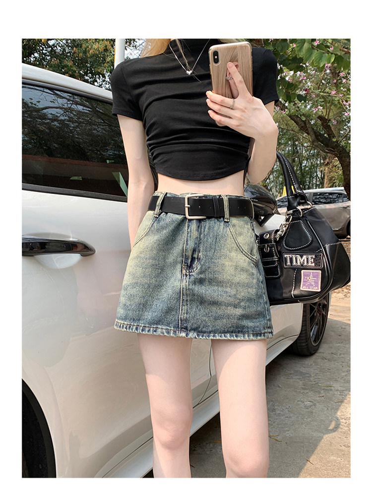 Ретро летняя приталенная юбка, джинсовая мини-юбка, в американском стиле, А-силуэт, высокая талия, с акцентом на бедрах
