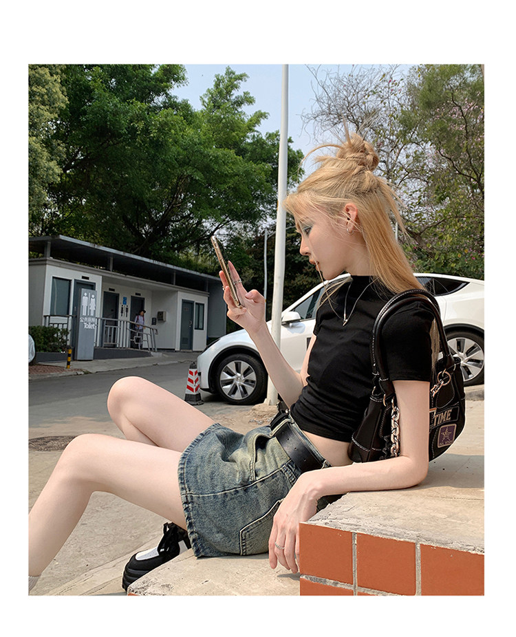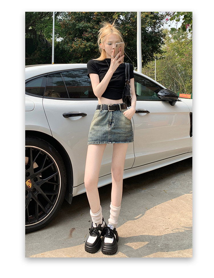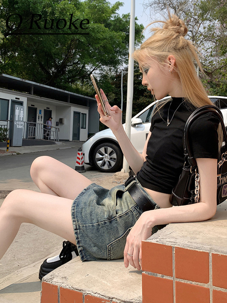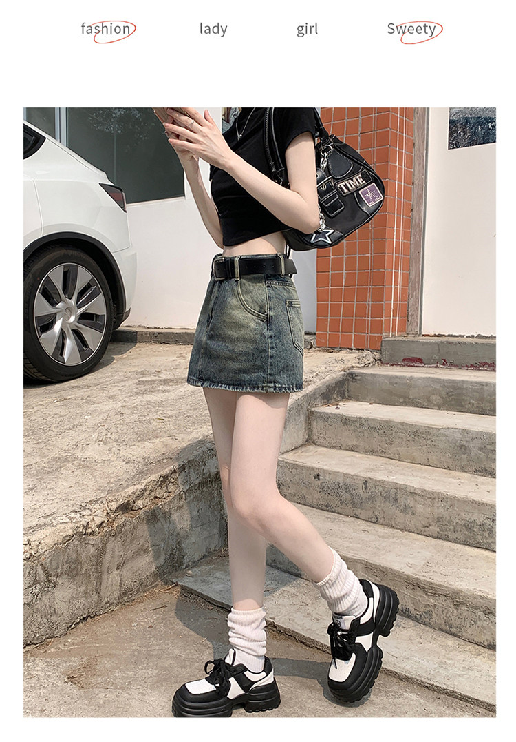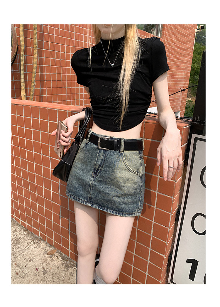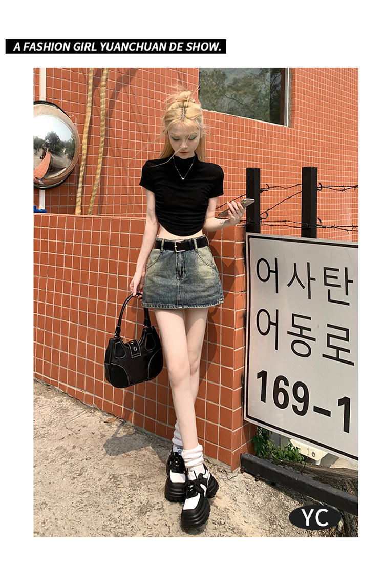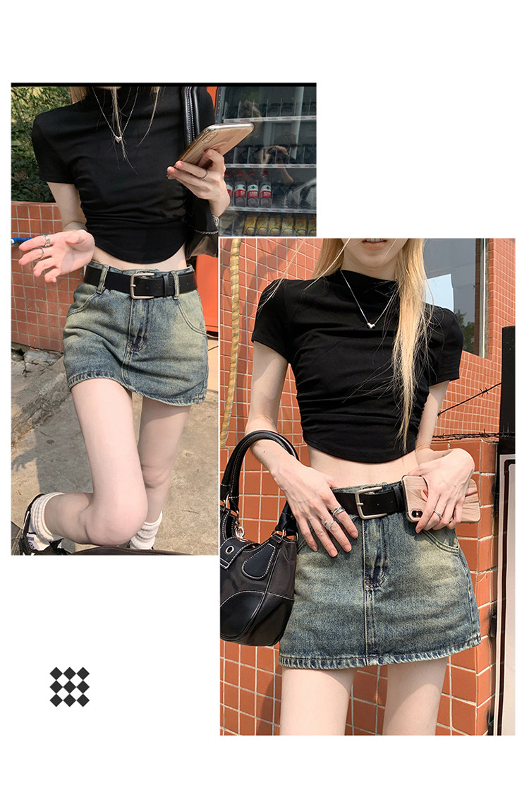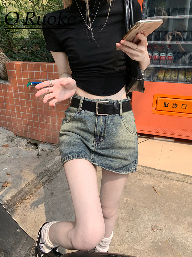 Ретро летняя приталенная юбка, джинсовая мини-юбка, в американском стиле, А-силуэт, высокая талия, с акцентом на бедрах
