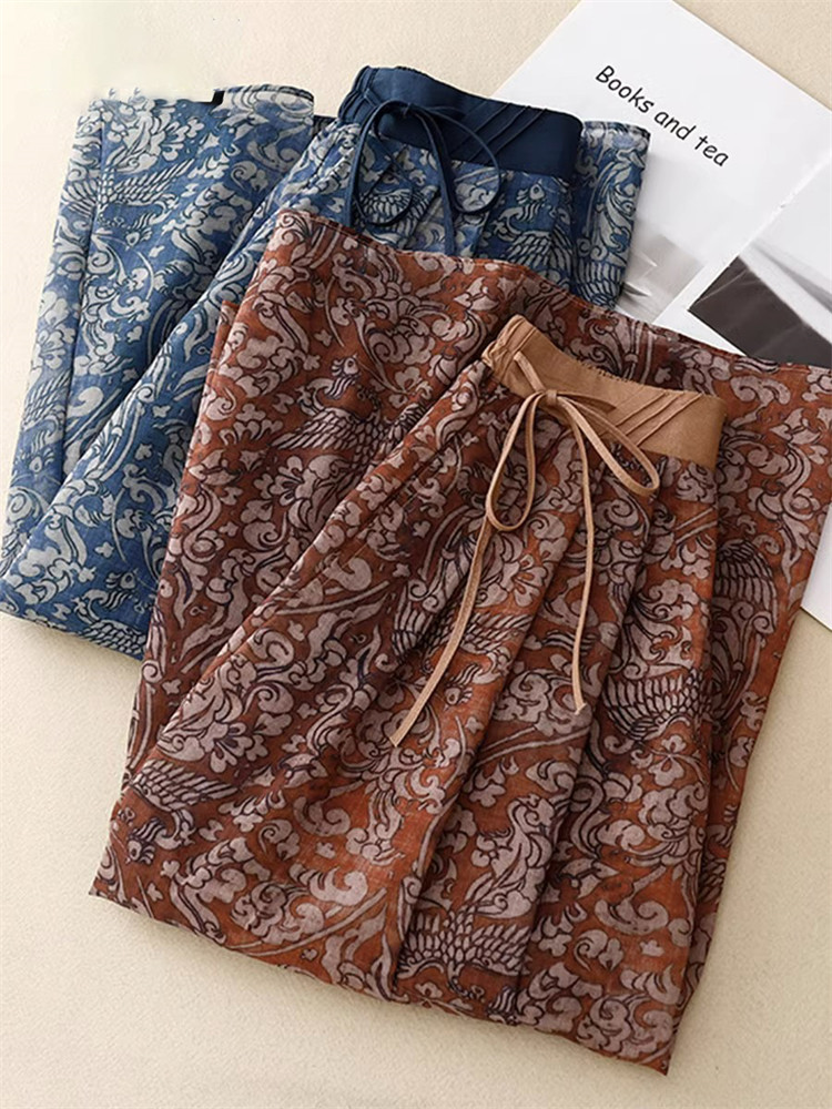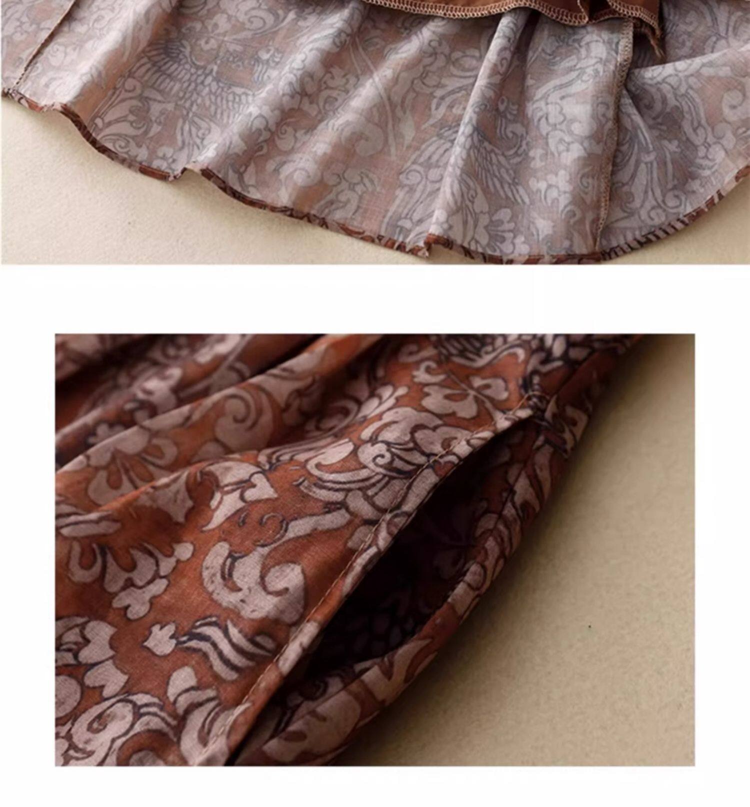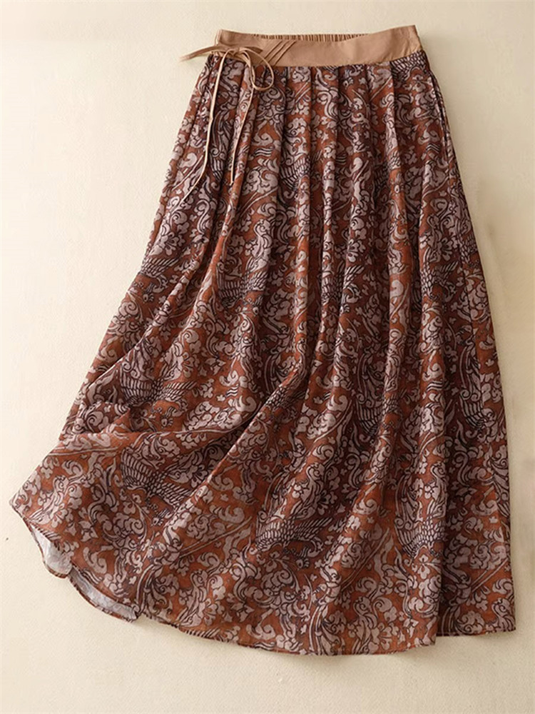 Элитная юбка, летняя летняя одежда для матери, цветочный принт, из хлопка и льна