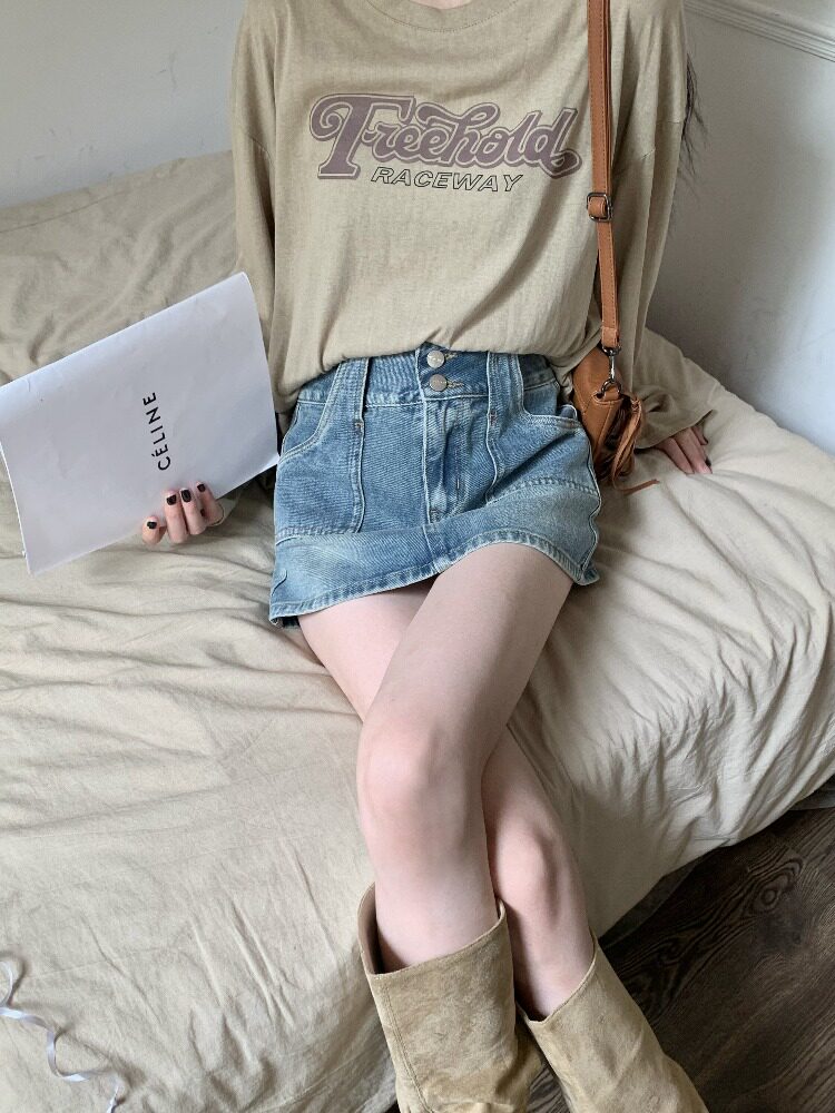 Ретро джинсовая юбка, летние штаны, мини-юбка, большой размер, А-силуэт, высокая талия, с акцентом на бедрах