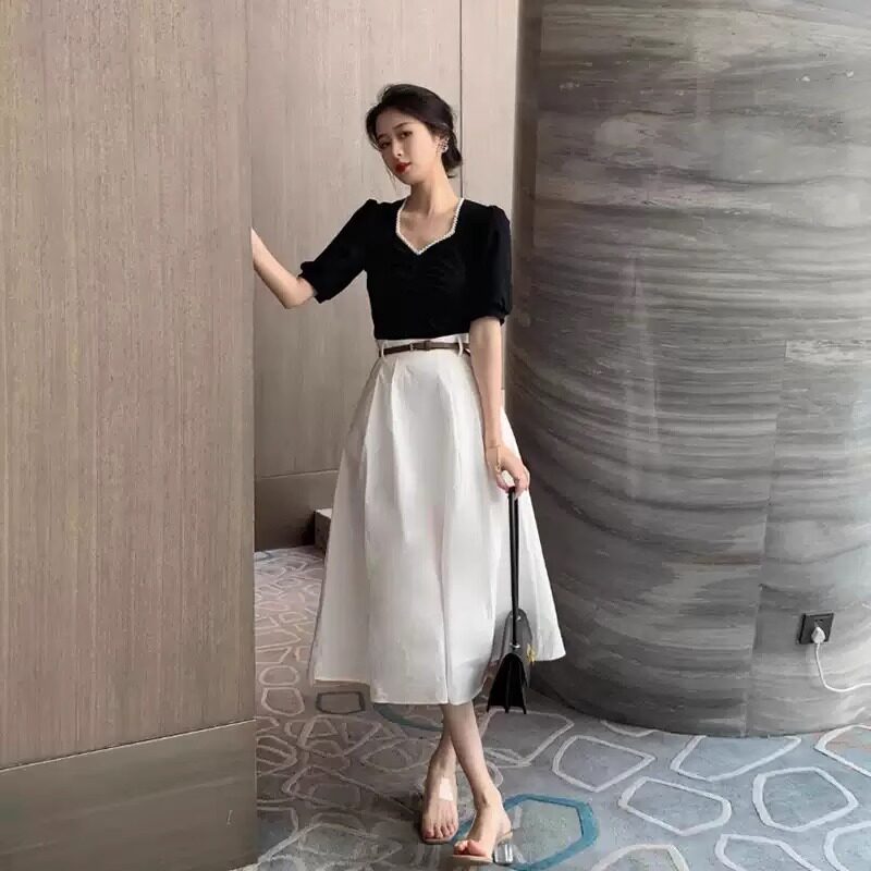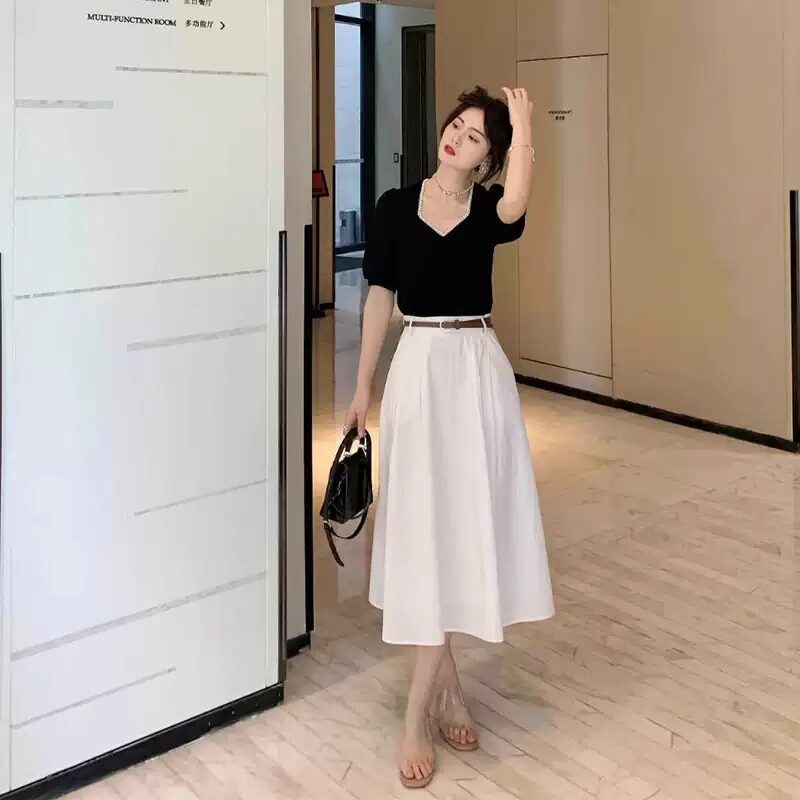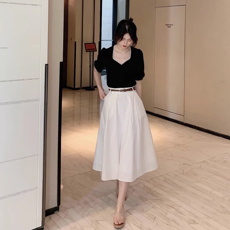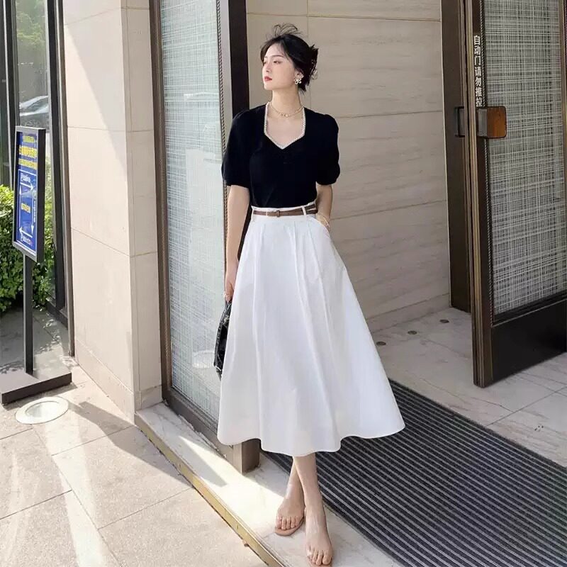 Белая тонкая длинная юбка, подходит для подростков, высокая талия, А-силуэт