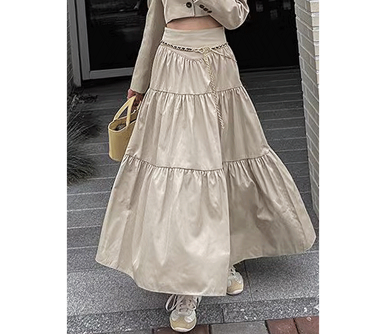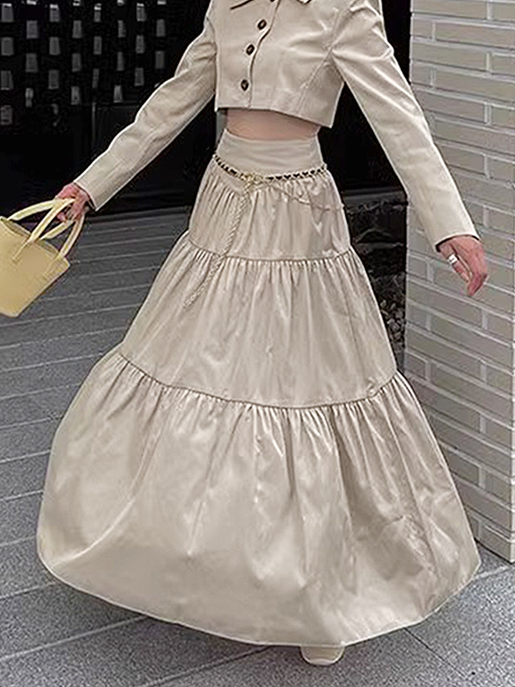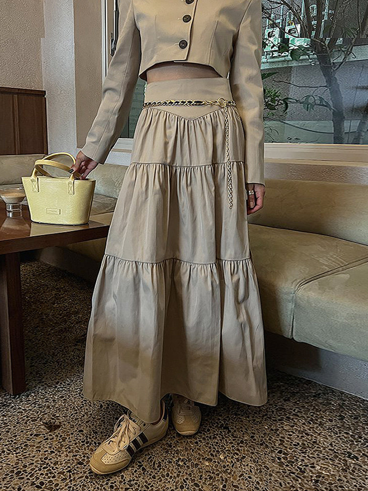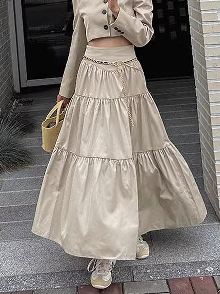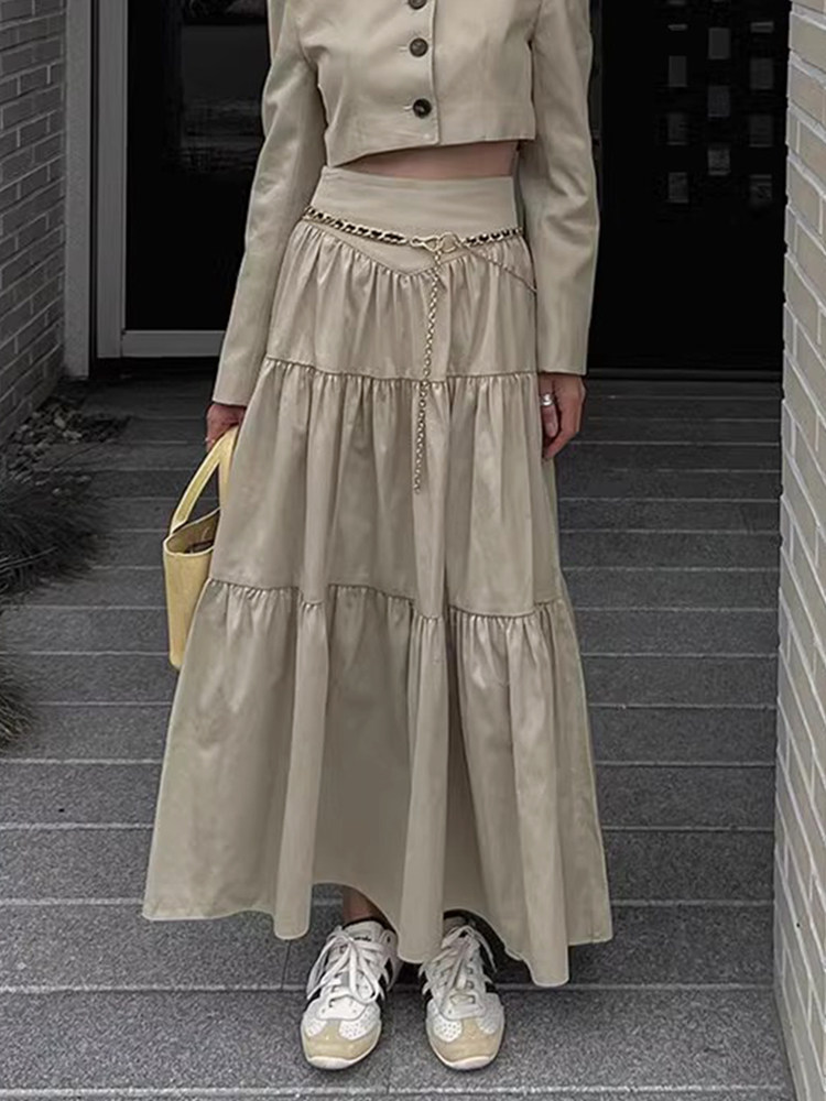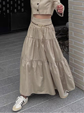 Летняя однотонная длинная юбка для отдыха, в корейском стиле, высокая талия, оверсайз, А-силуэт