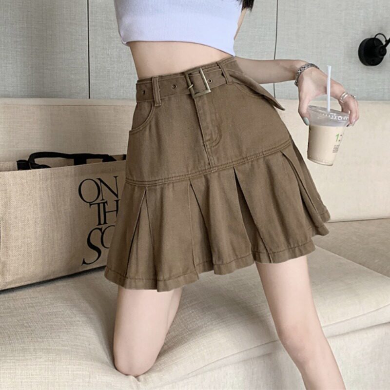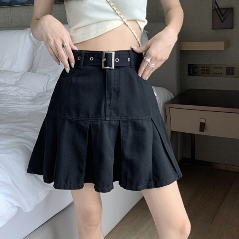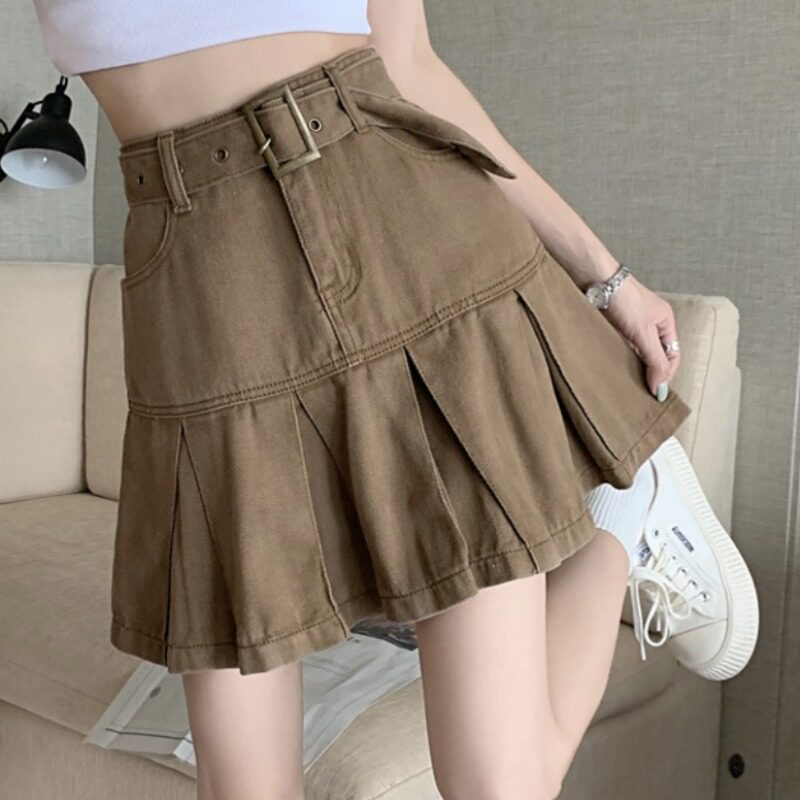 Джинсовая летняя юбка в складку, мини-юбка, плиссированная юбка, большой размер, свободный прямой крой, высокая талия, А-силуэт
