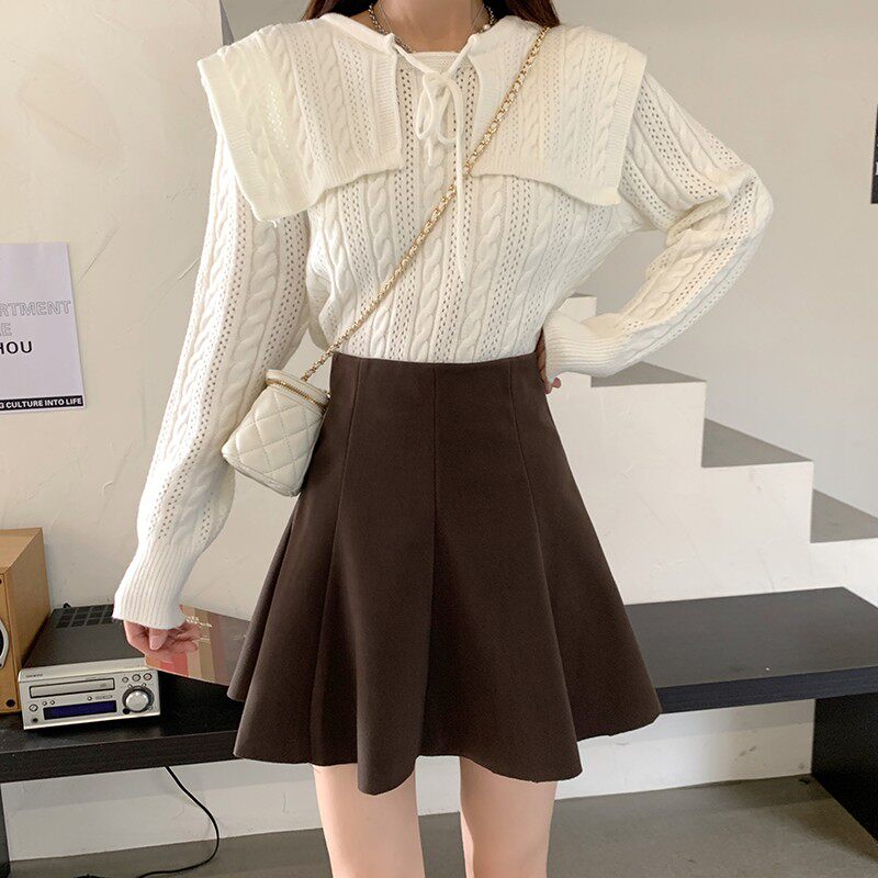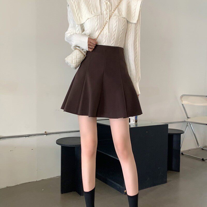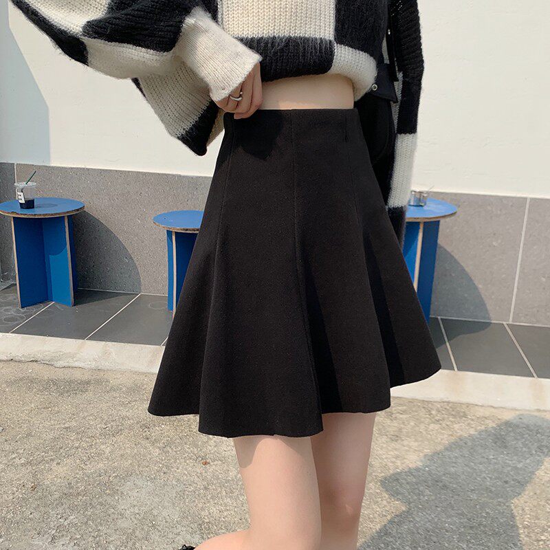 Приталенная демисезонная шерстяная юбка в складку, мини-юбка, большой размер, высокая талия, А-силуэт