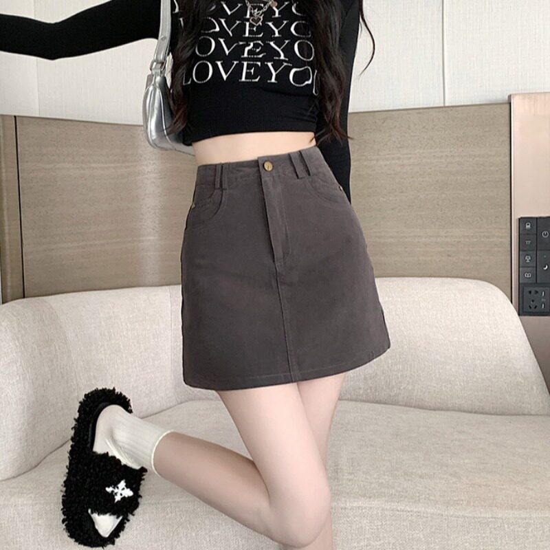 Осенняя приталенная универсальная джинсовая юбка, подходит для подростков, высокая талия, А-силуэт