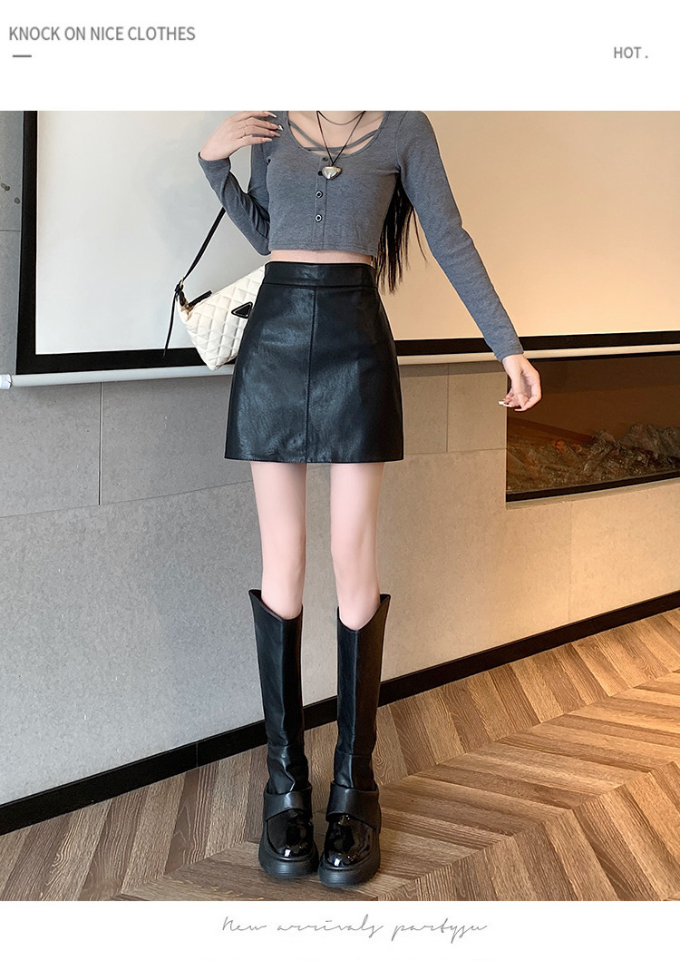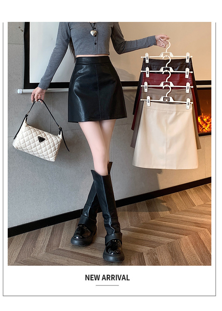 Полиуретановая осенняя юбка, приталенная мини-юбка для отдыха, высокая талия, по фигуре, подходит для подростков, А-силуэт