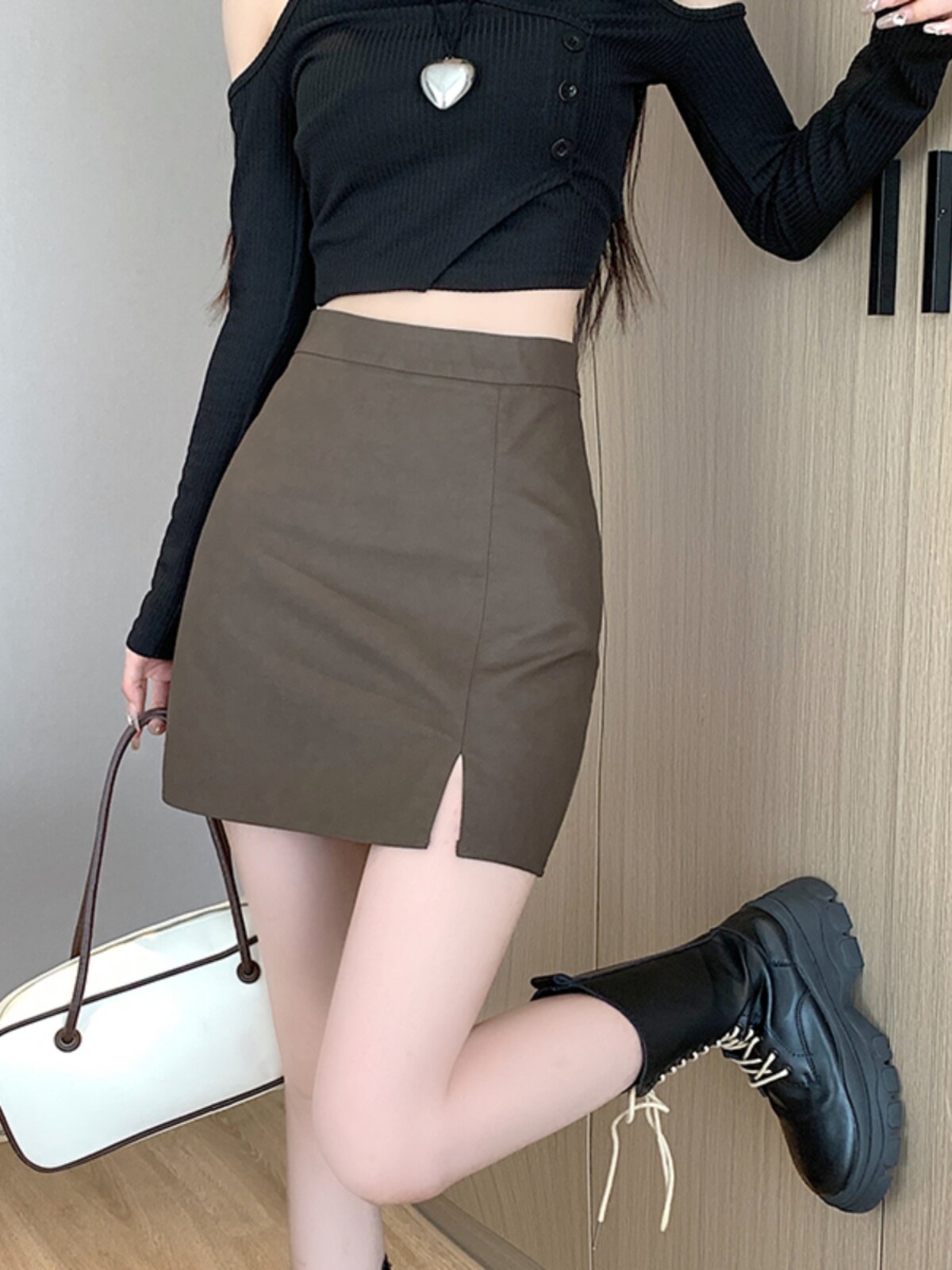 Матовая полиуретановая приталенная юбка, мини-юбка, высокая талия, с акцентом на бедрах, подходит для подростков, А-силуэт
