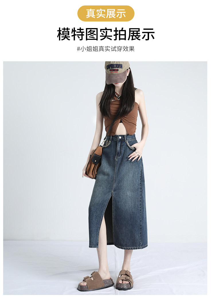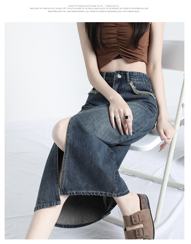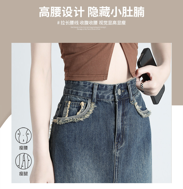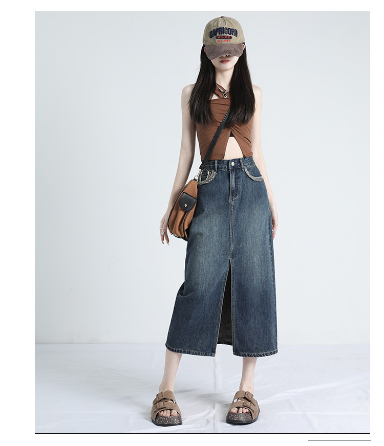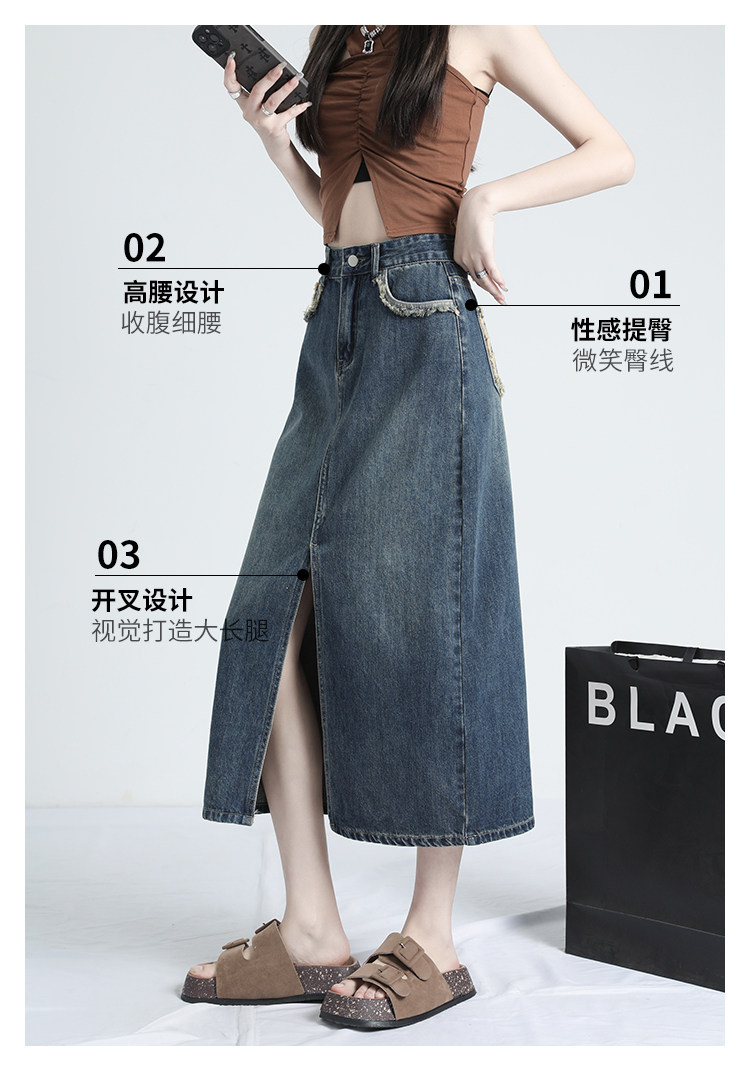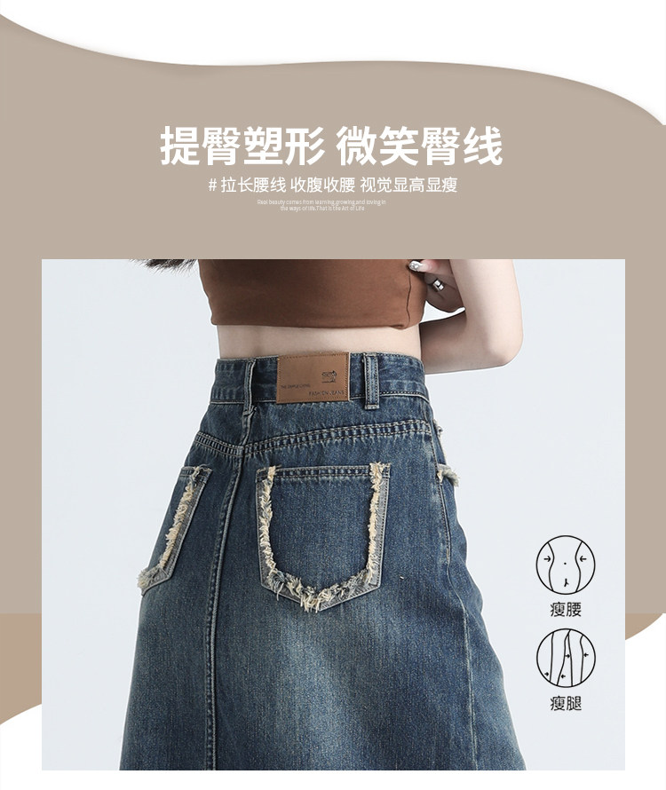 Ретро осенняя джинсовая юбка, дизайнерская длинная юбка, высокая талия, тренд сезона, с акцентом на бедрах, средней длины