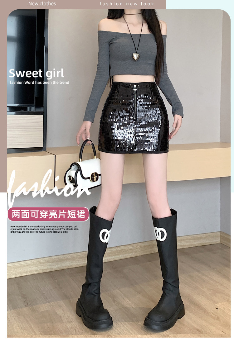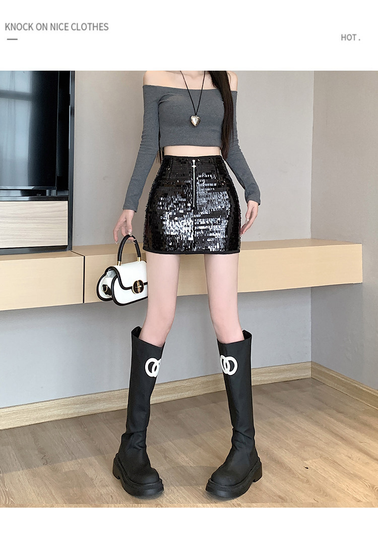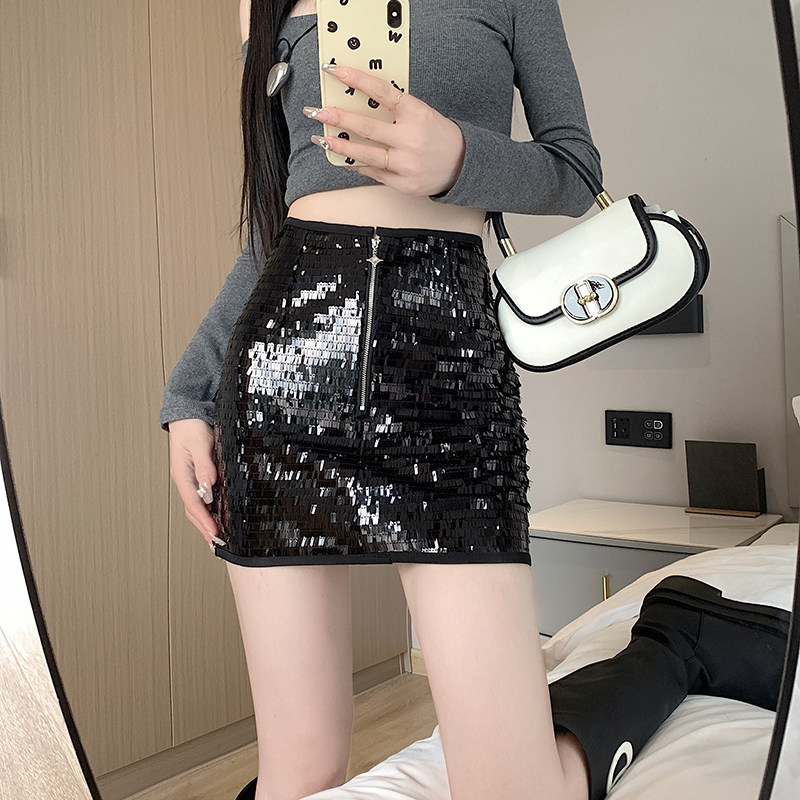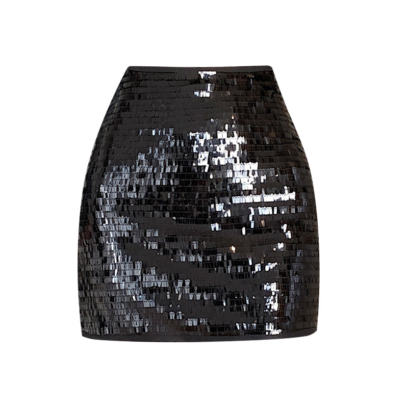 Черная блестящая осенняя приталенная юбка, сексуальная мини-юбка, высокая талия, с акцентом на бедрах, А-силуэт