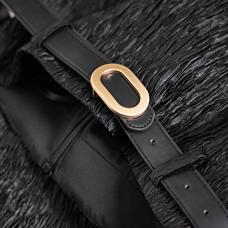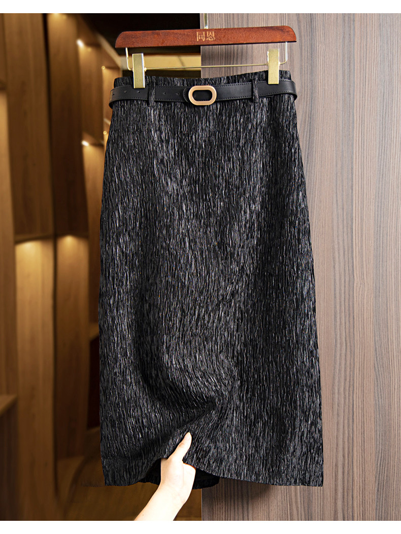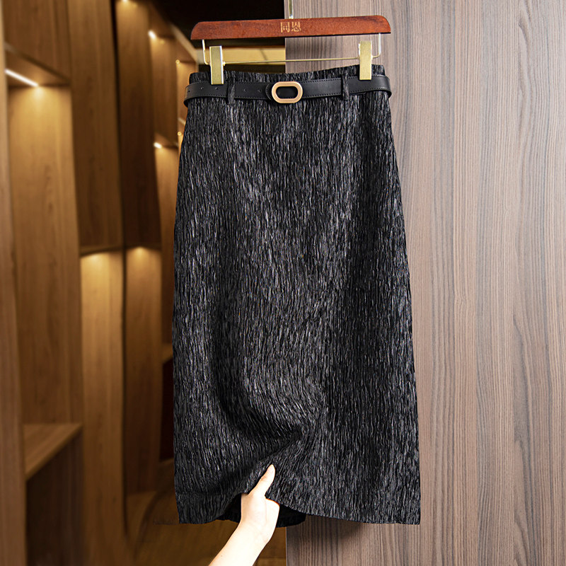 Черная осенняя женская длинная юбка, с акцентом на бедрах, городской стиль, высокая талия