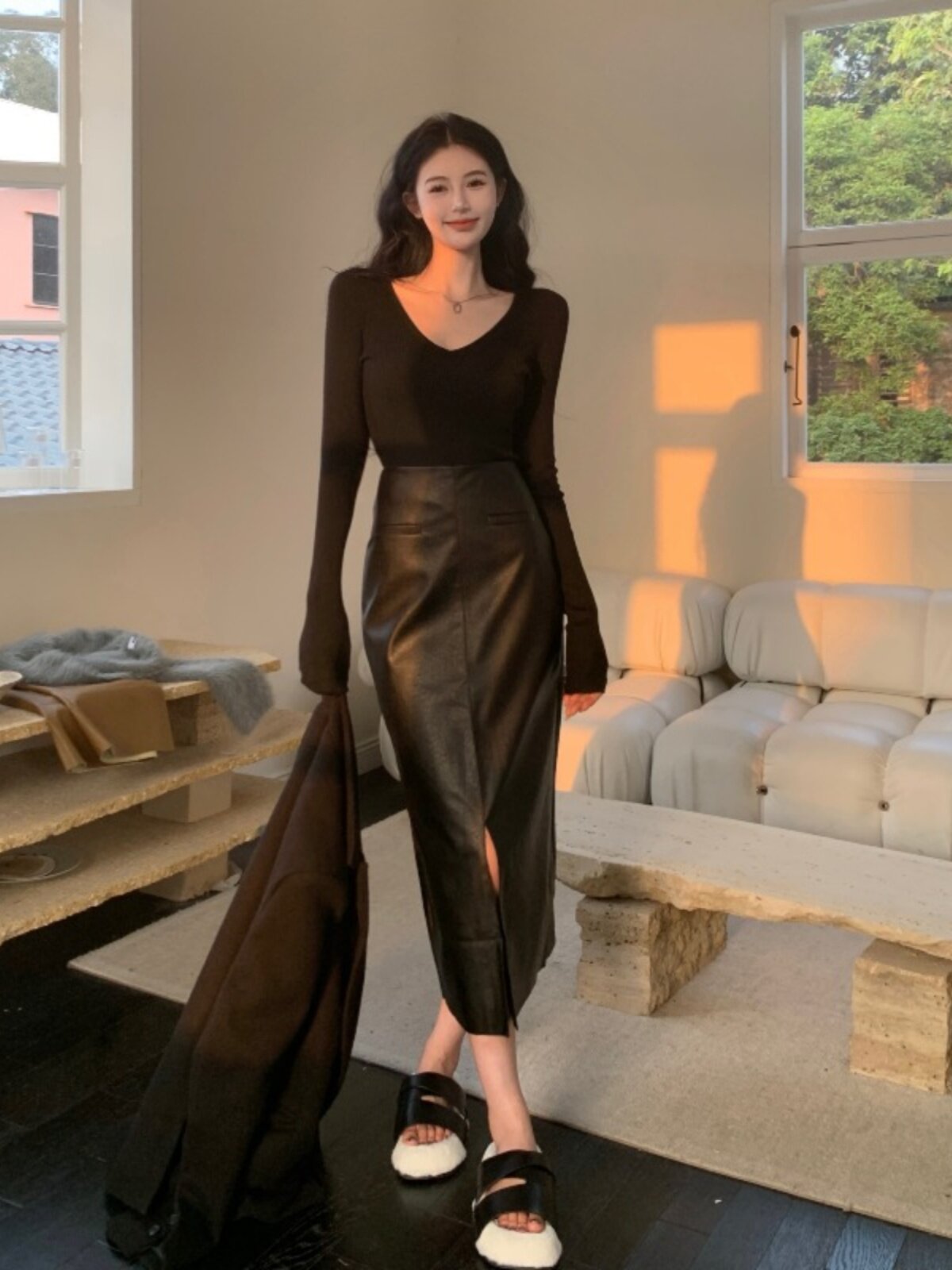| Цвет: | Черный топ, Черная юбка, Коричневая юбка |