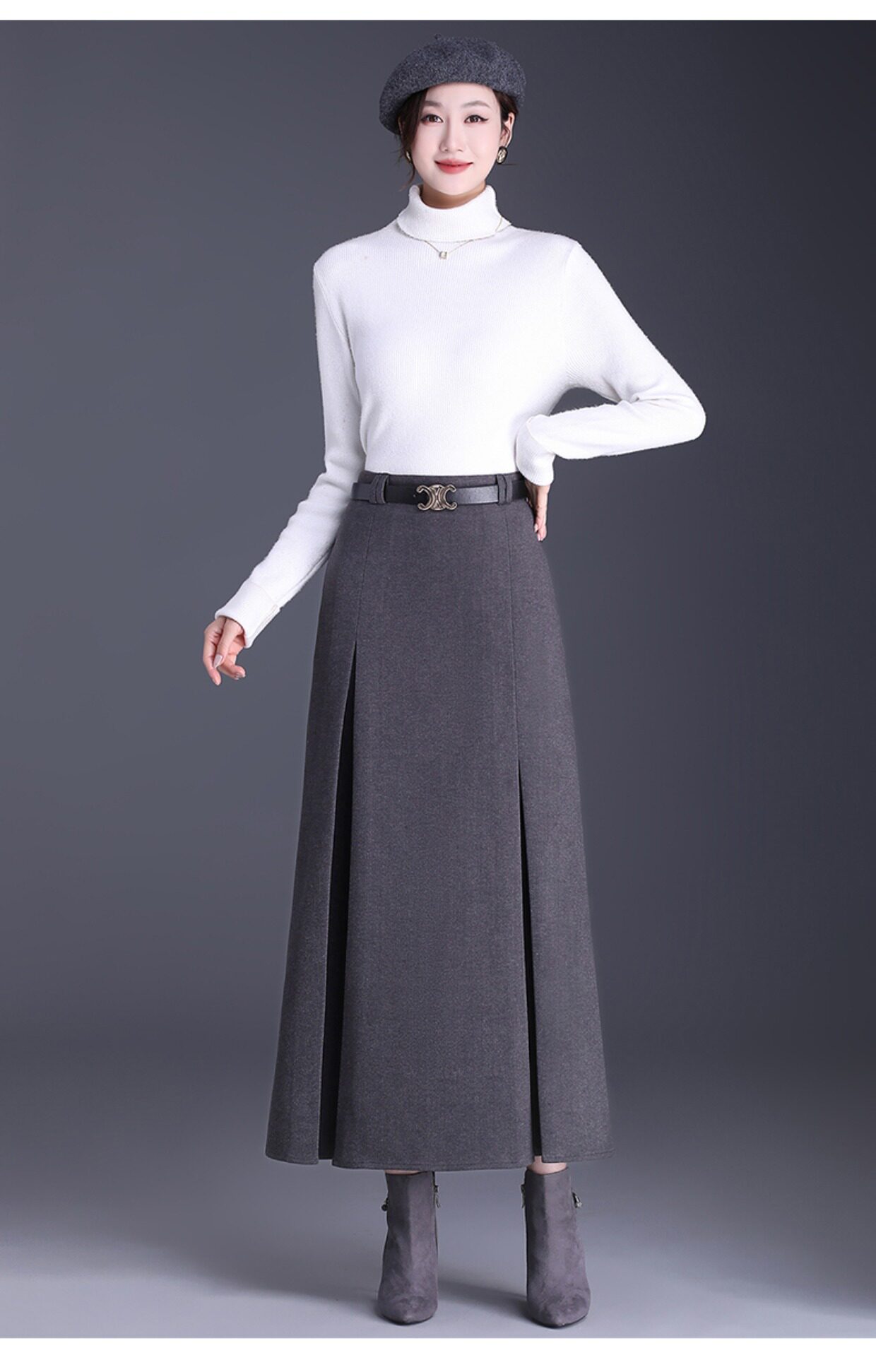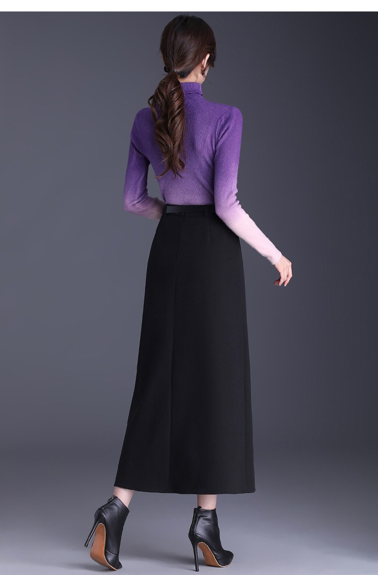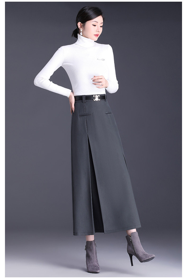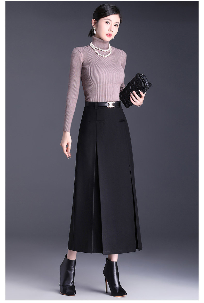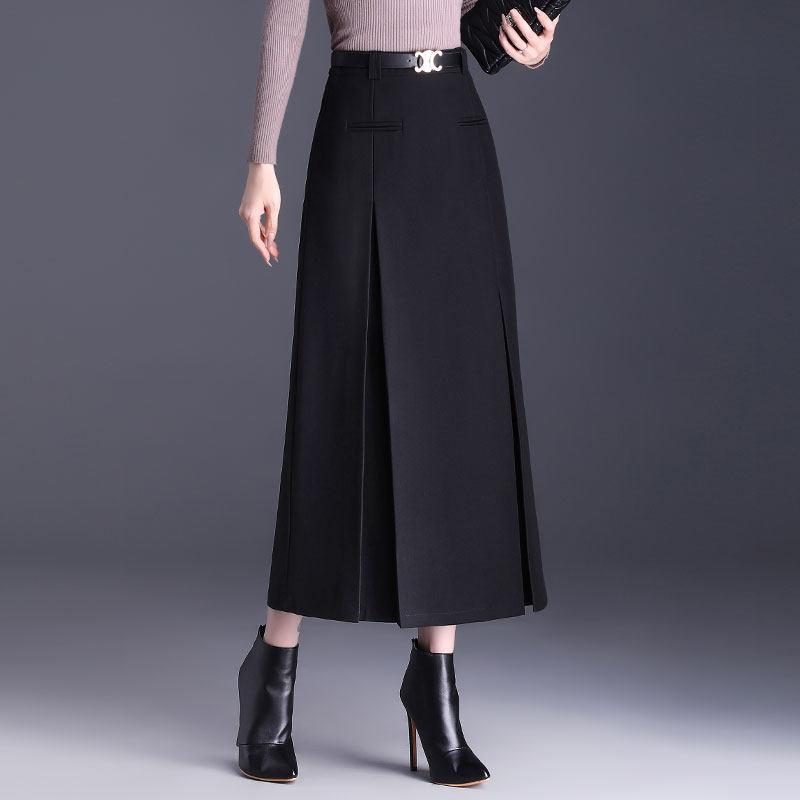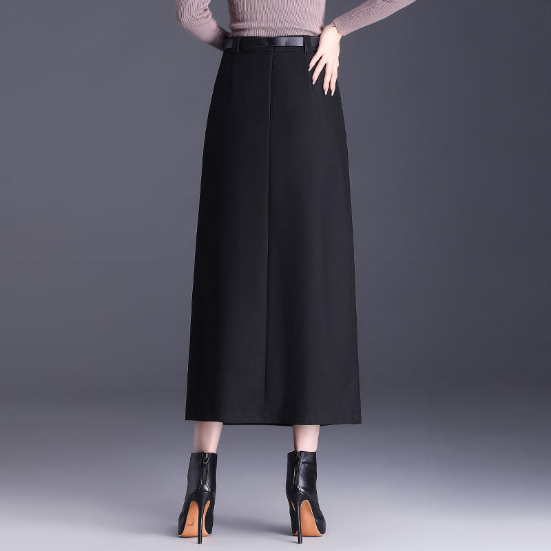 Приталенная весенняя осенняя черная шерстяная длинная юбка, 2025 года, свободный прямой крой, с акцентом на бедрах, высокая талия, большой размер