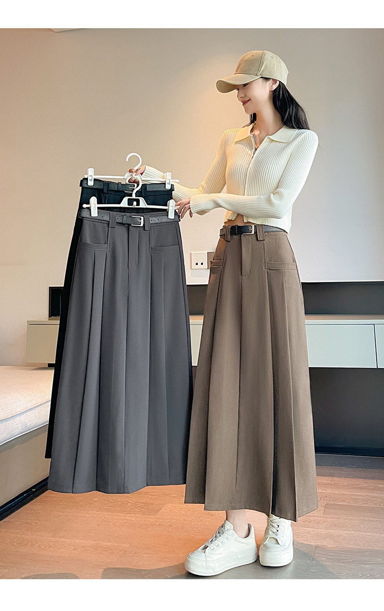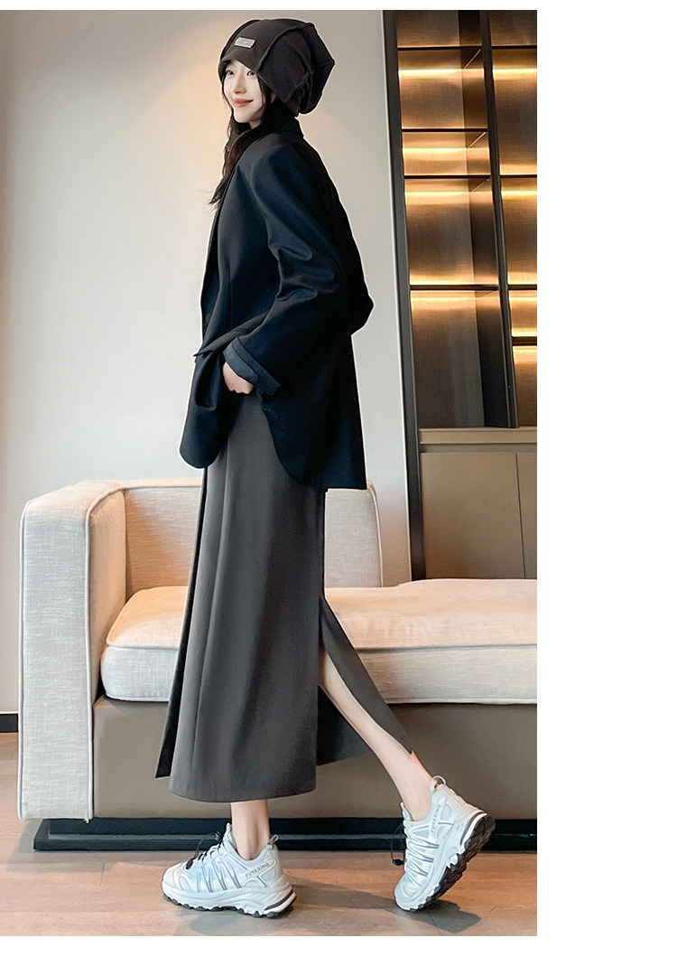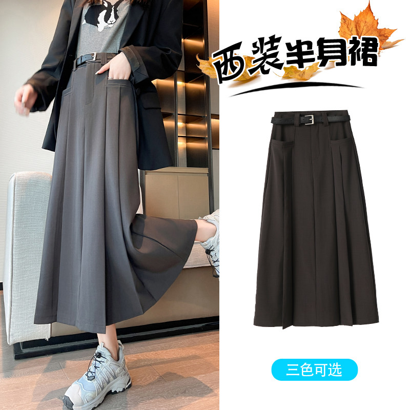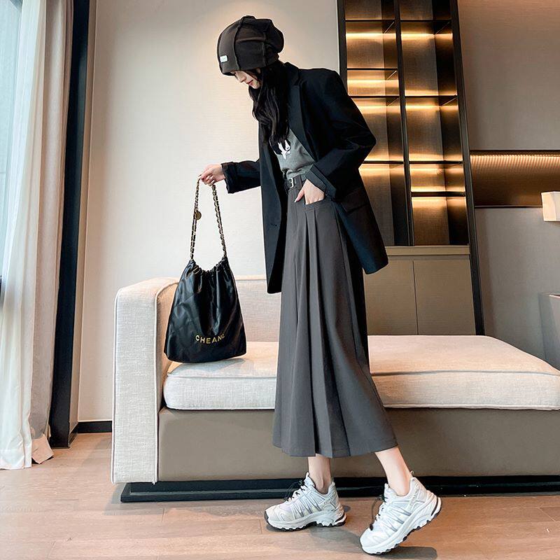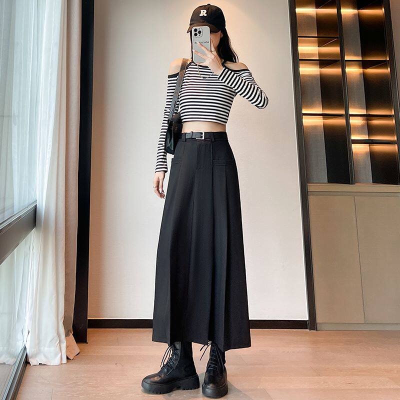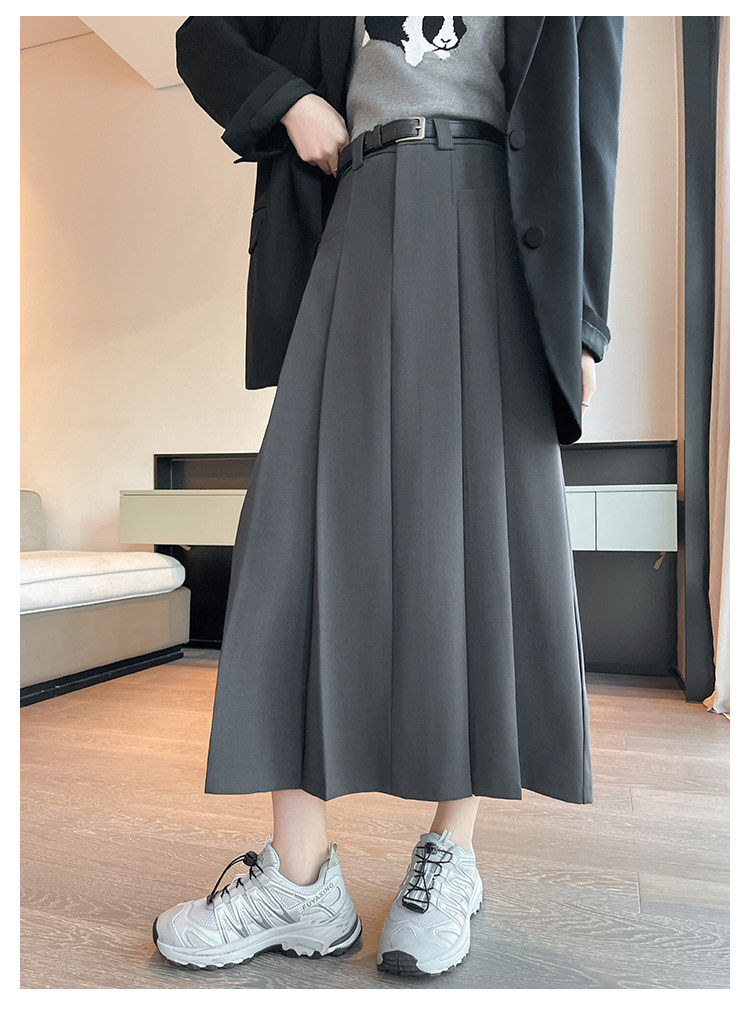 Пиджак классического кроя, осенняя длинная юбка в складку, плиссированная юбка, высокая талия, А-силуэт, длина миди