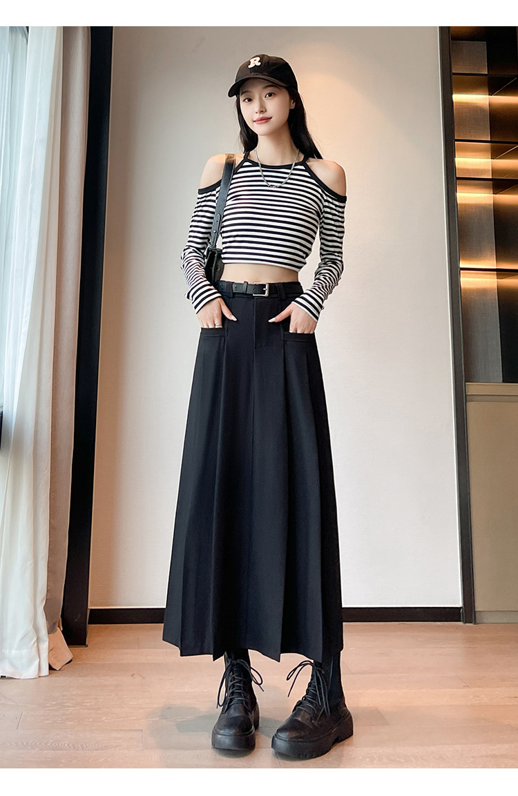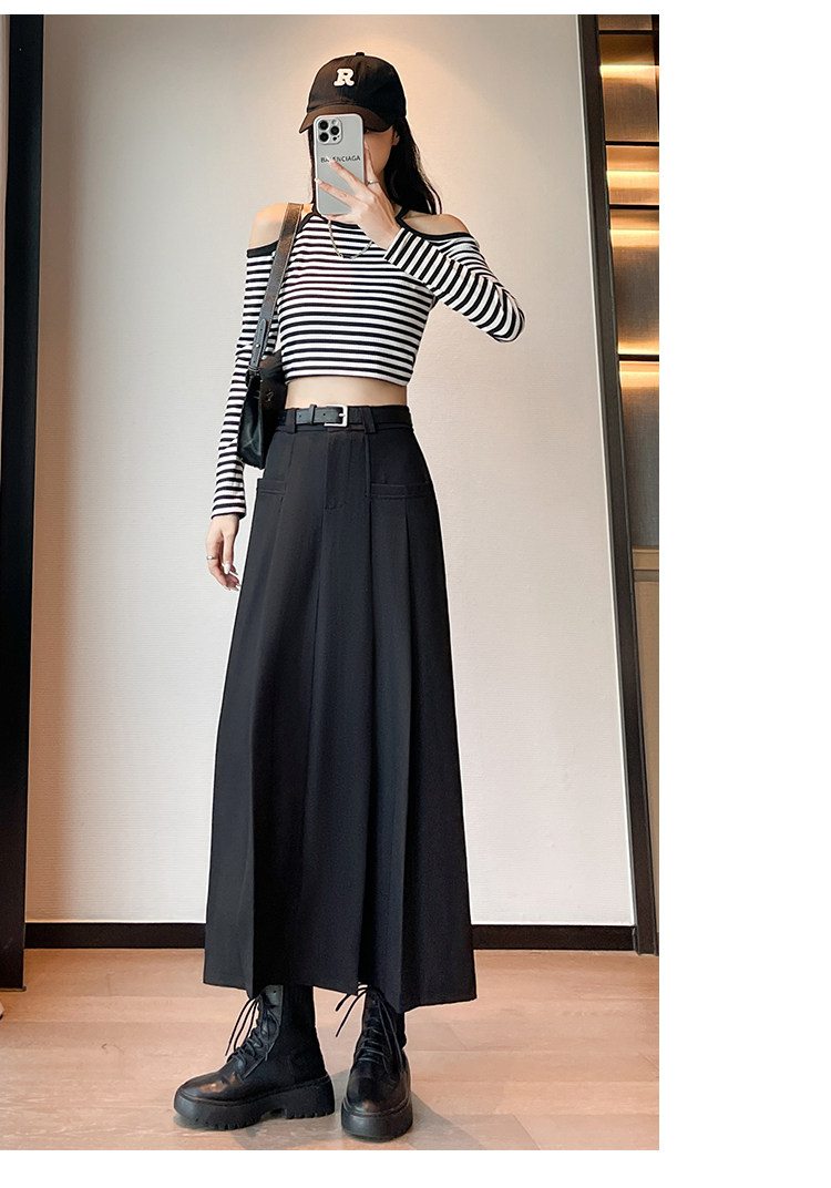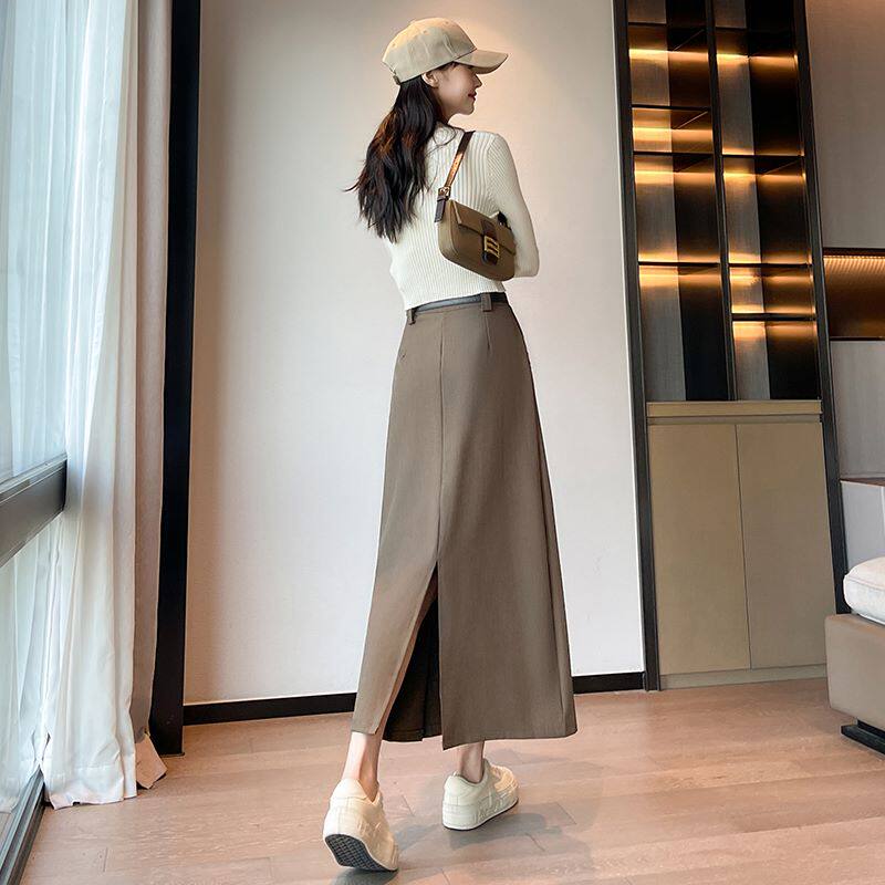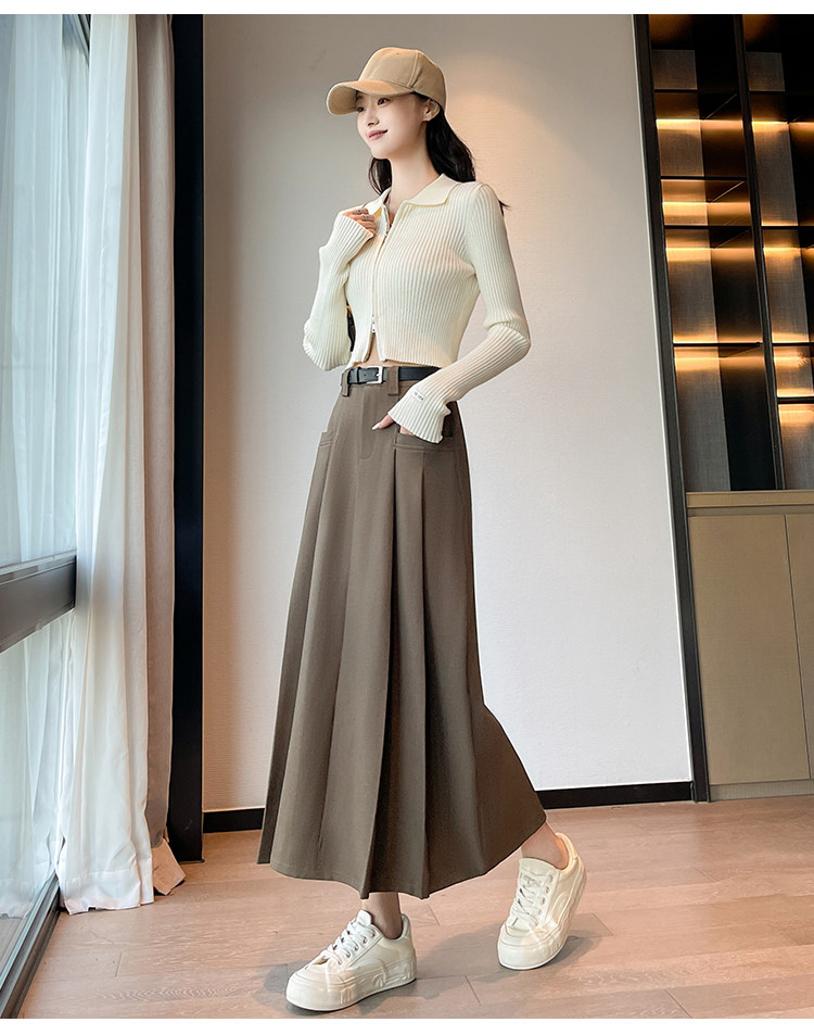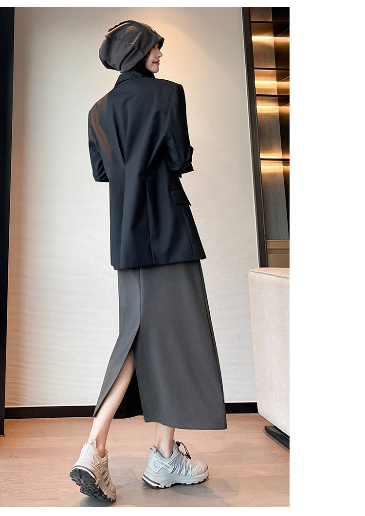 Пиджак классического кроя, осенняя длинная юбка в складку, плиссированная юбка, высокая талия, А-силуэт, длина миди