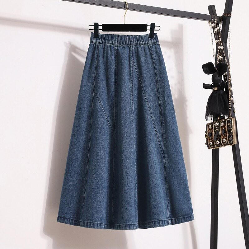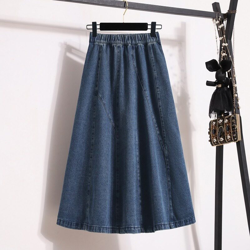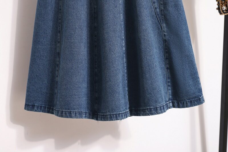 Осенняя длинная джинсовая юбка, большой размер, высокая талия, оверсайз, средней длины