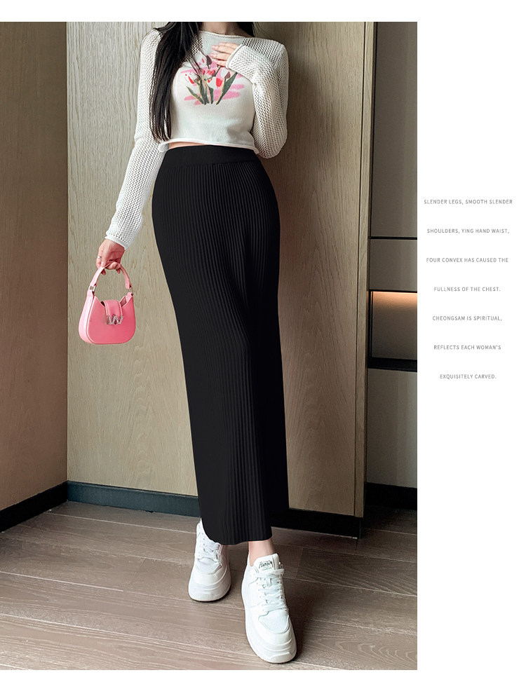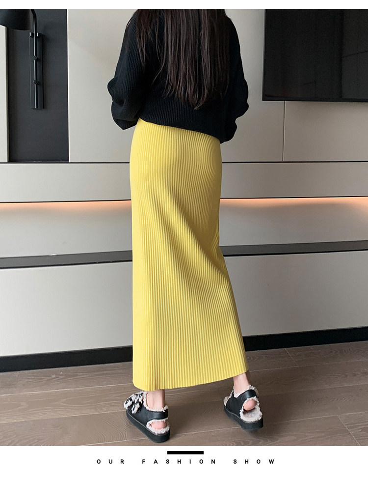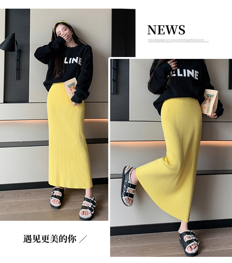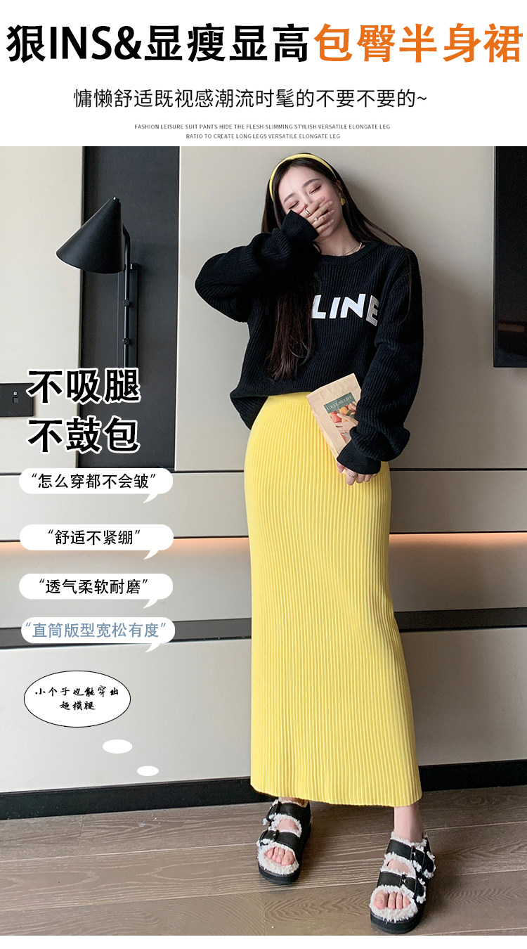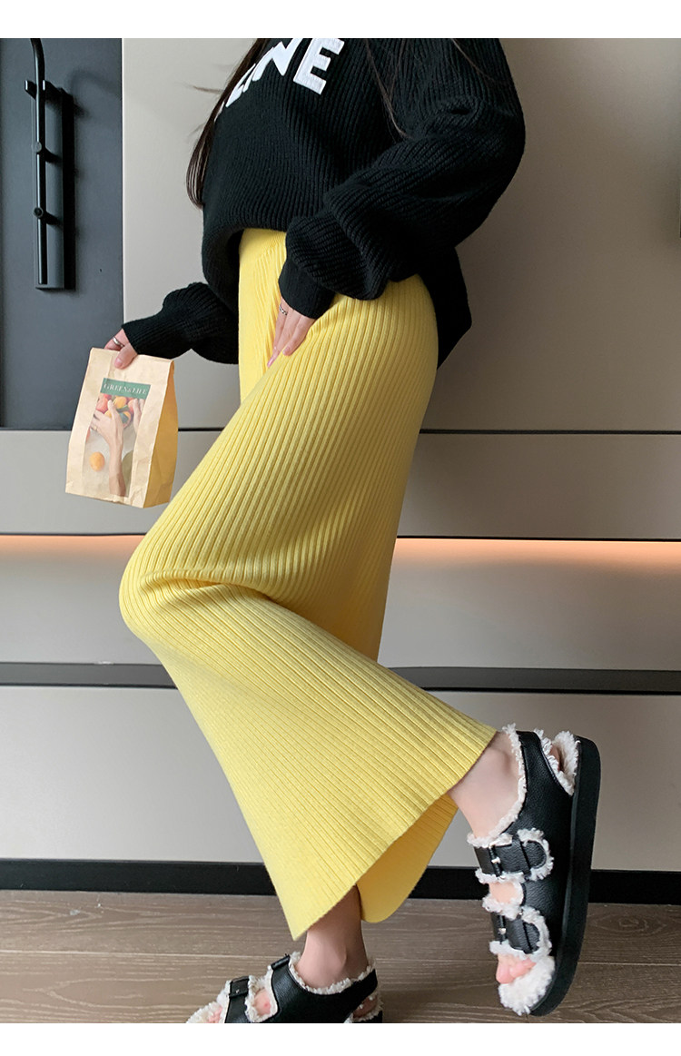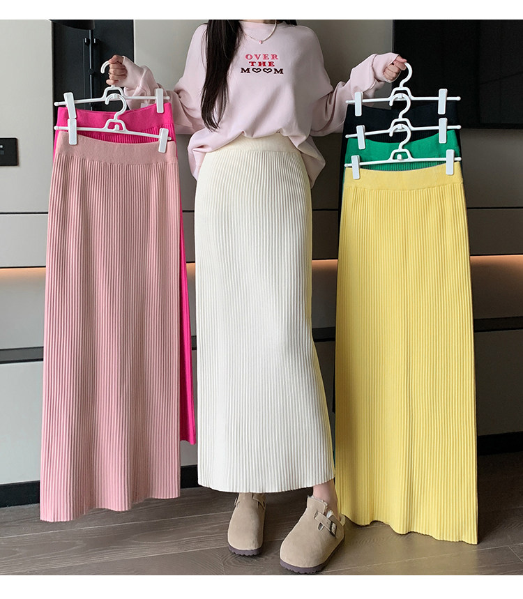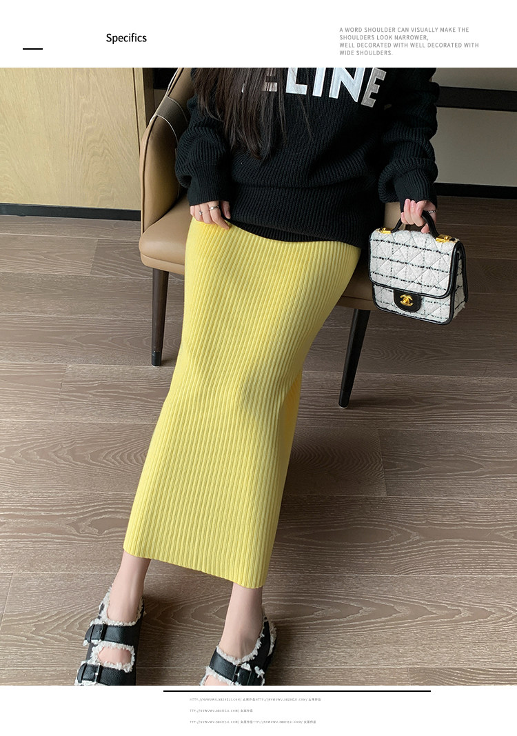 Трикотажная осенняя длинная шерстяная юбка, коллекция 2023, свободный прямой крой, с акцентом на бедрах, длина миди