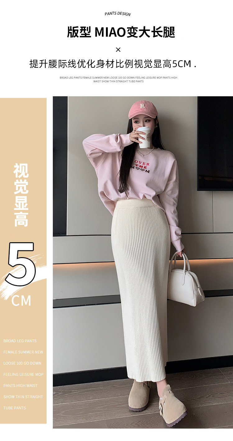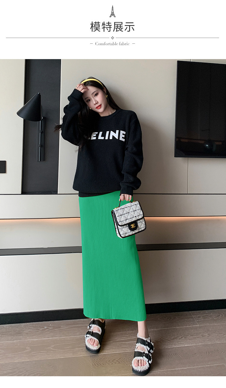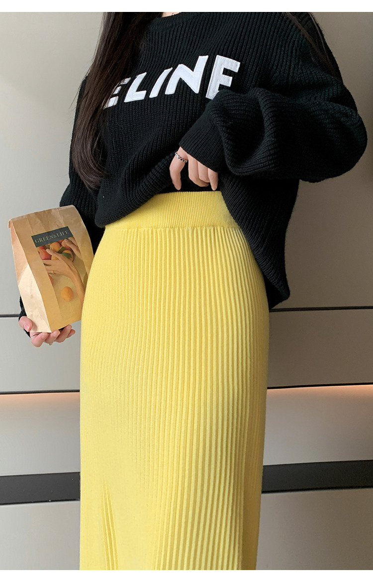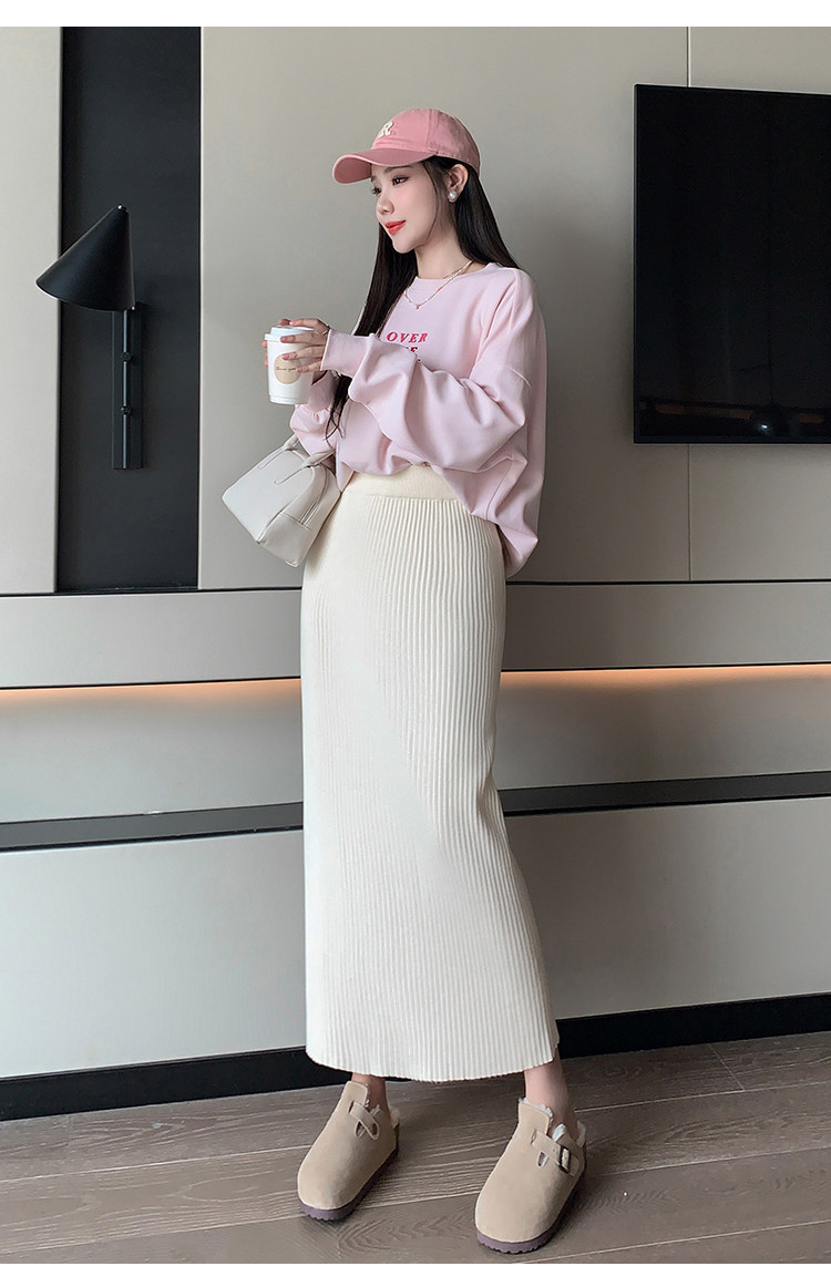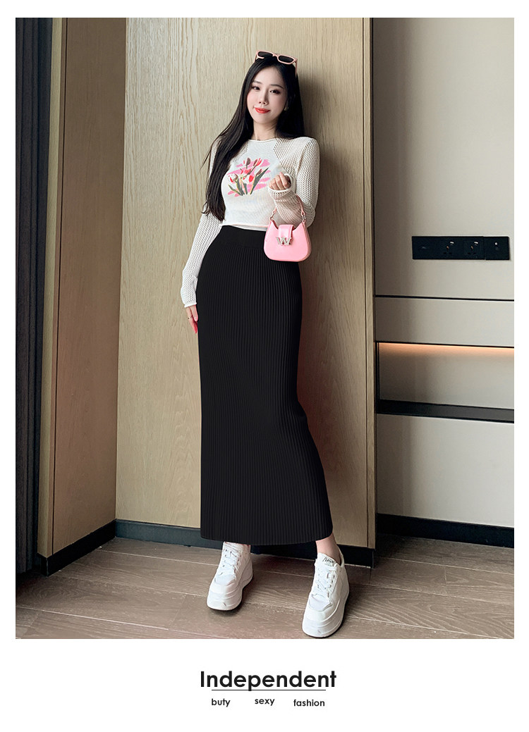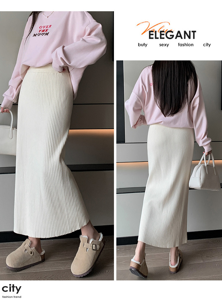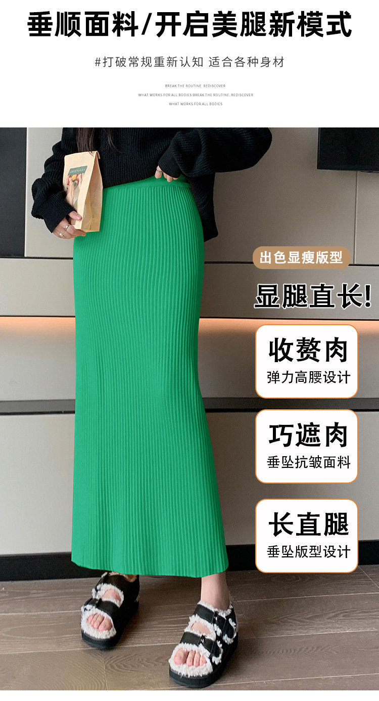 Трикотажная осенняя длинная шерстяная юбка, коллекция 2023, свободный прямой крой, с акцентом на бедрах, длина миди