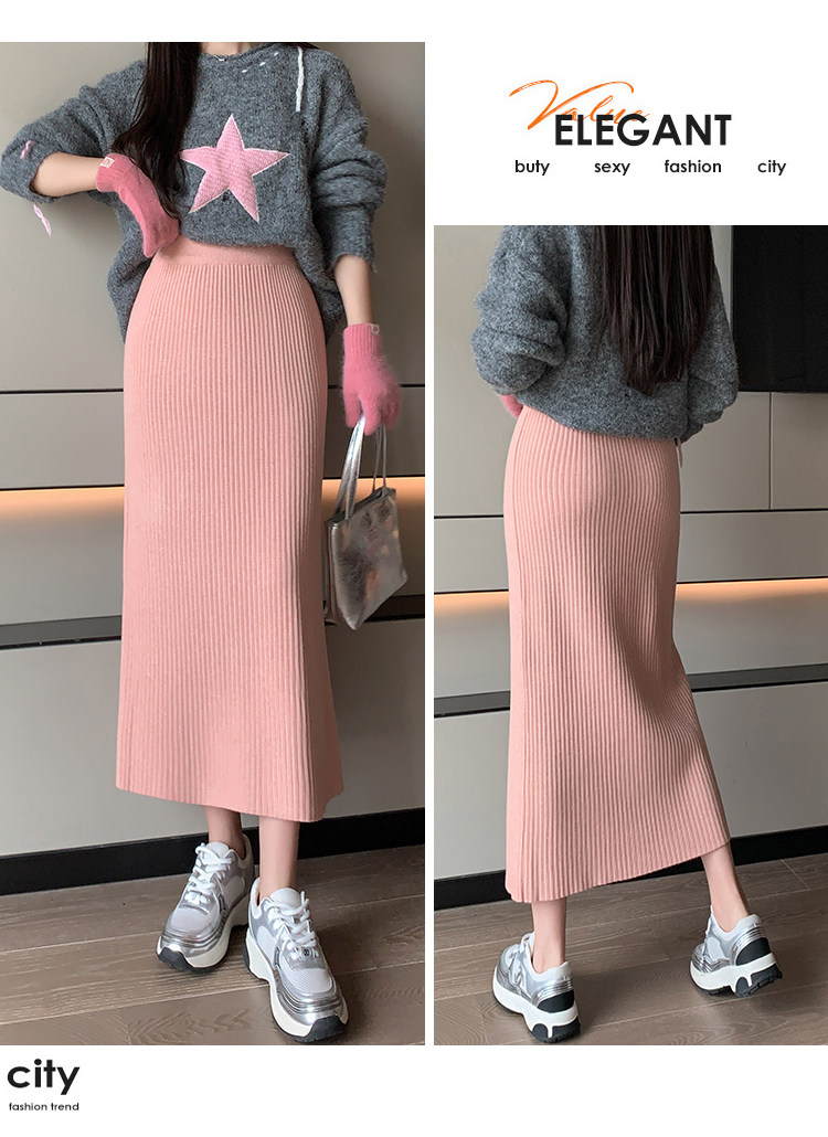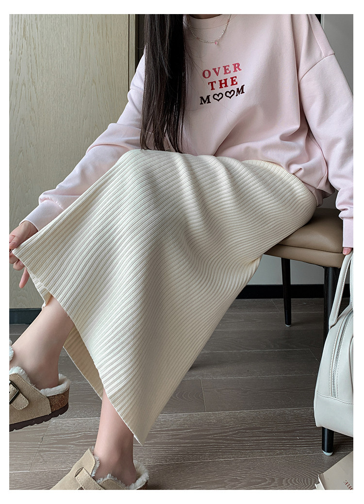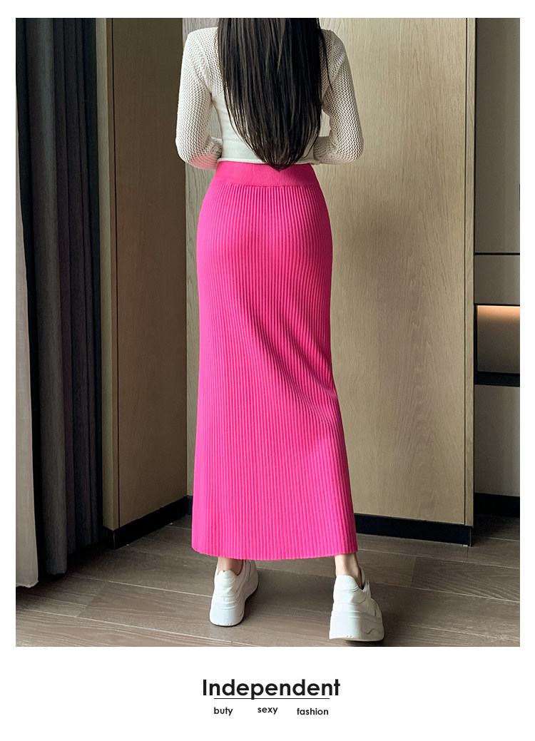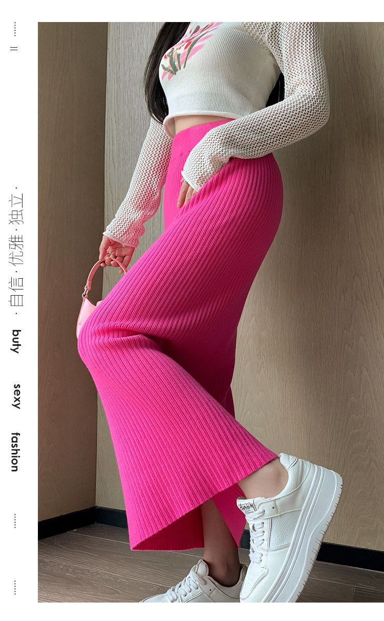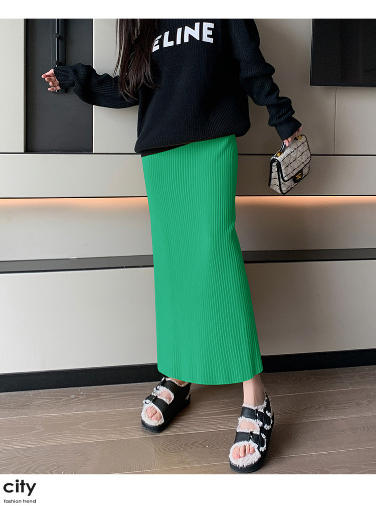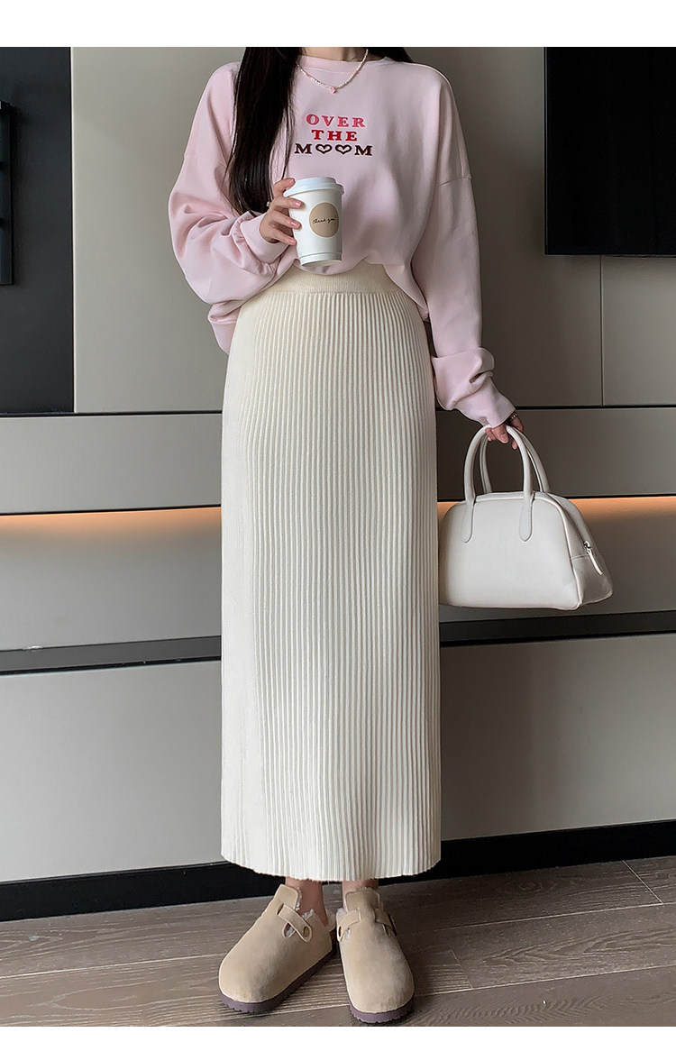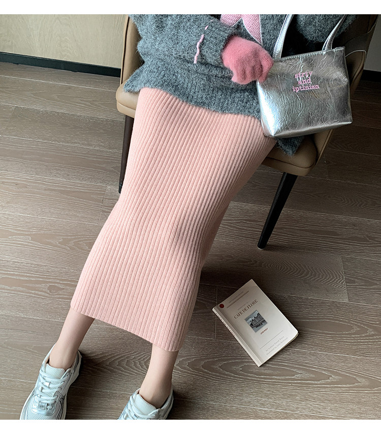 Трикотажная осенняя длинная шерстяная юбка, коллекция 2023, свободный прямой крой, с акцентом на бедрах, длина миди