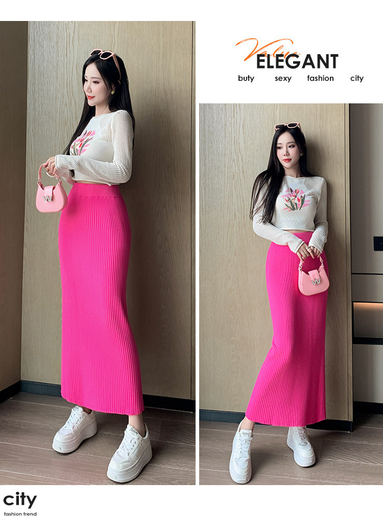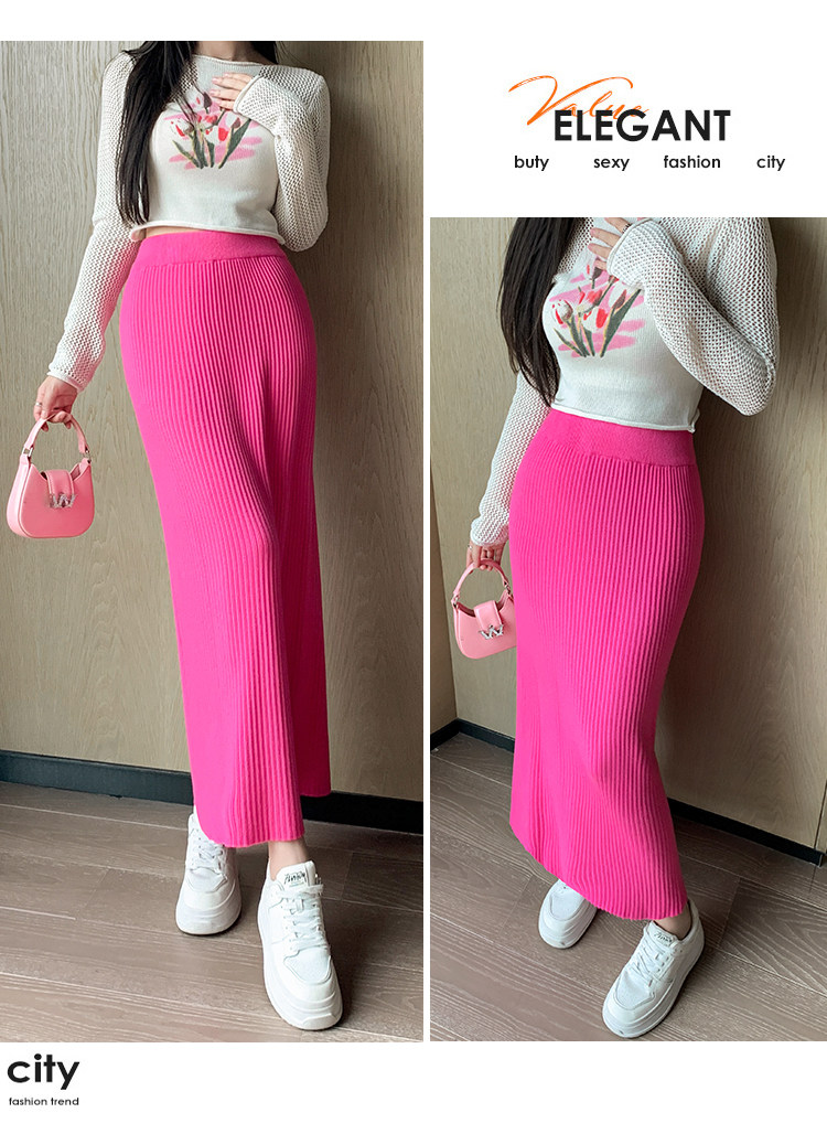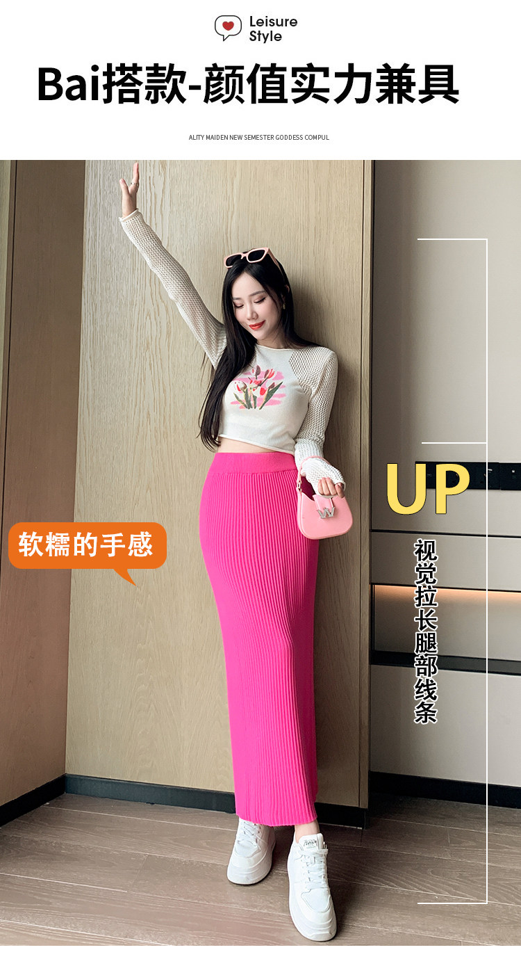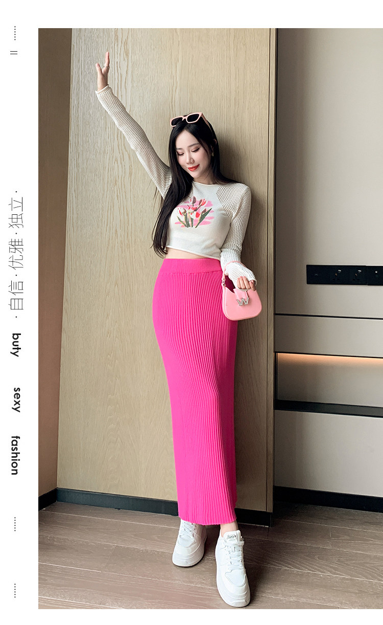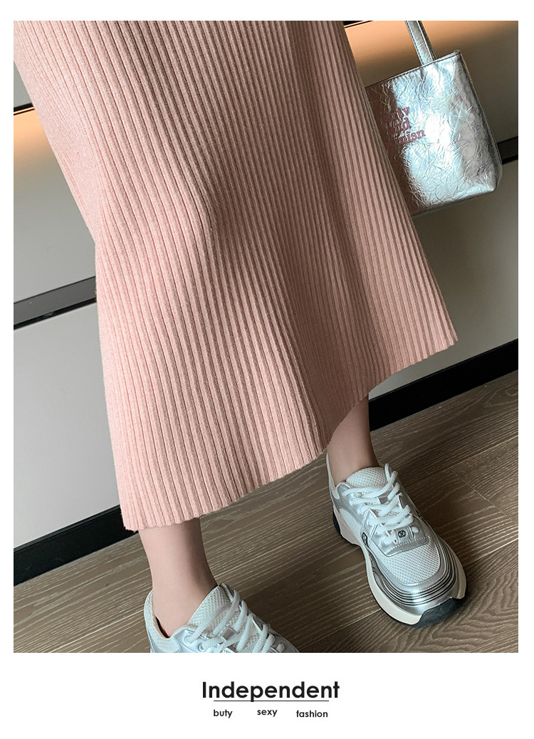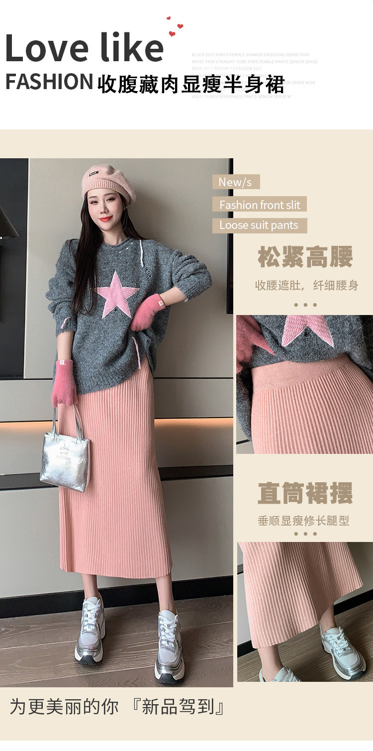 Трикотажная осенняя длинная шерстяная юбка, коллекция 2023, свободный прямой крой, с акцентом на бедрах, длина миди