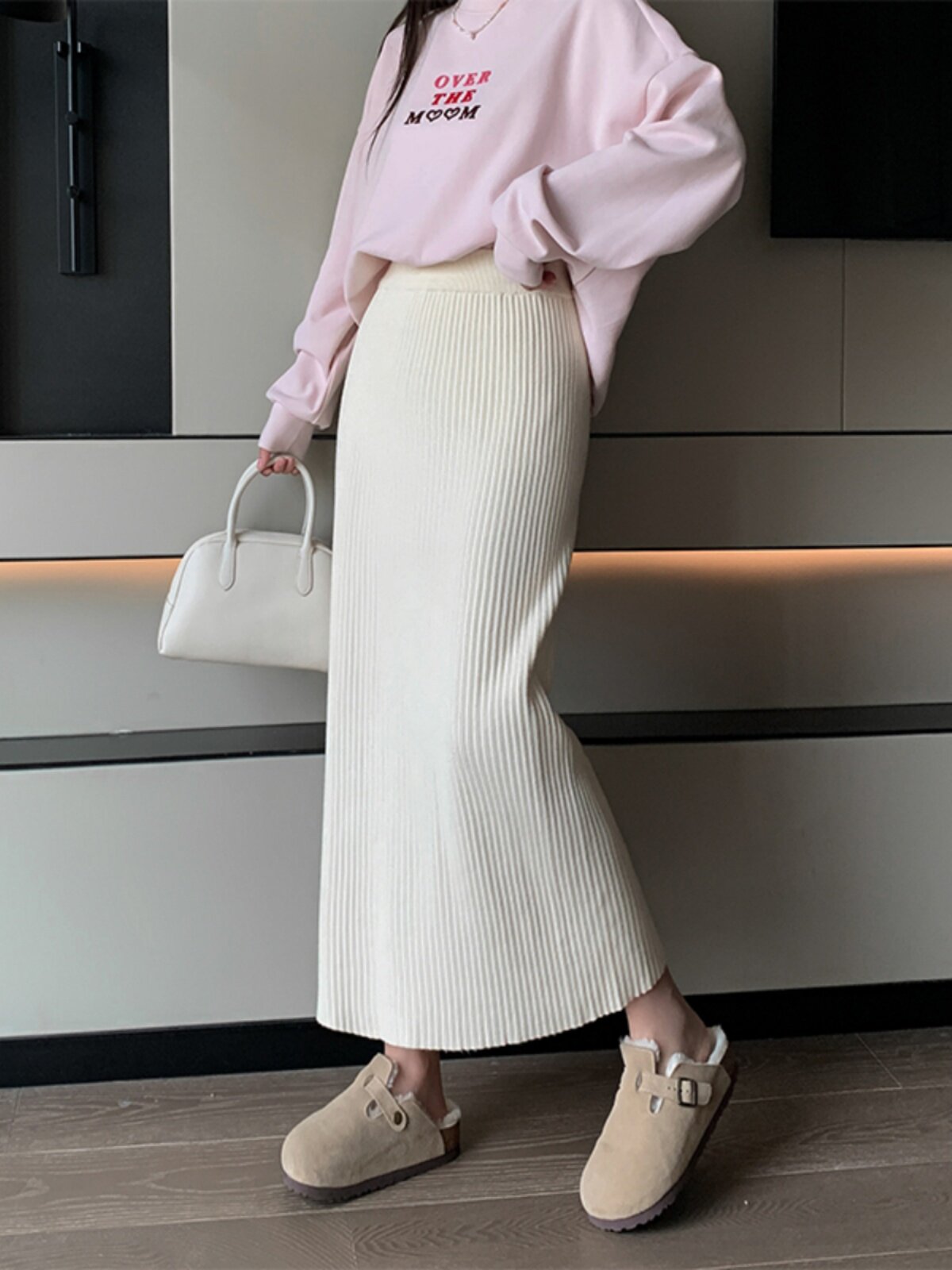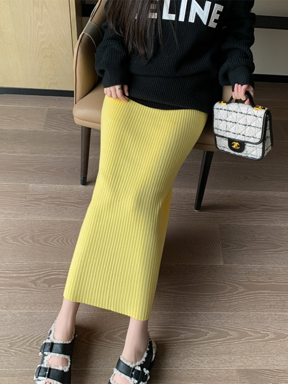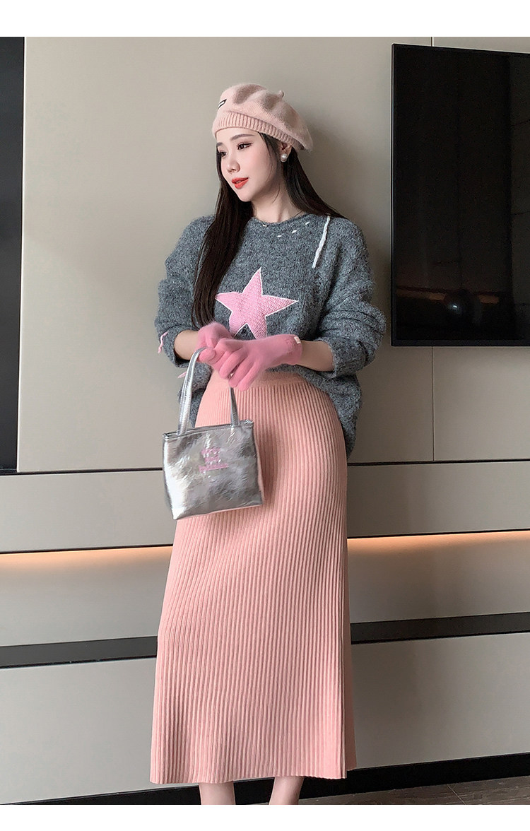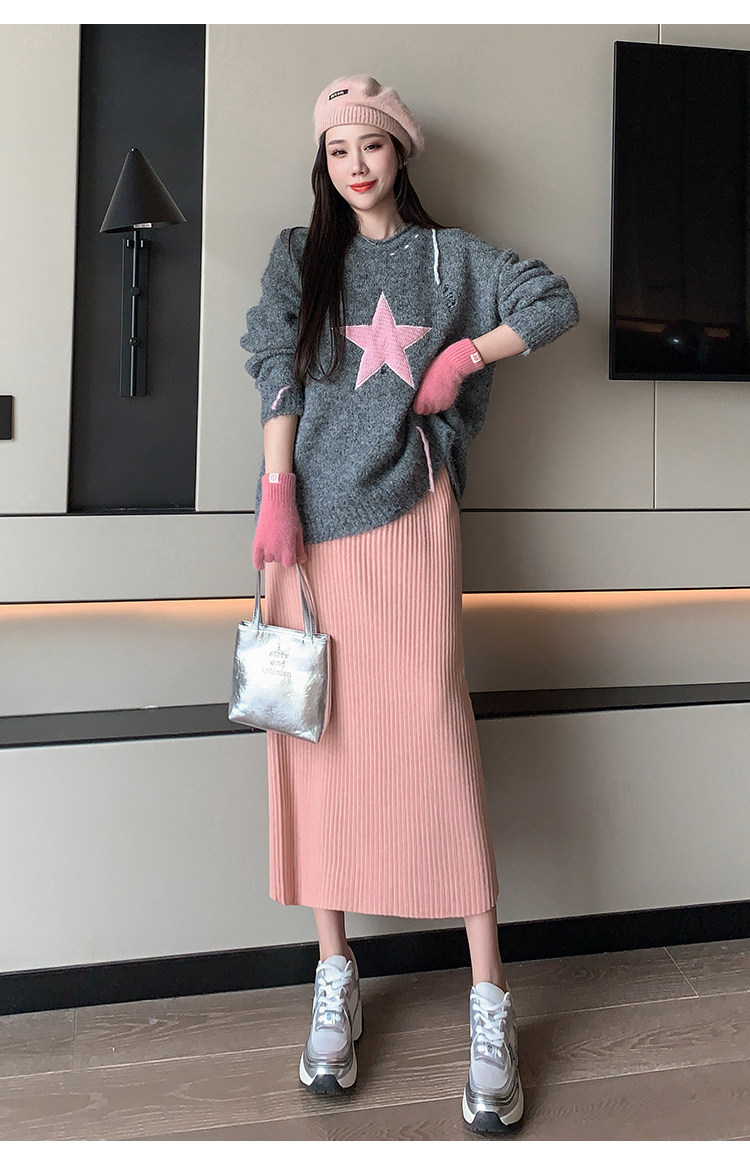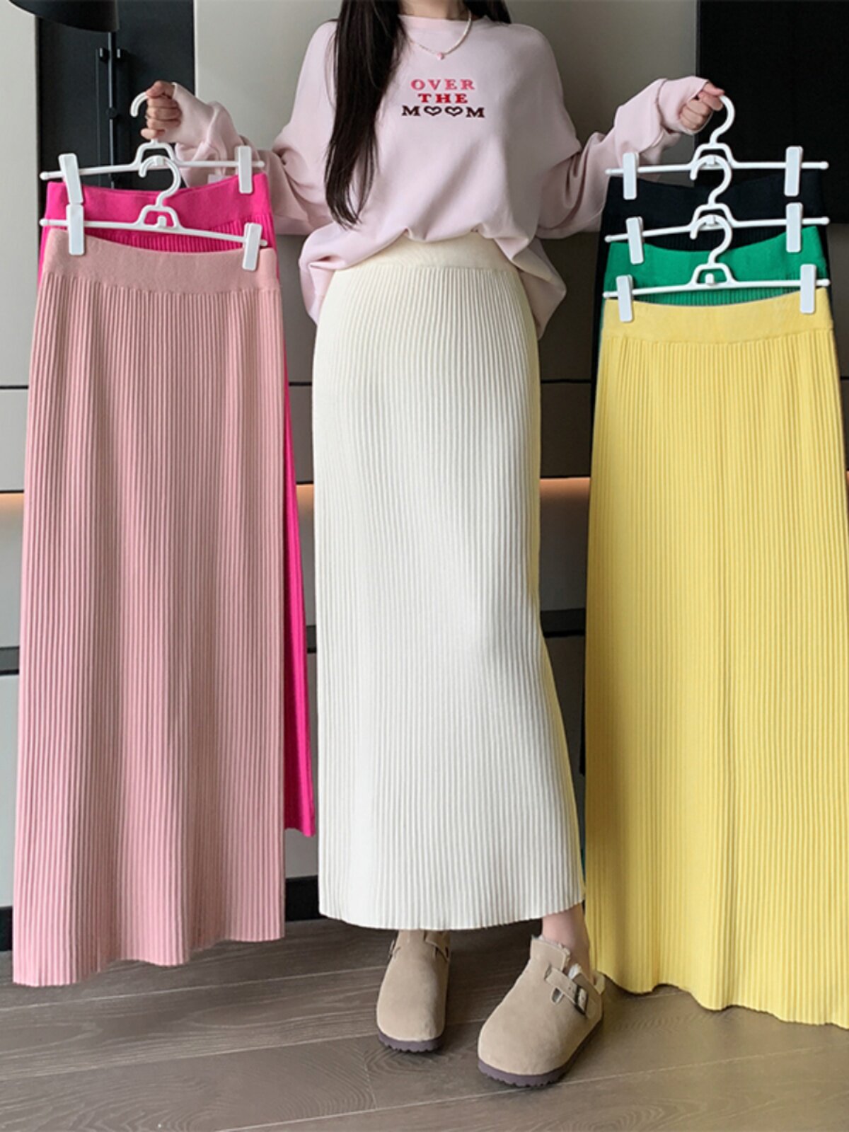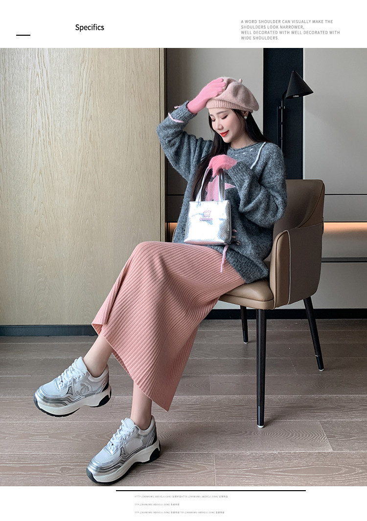 Трикотажная осенняя длинная шерстяная юбка, коллекция 2023, свободный прямой крой, с акцентом на бедрах, длина миди