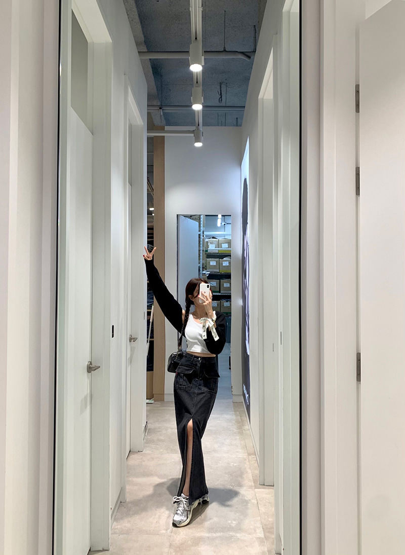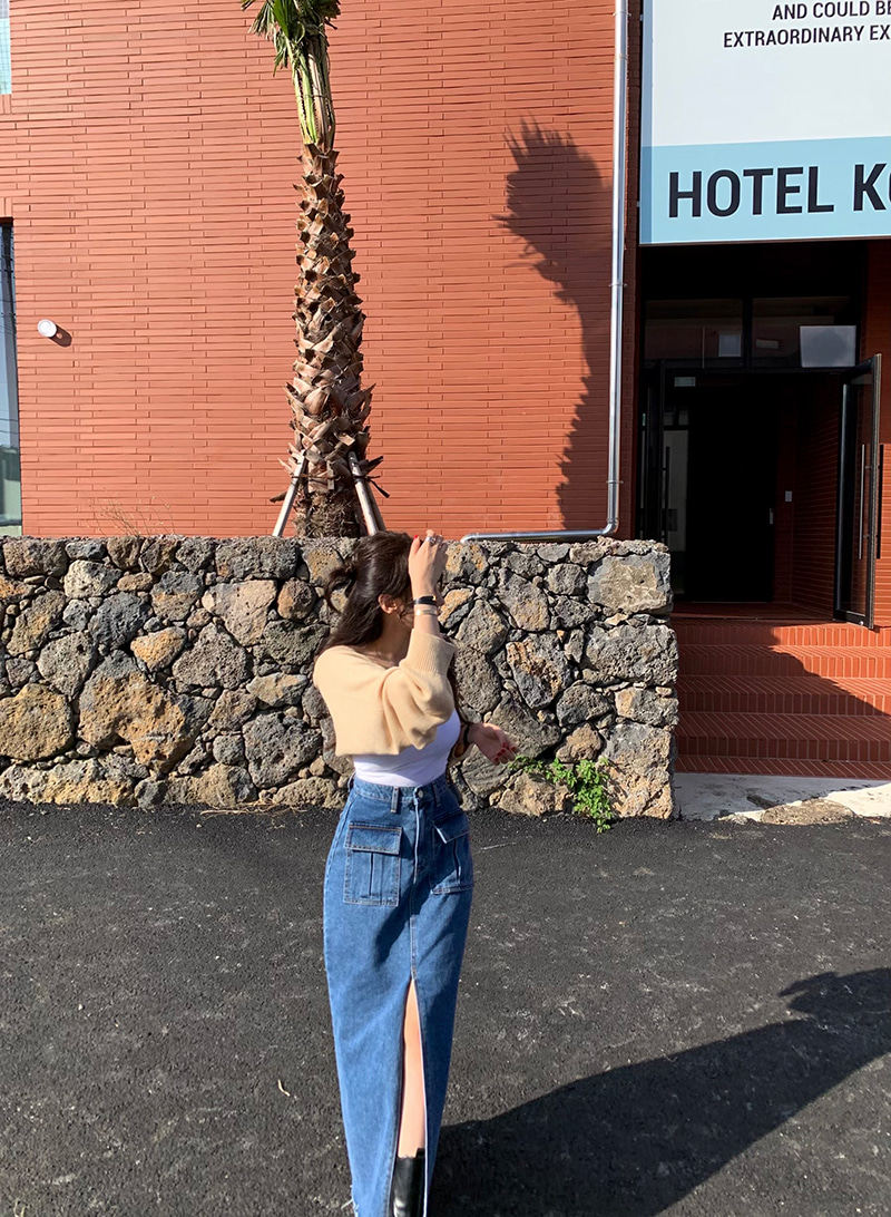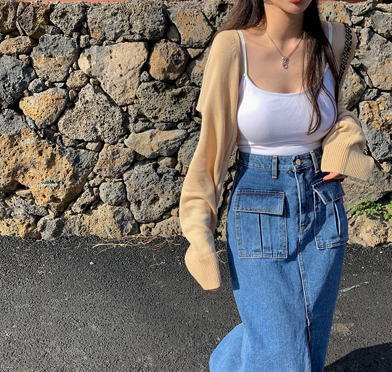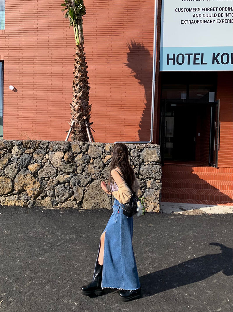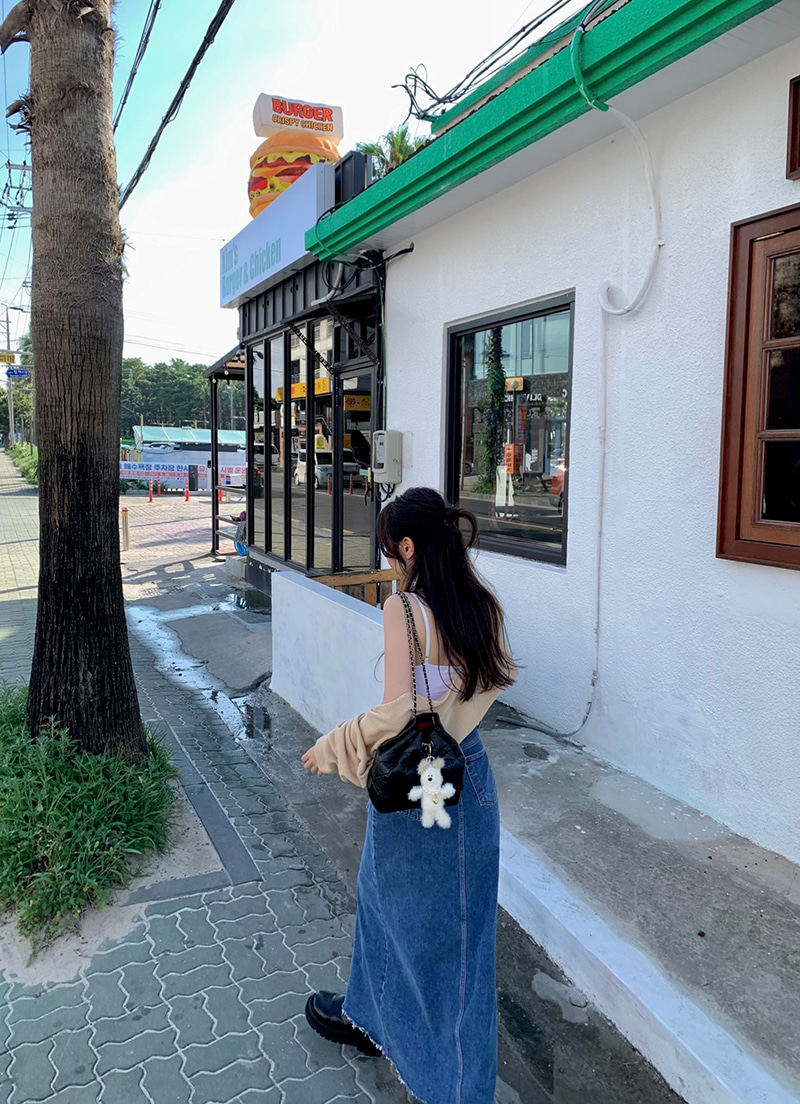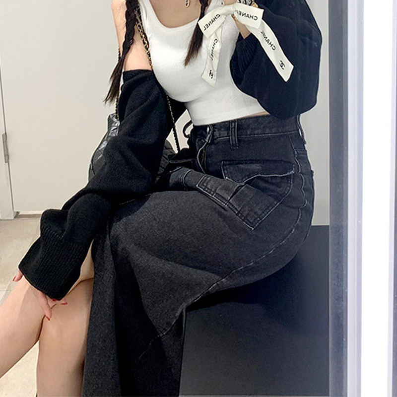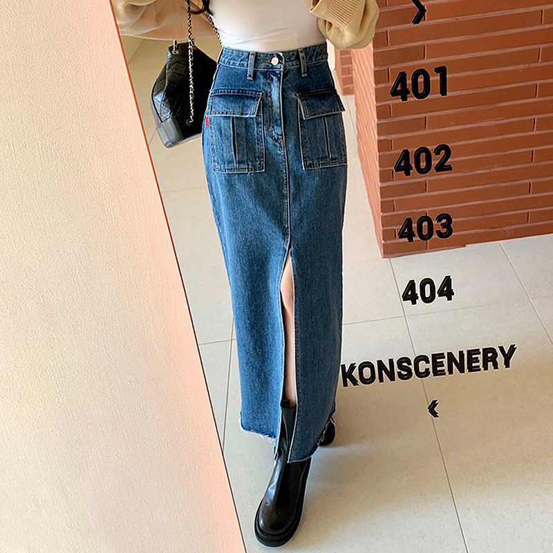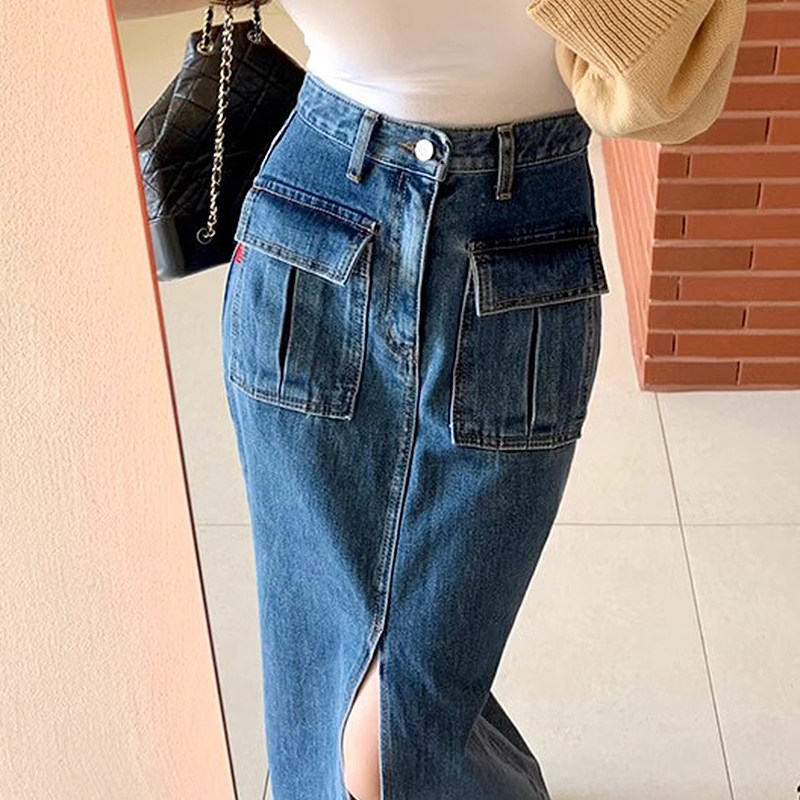 Осенняя ретро приталенная длинная джинсовая юбка, в корейском стиле, с акцентом на бедрах, высокая талия